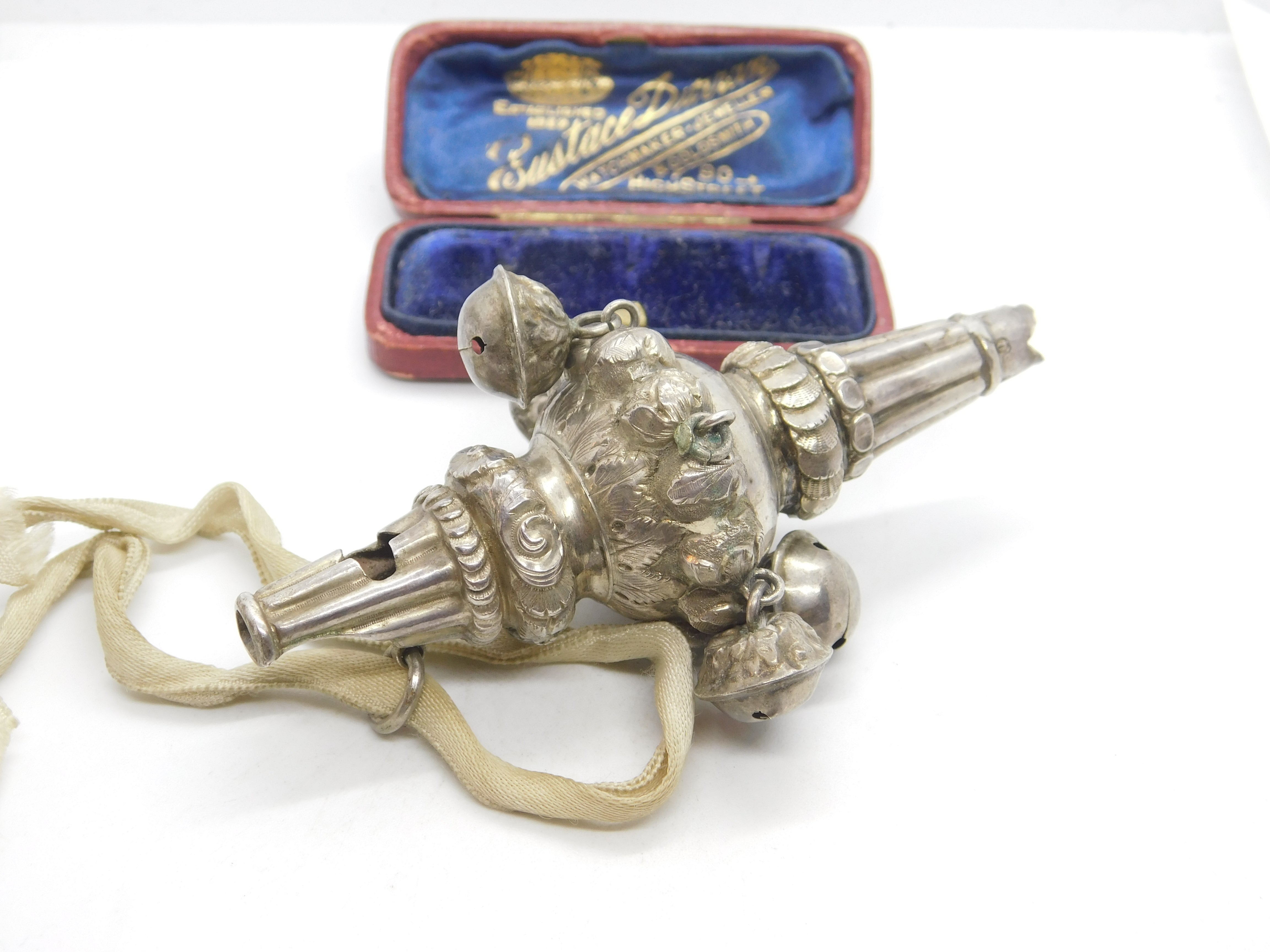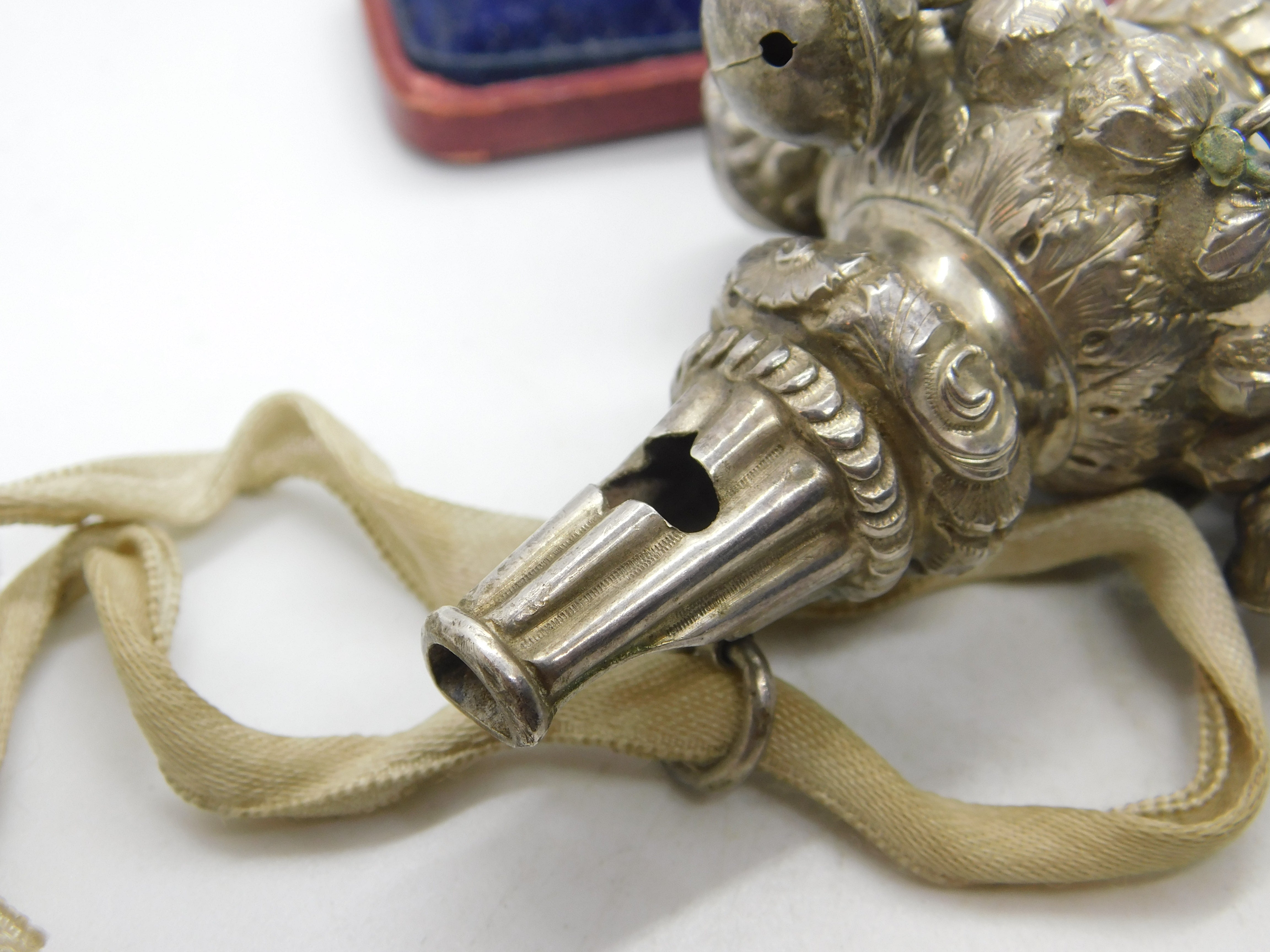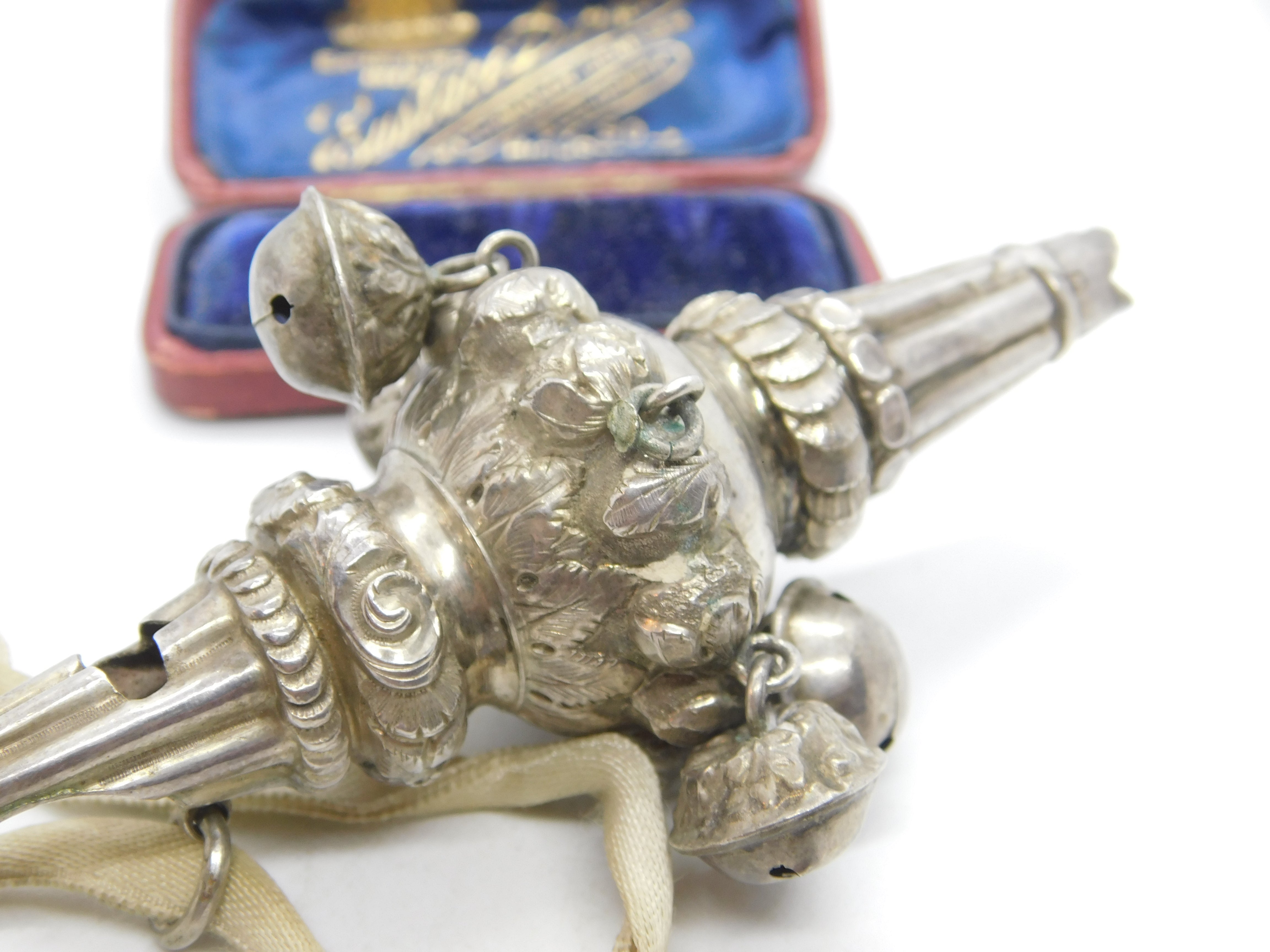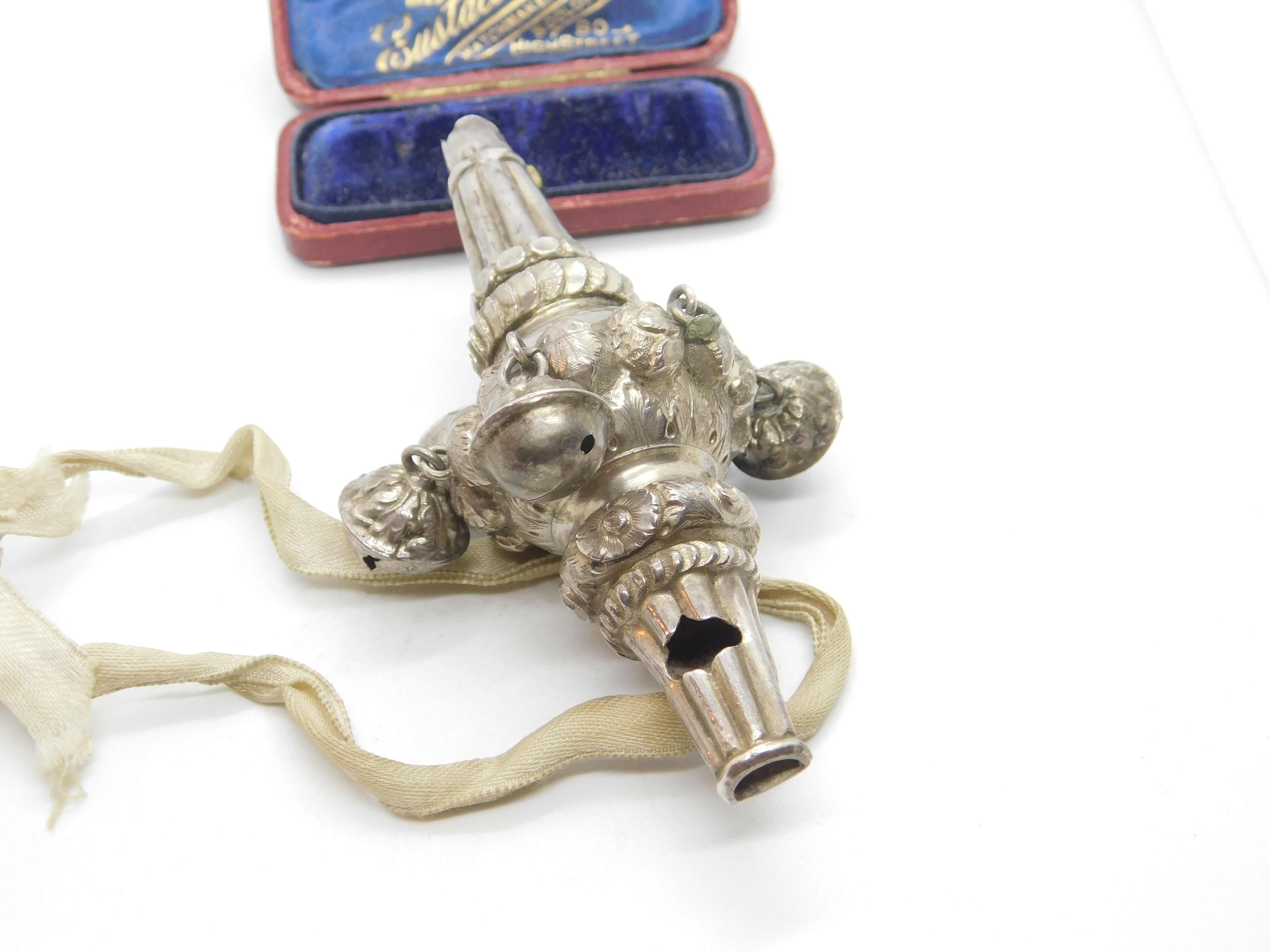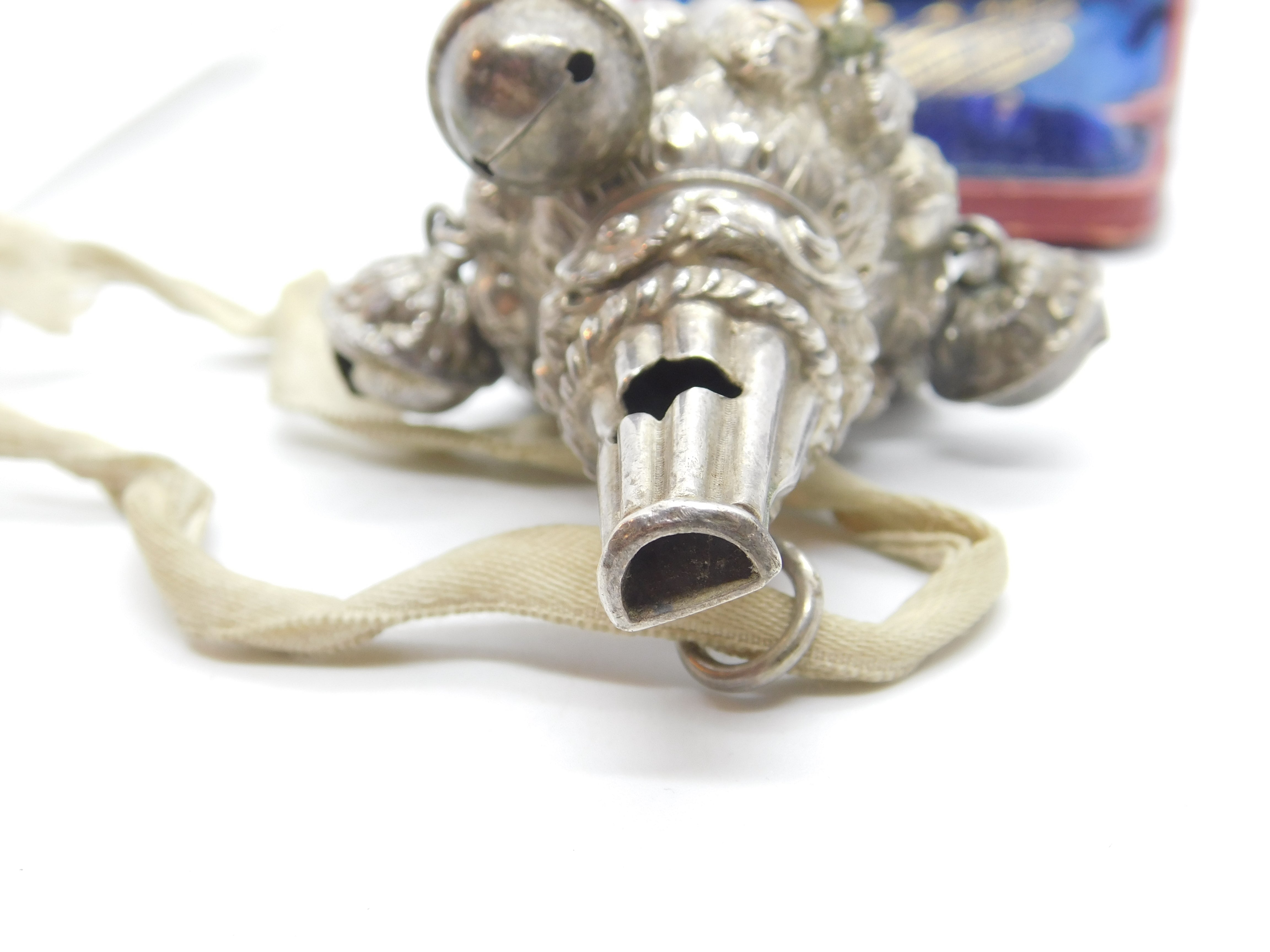 Victorian Sterling Silver Baby Rattle, Whistle & Teether 1865 Birmingham Antique