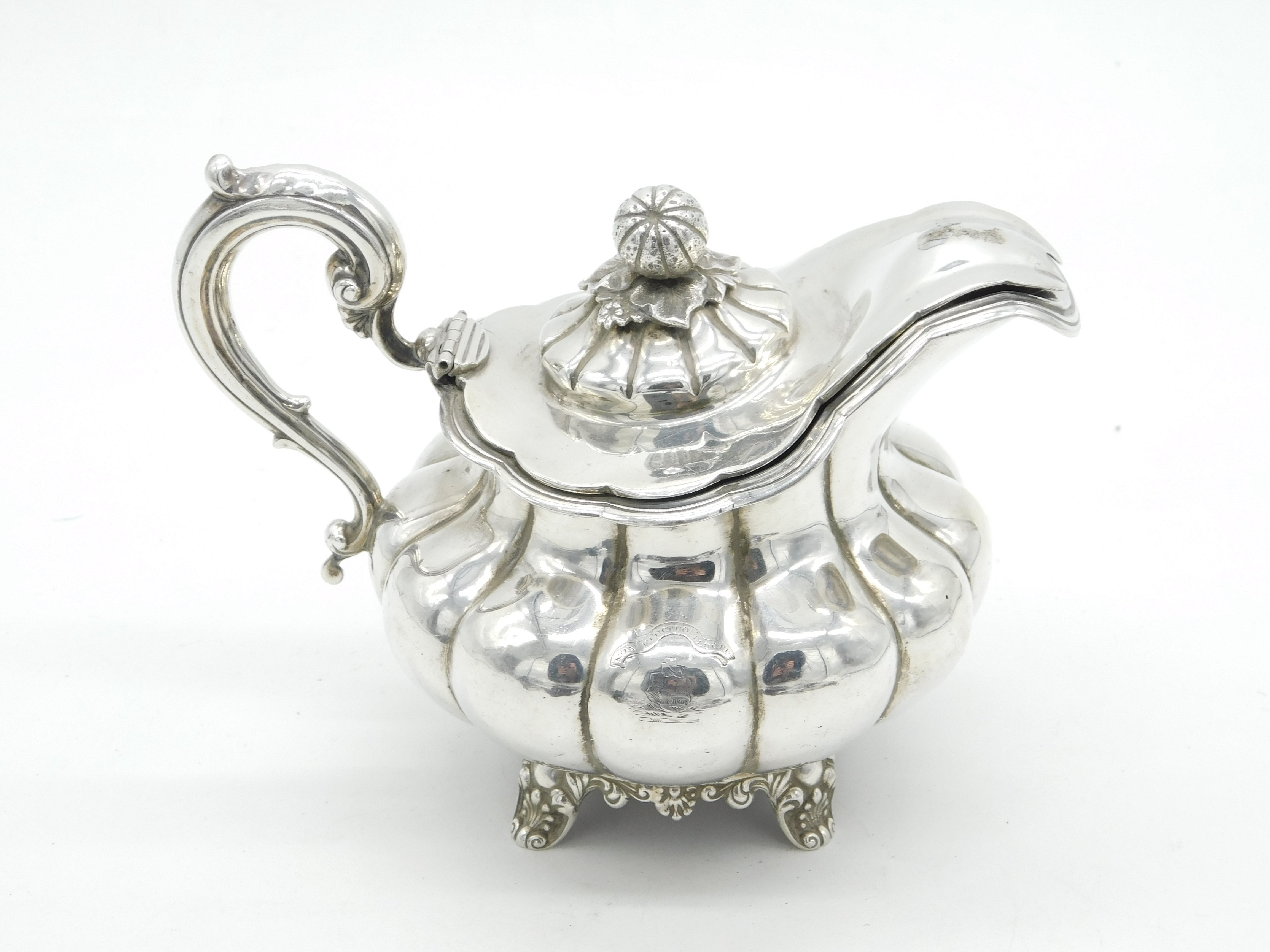 Victorian Sterling Silver Bachelors Melon Teapot Antique 1844 London