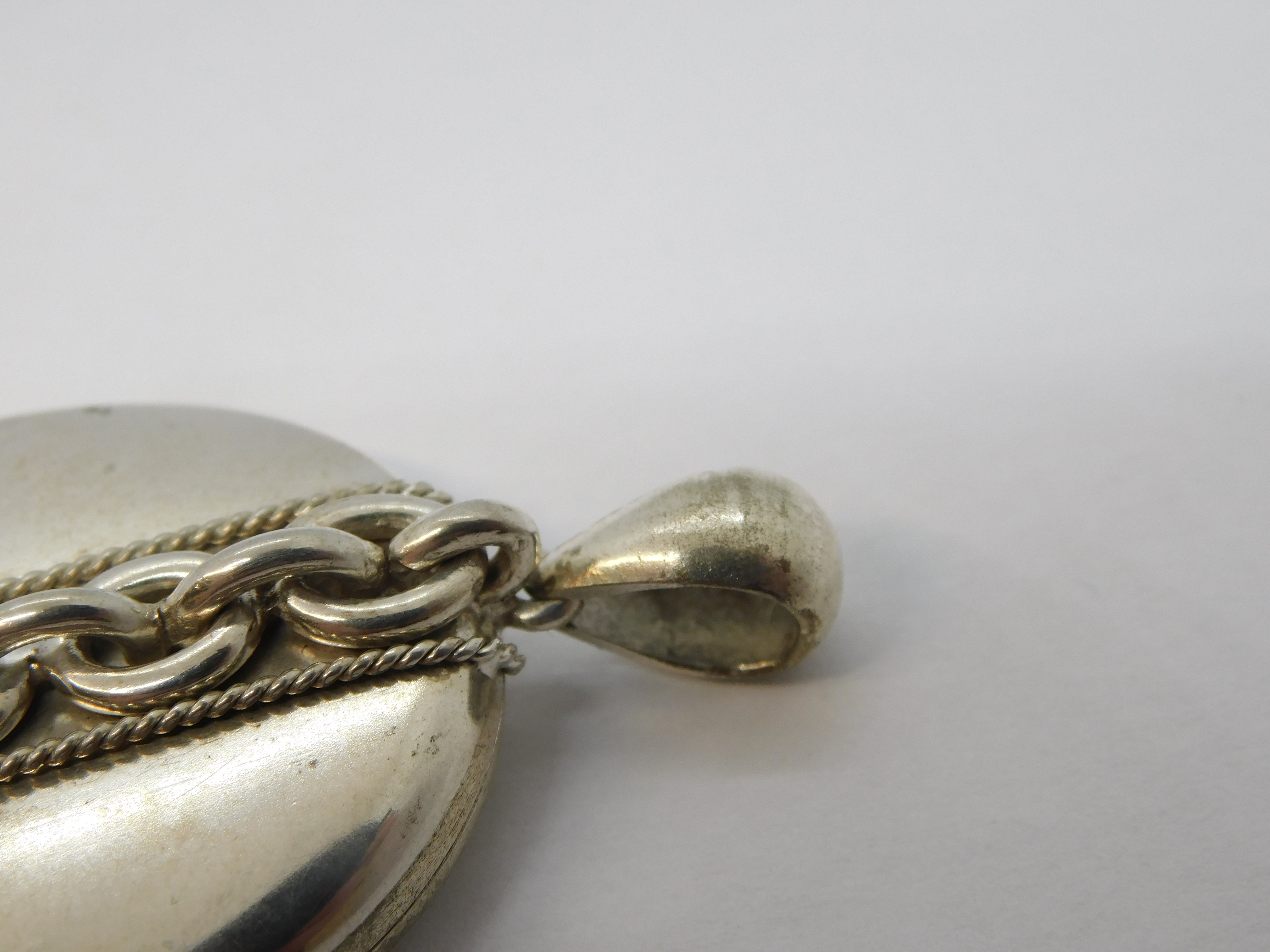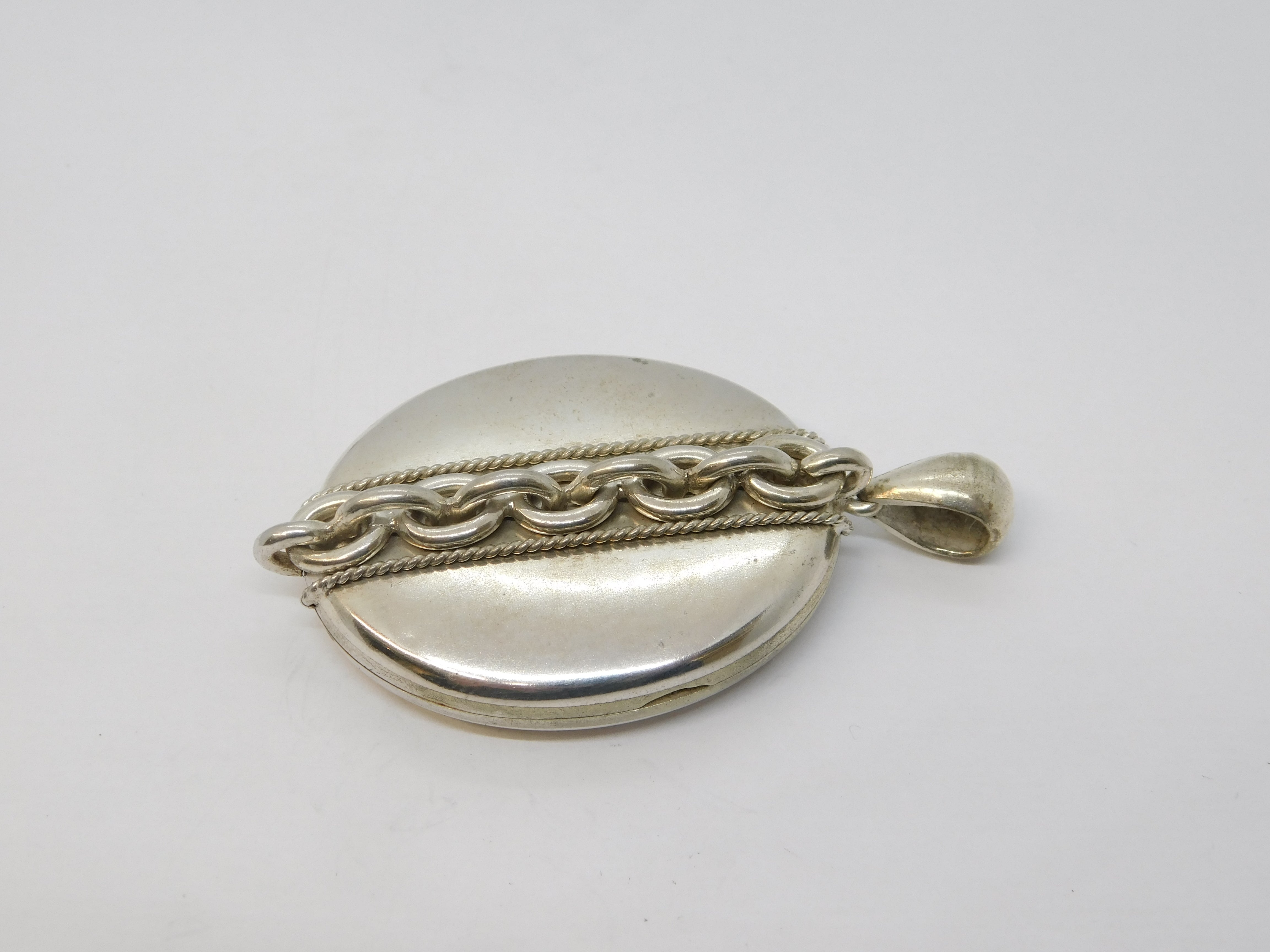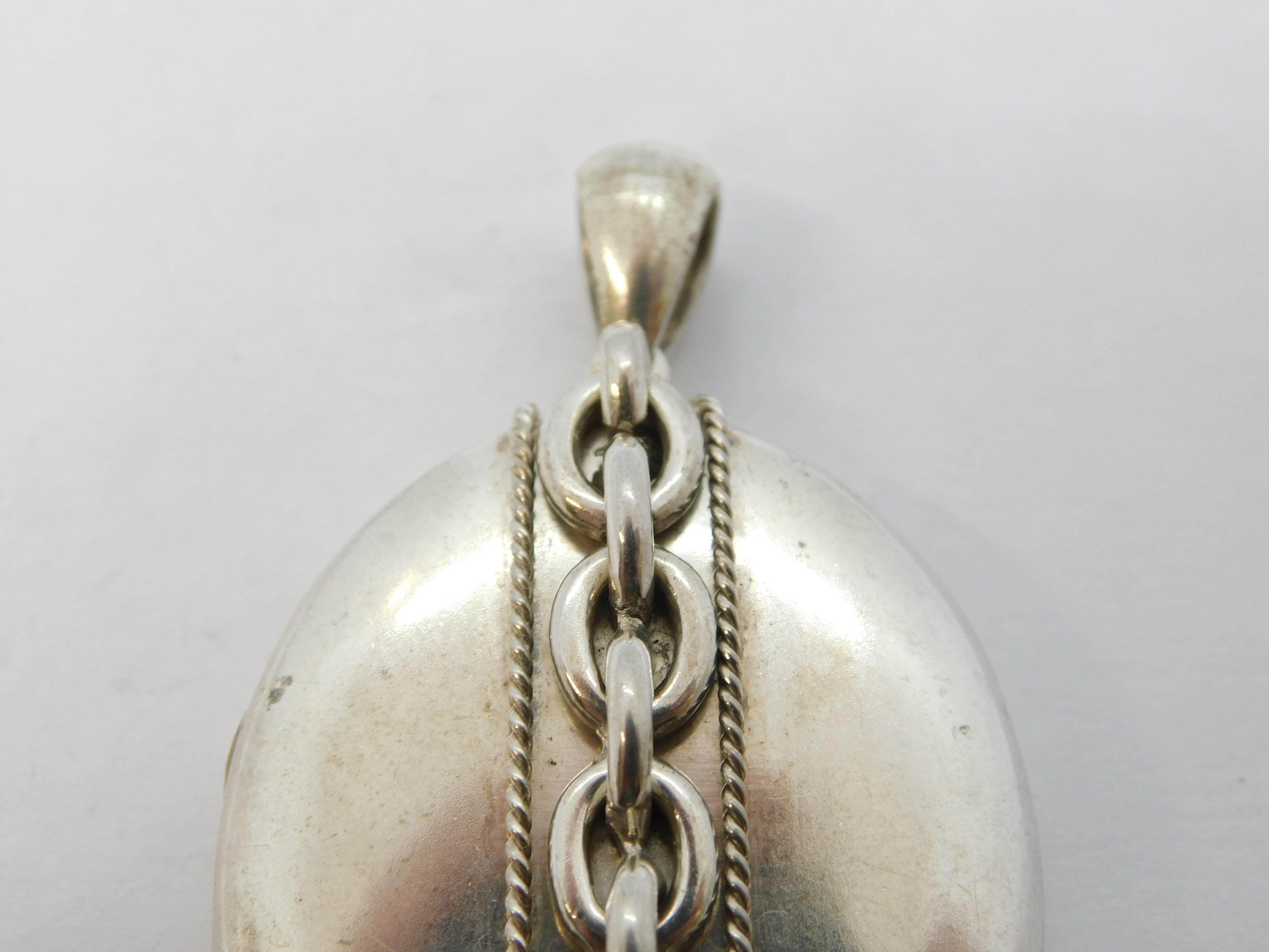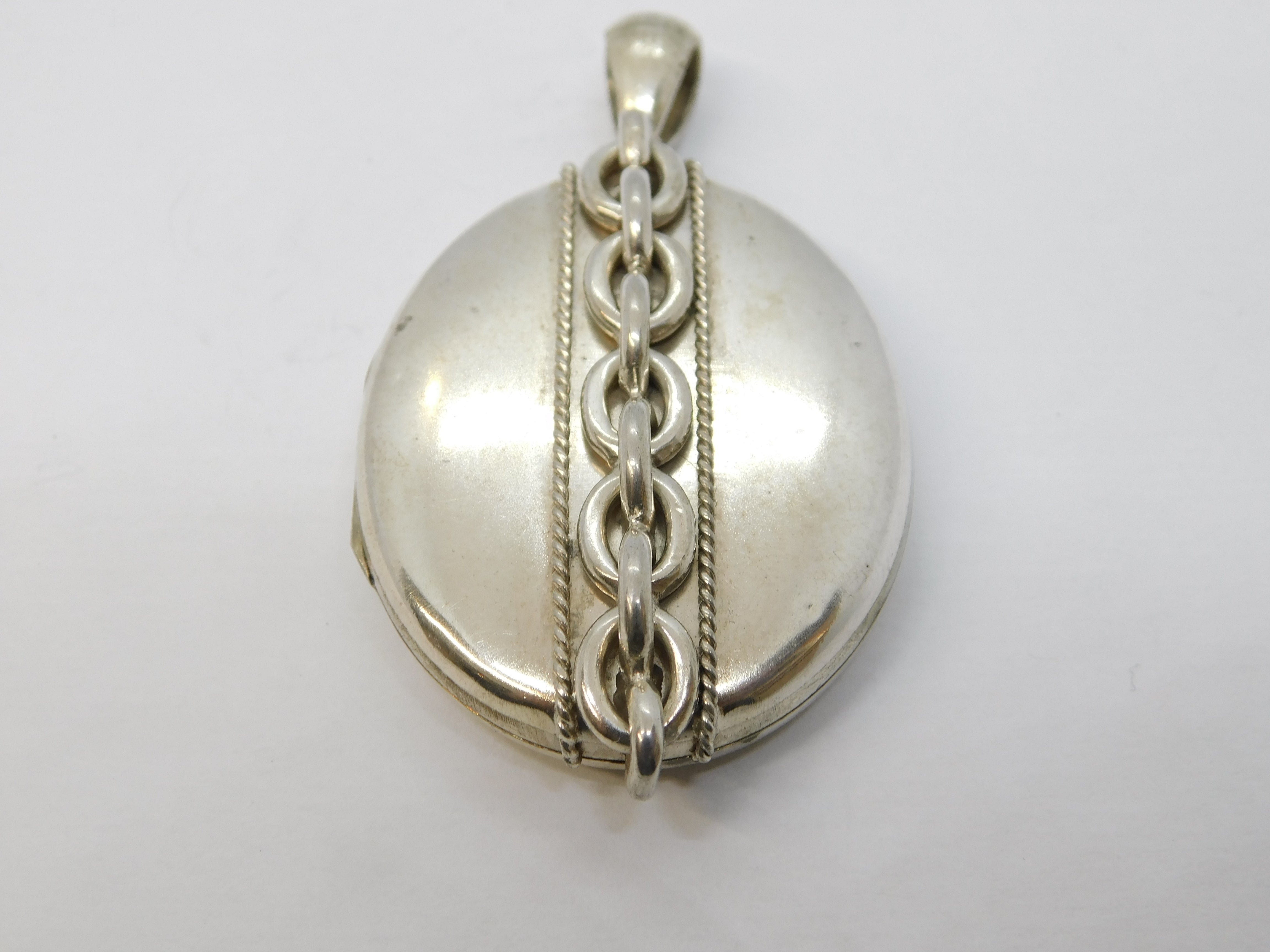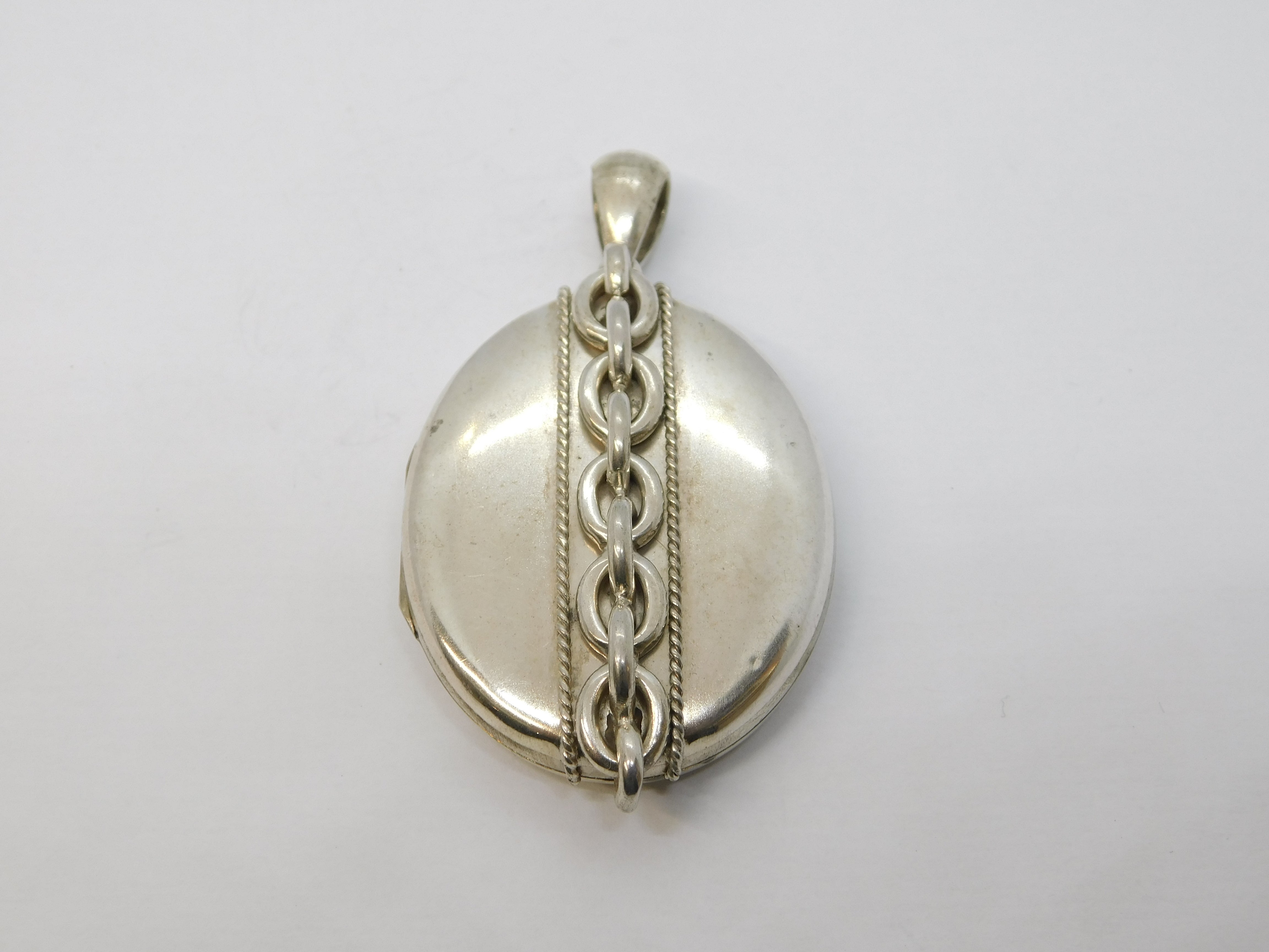 Details: A fantastic and wonderfully designed antique Victorian sterling silver back & front sweetheart locket pendant with lovely chain link design to the front c1890, the silver has been XRF tested as it is unmarked. This is a wonderful item that would make a perfect gift or addition to any collection.