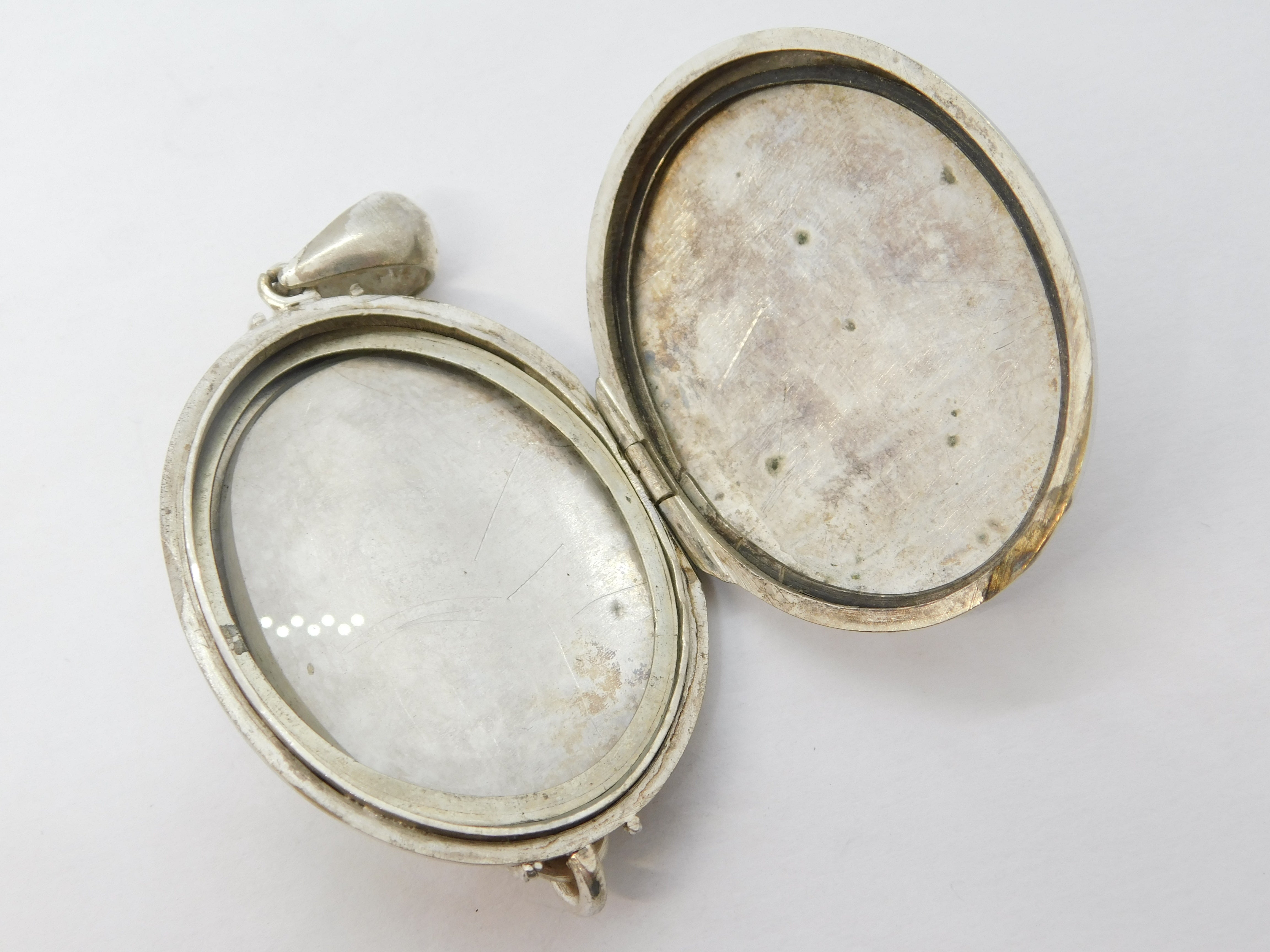 Victorian Sterling Silver Back & Front Sweetheart Locket Pendant Antique c1890