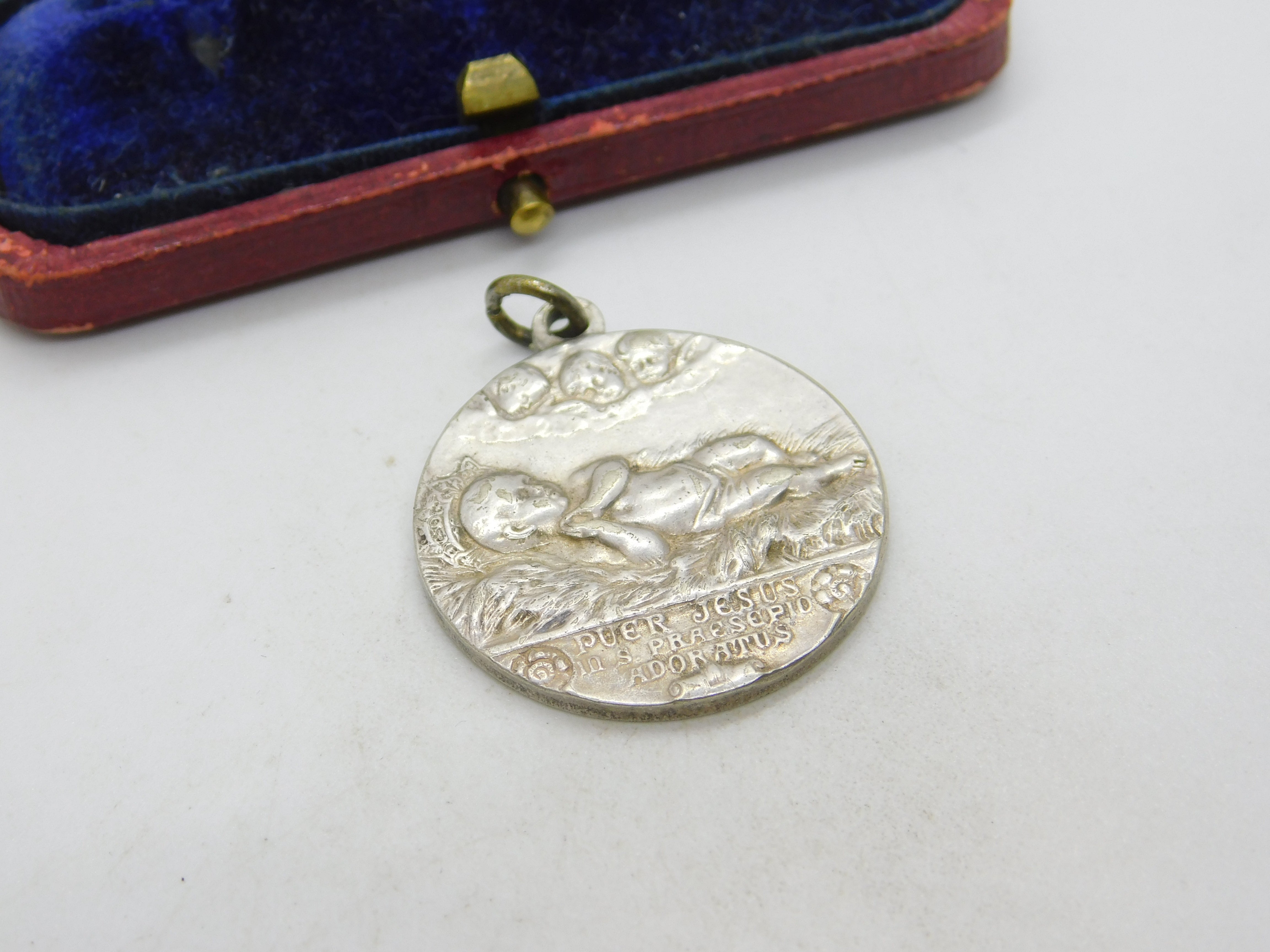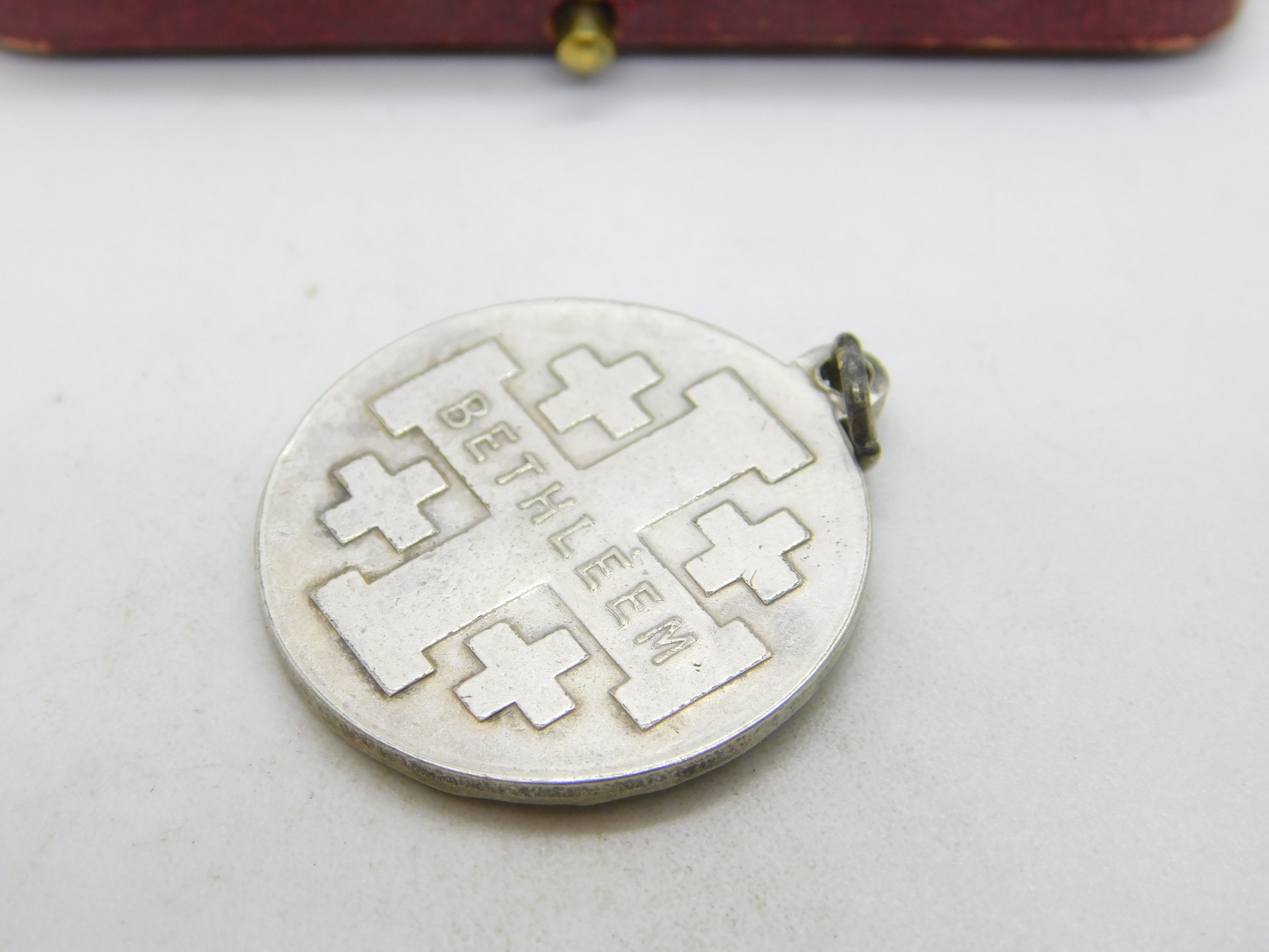 Victorian Sterling Silver Bethlehem Cross 'Puer Jesus' Fob Pendant c1890 Antique