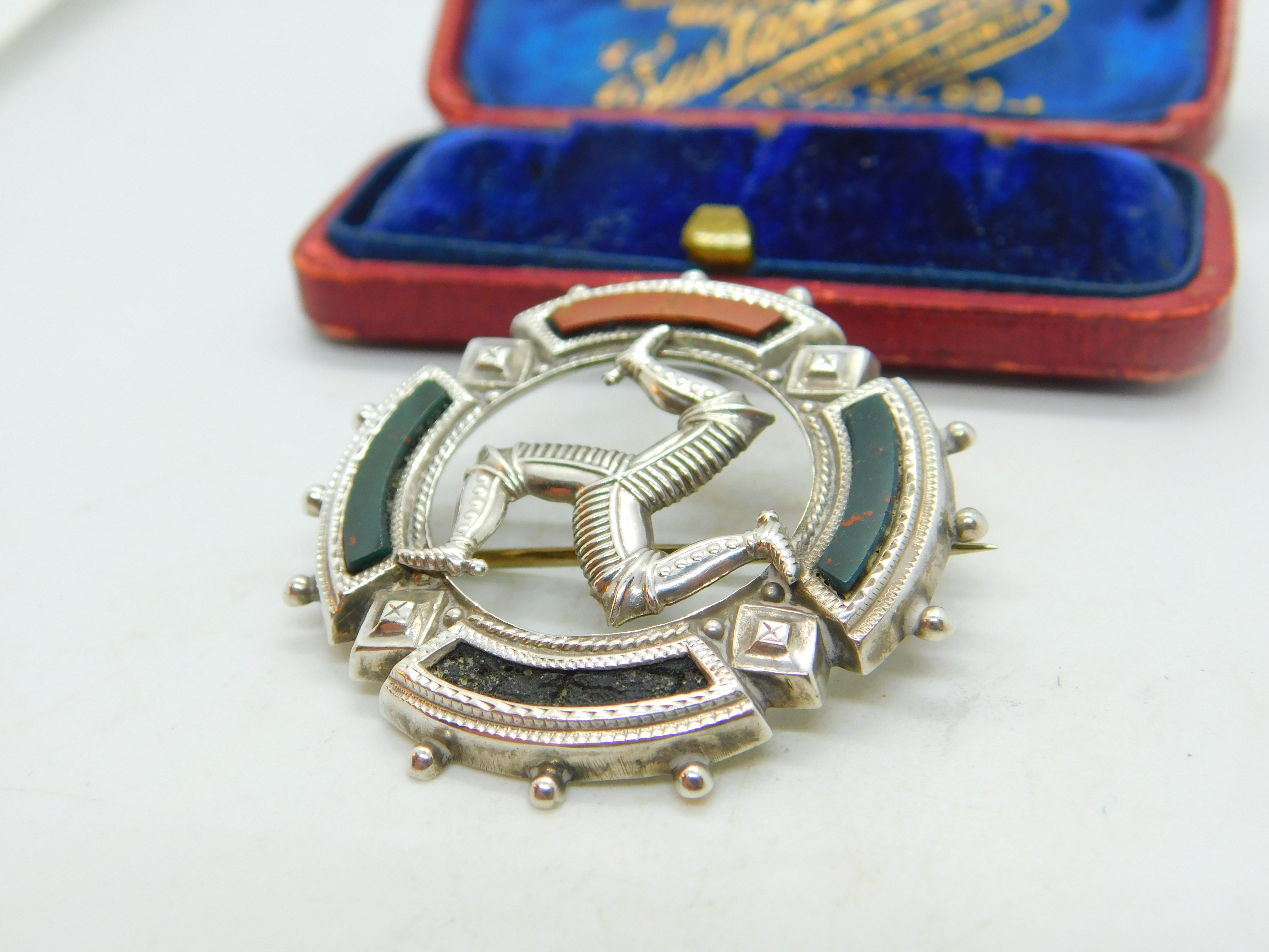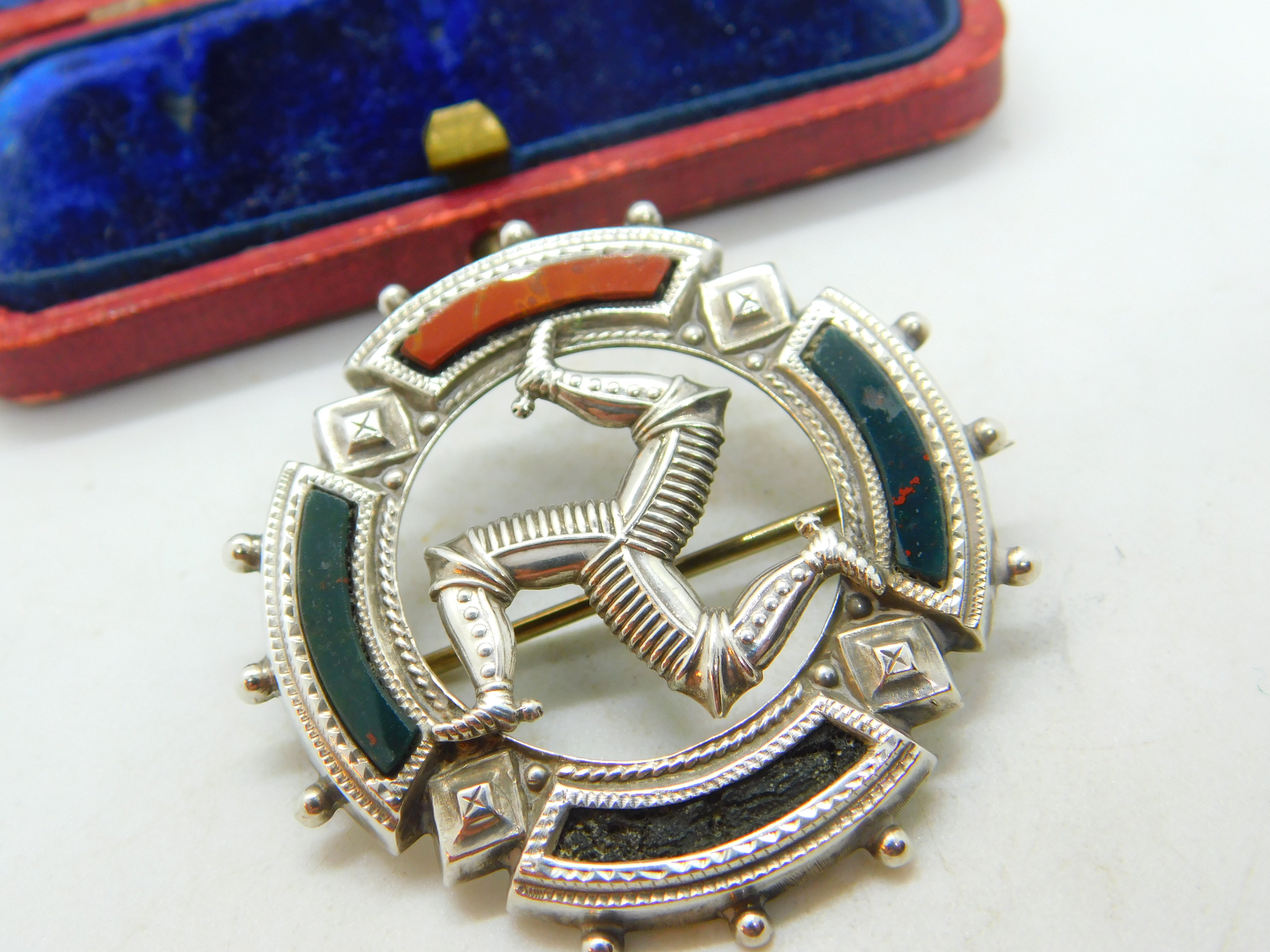 Victorian Sterling Silver, Bloodstone & Agate 'Three Legs Of Mann' Brooch c1890