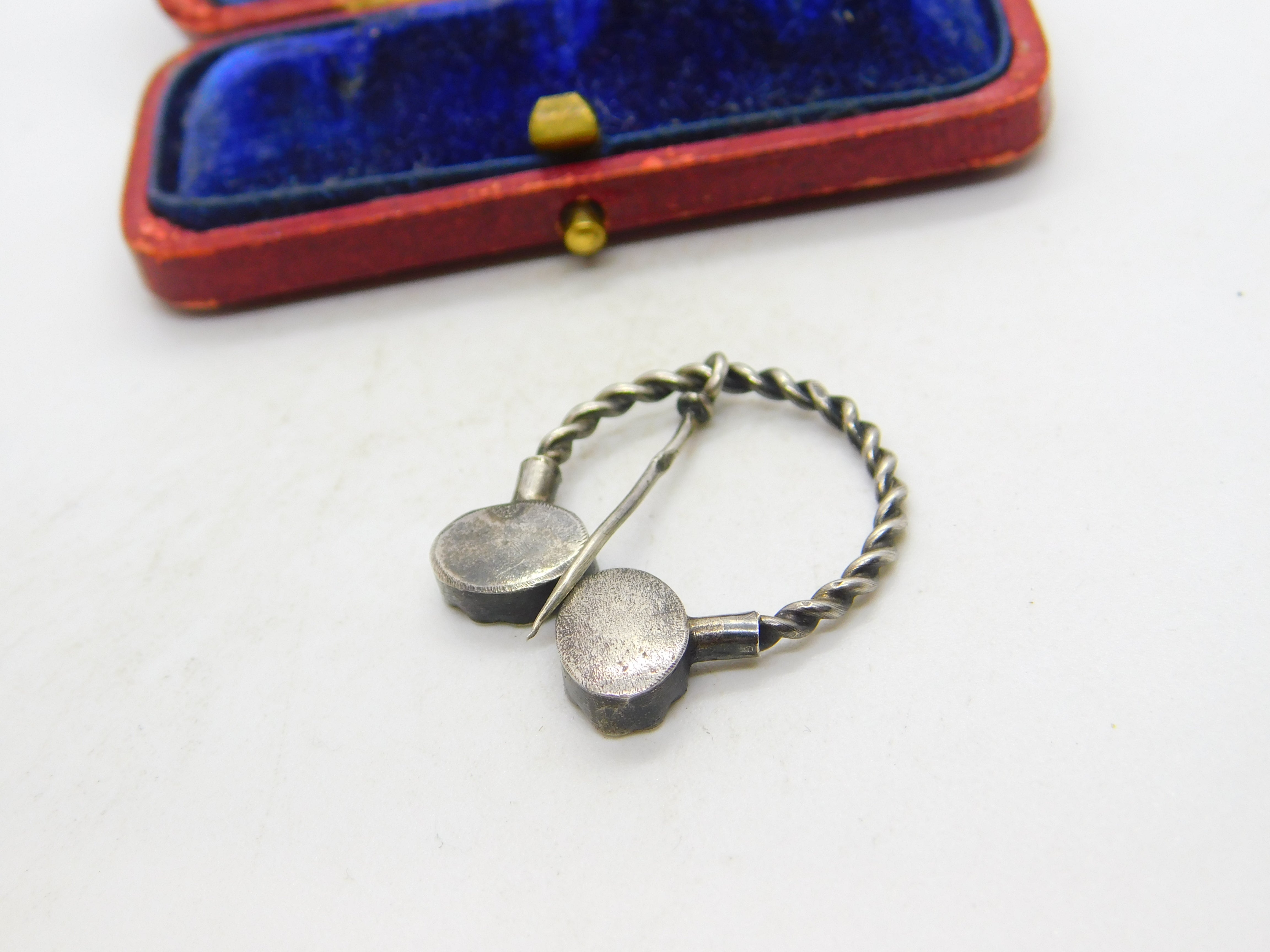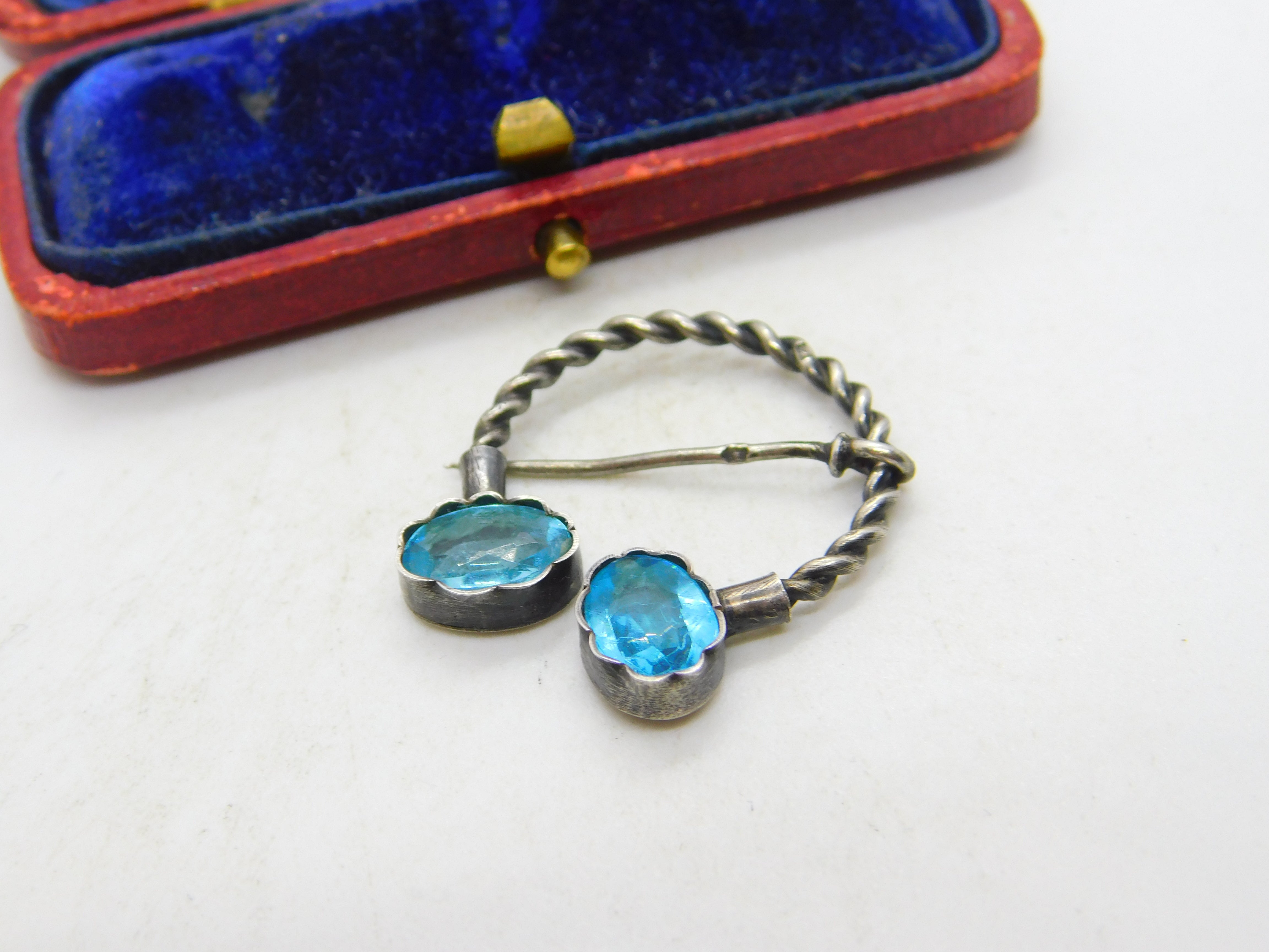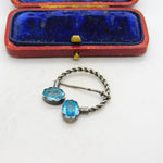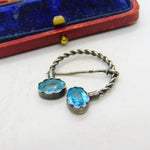 Victorian Sterling Silver Blue Zircon Dirk Rope Twist Brooch Antique c1880