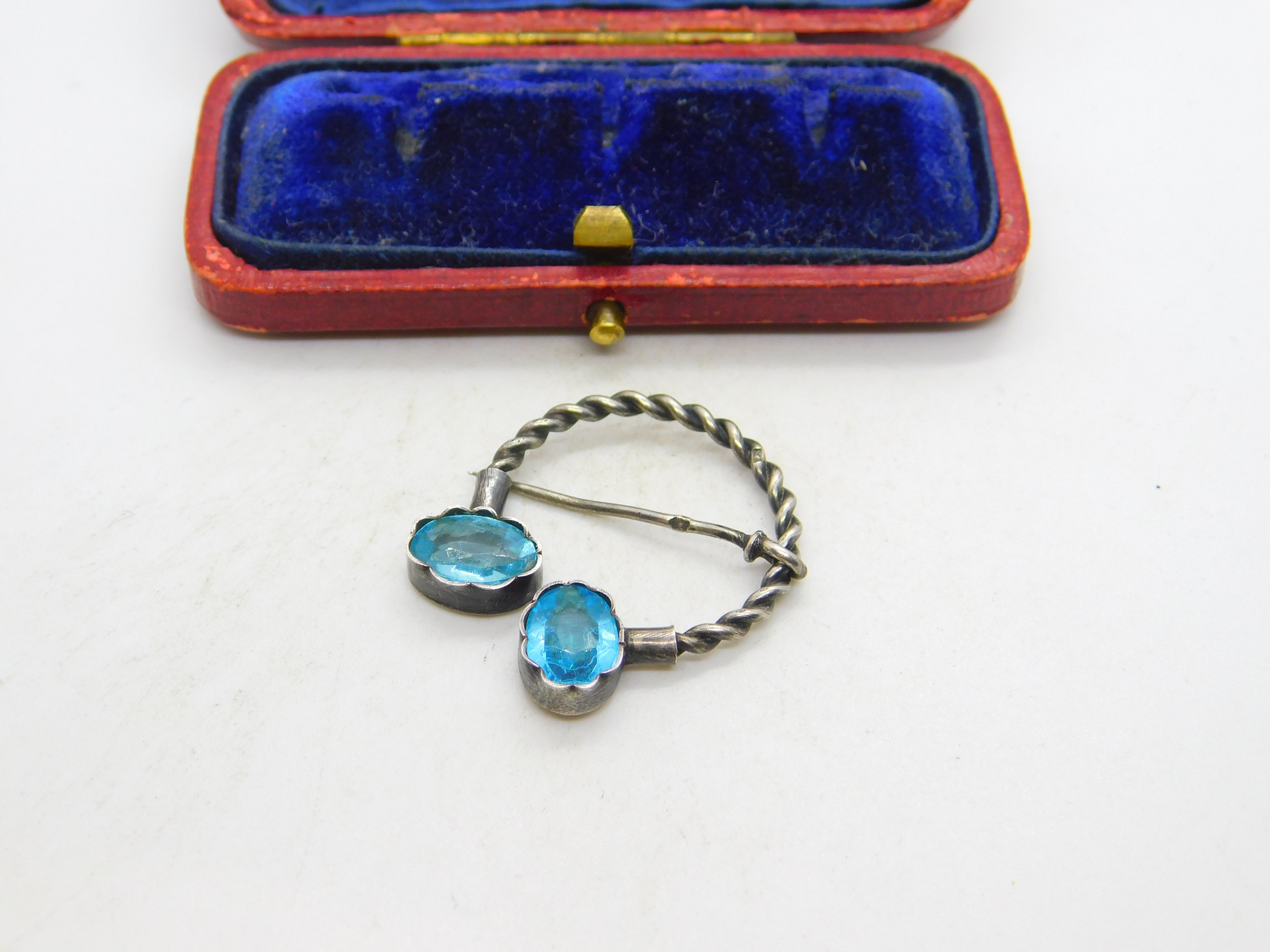 Details: A fantastic and wonderfully designed antique Victorian sterling silver rope twist dirk brooch set with blue zircon stones faintly hallmarked and tested c1880. This is a wonderful item that would make a perfect gift or addition to any collection. The BOX pictured is for PRESENTATION ONLY and is NOT included in the listings but used to frame the pictures unless specifically stated otherwise.