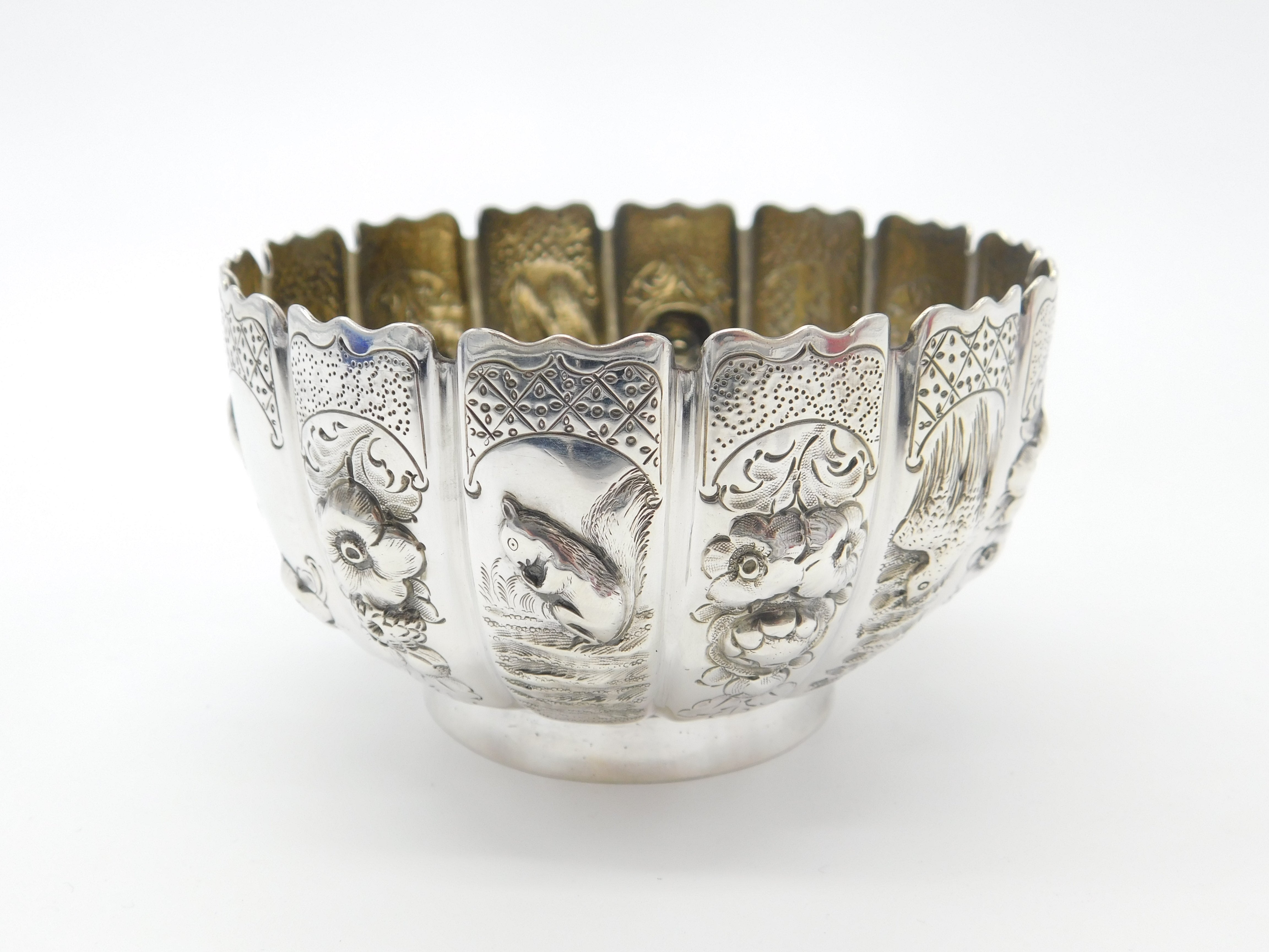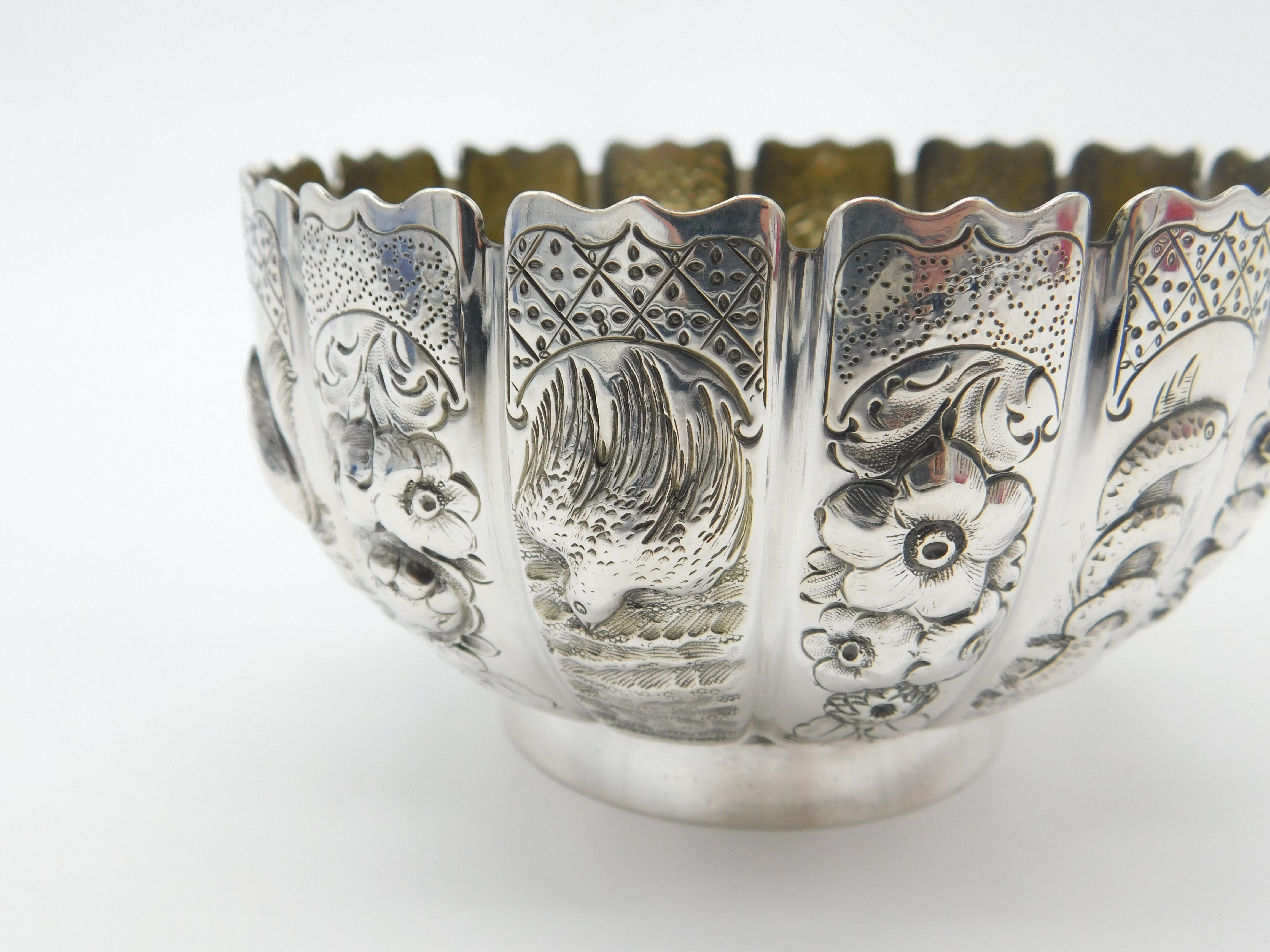 Victorian Sterling Silver Bowl Squirrel, Snake, Swallow Antique 1876 London