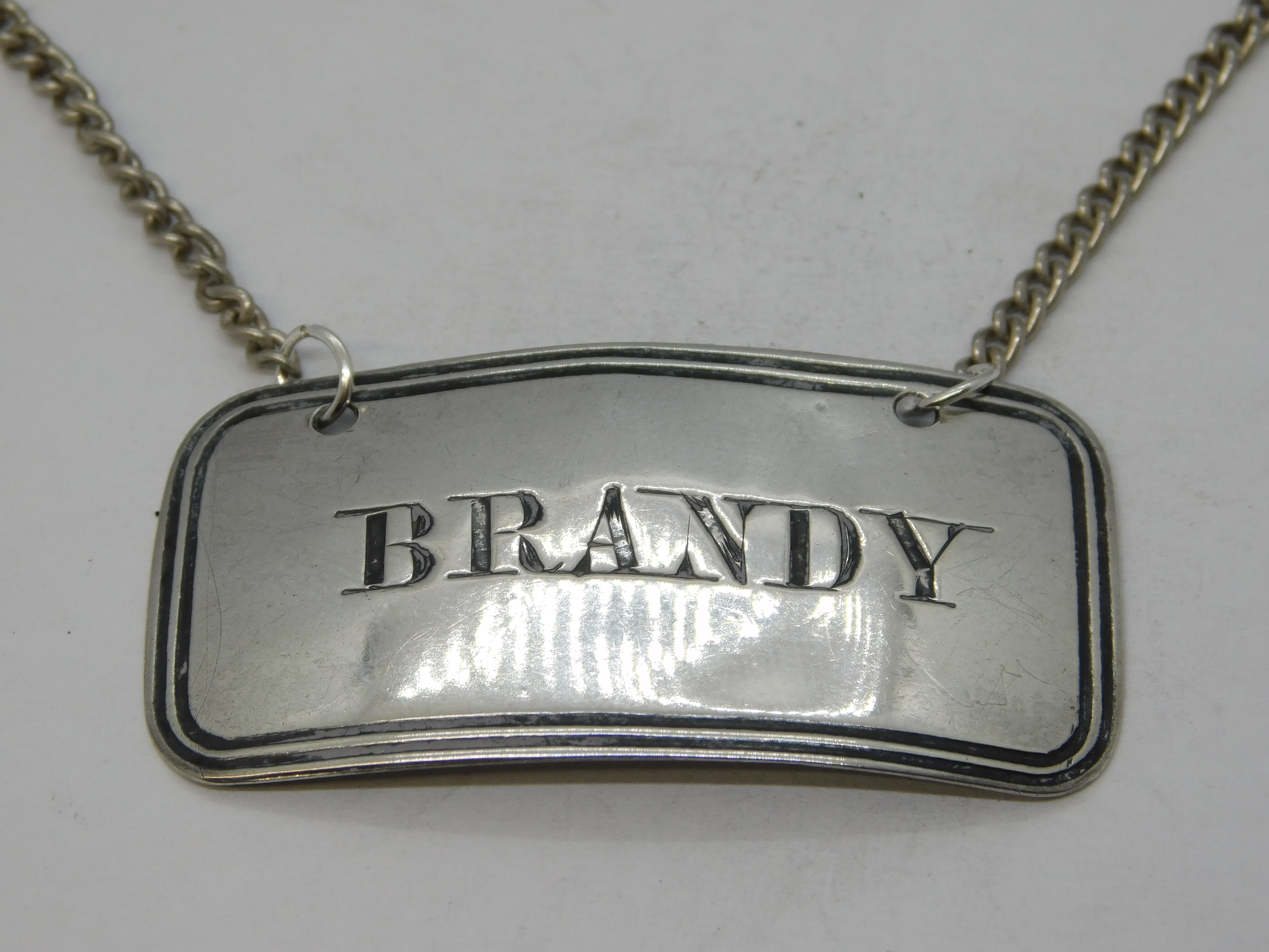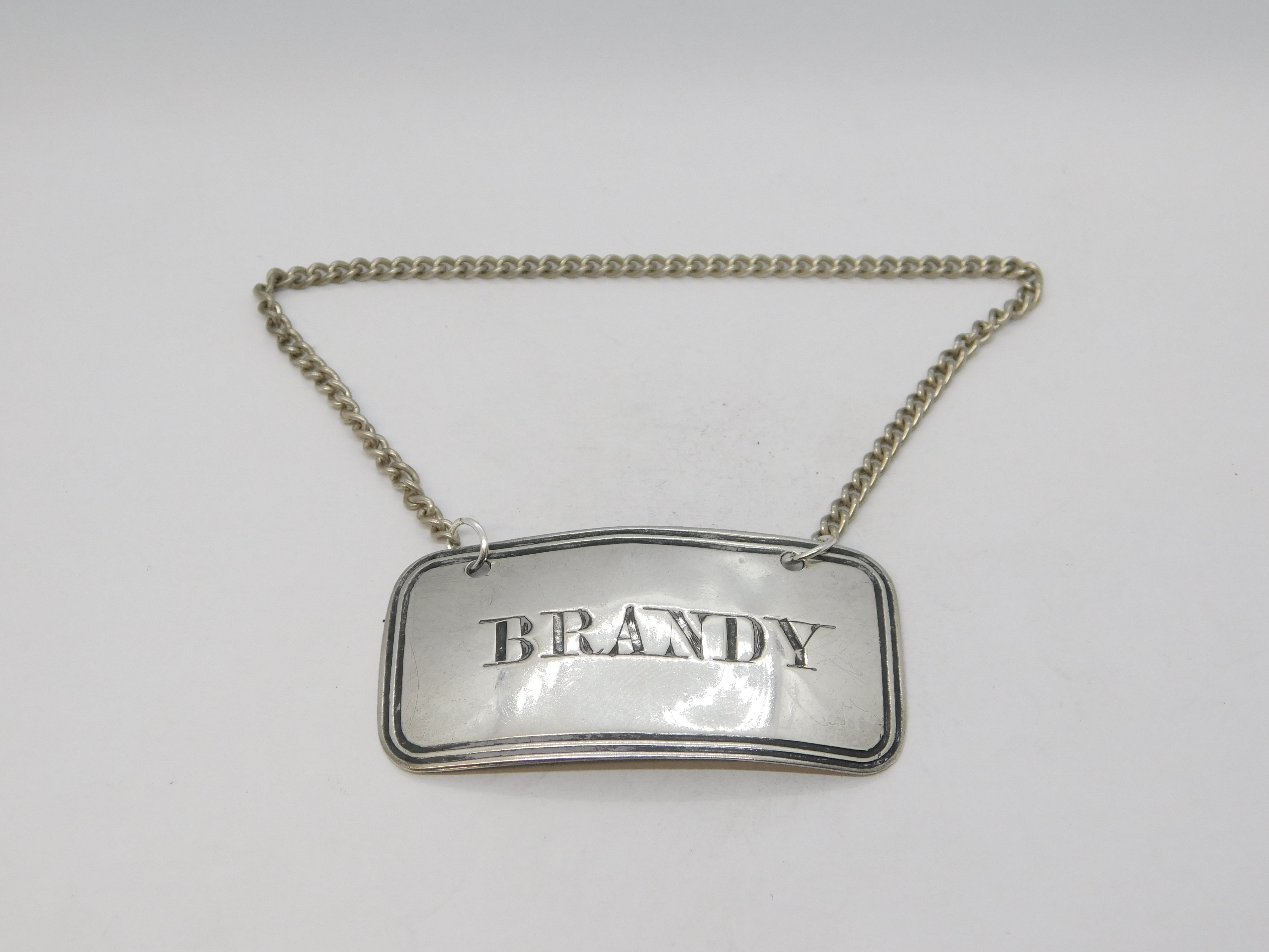 Victorian Sterling Silver Brandy Decanter Label Antique 1871 George Unite