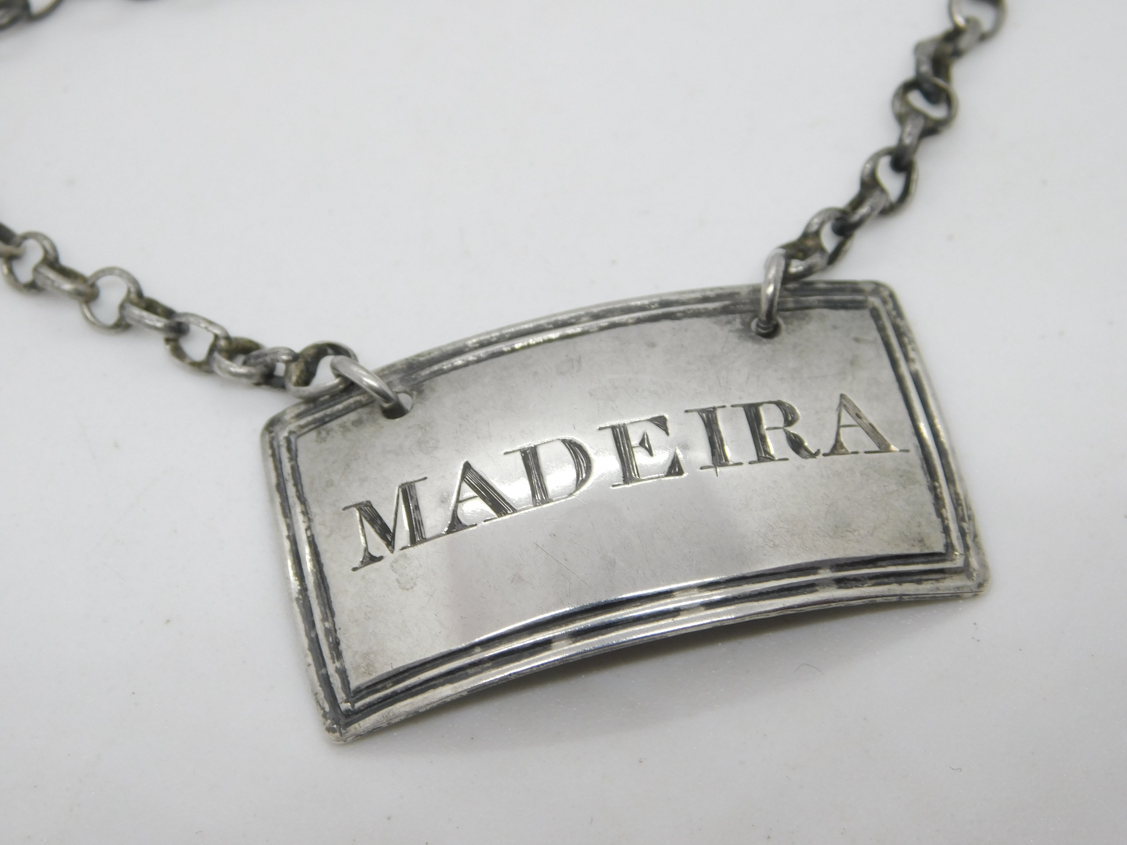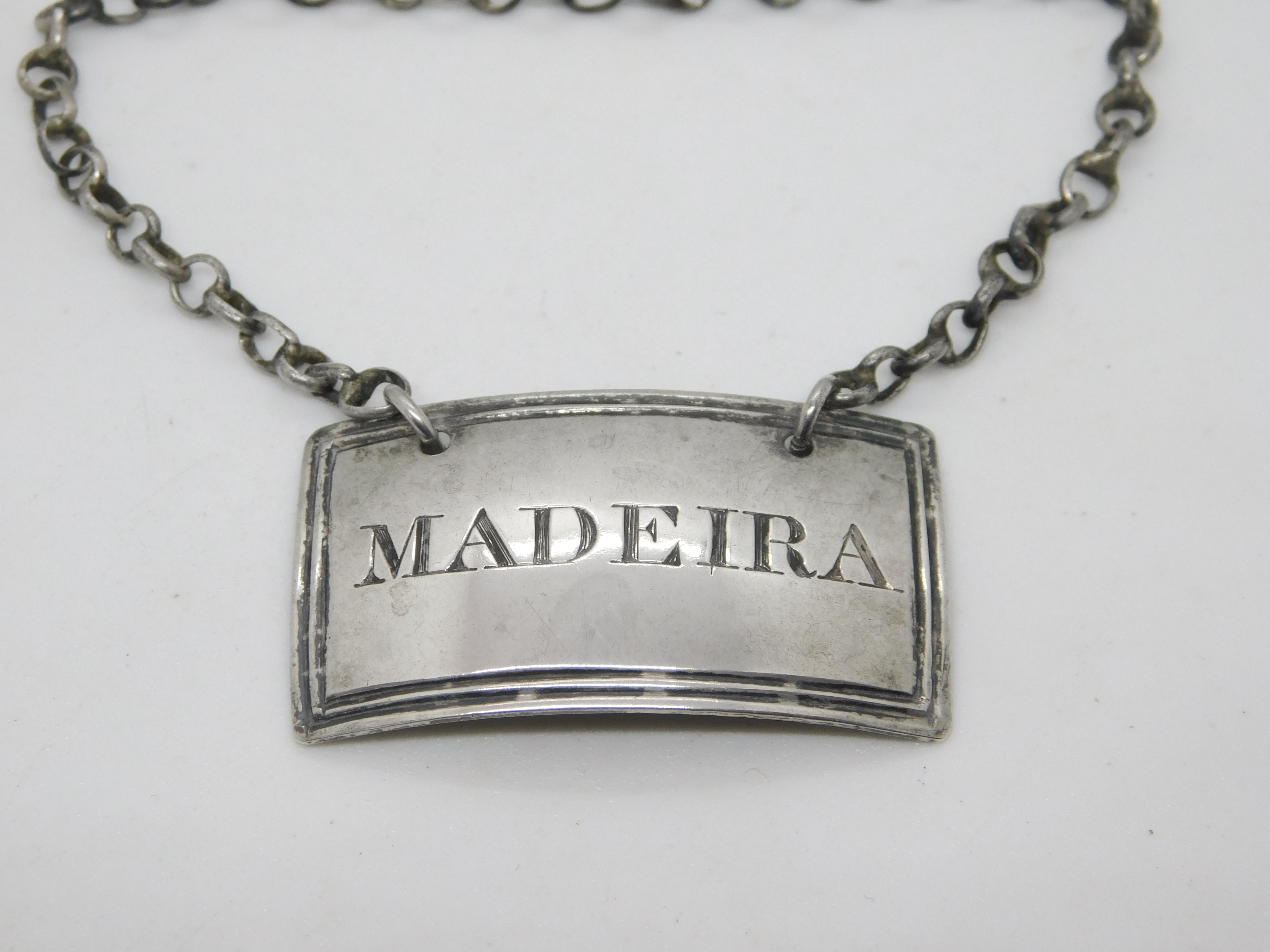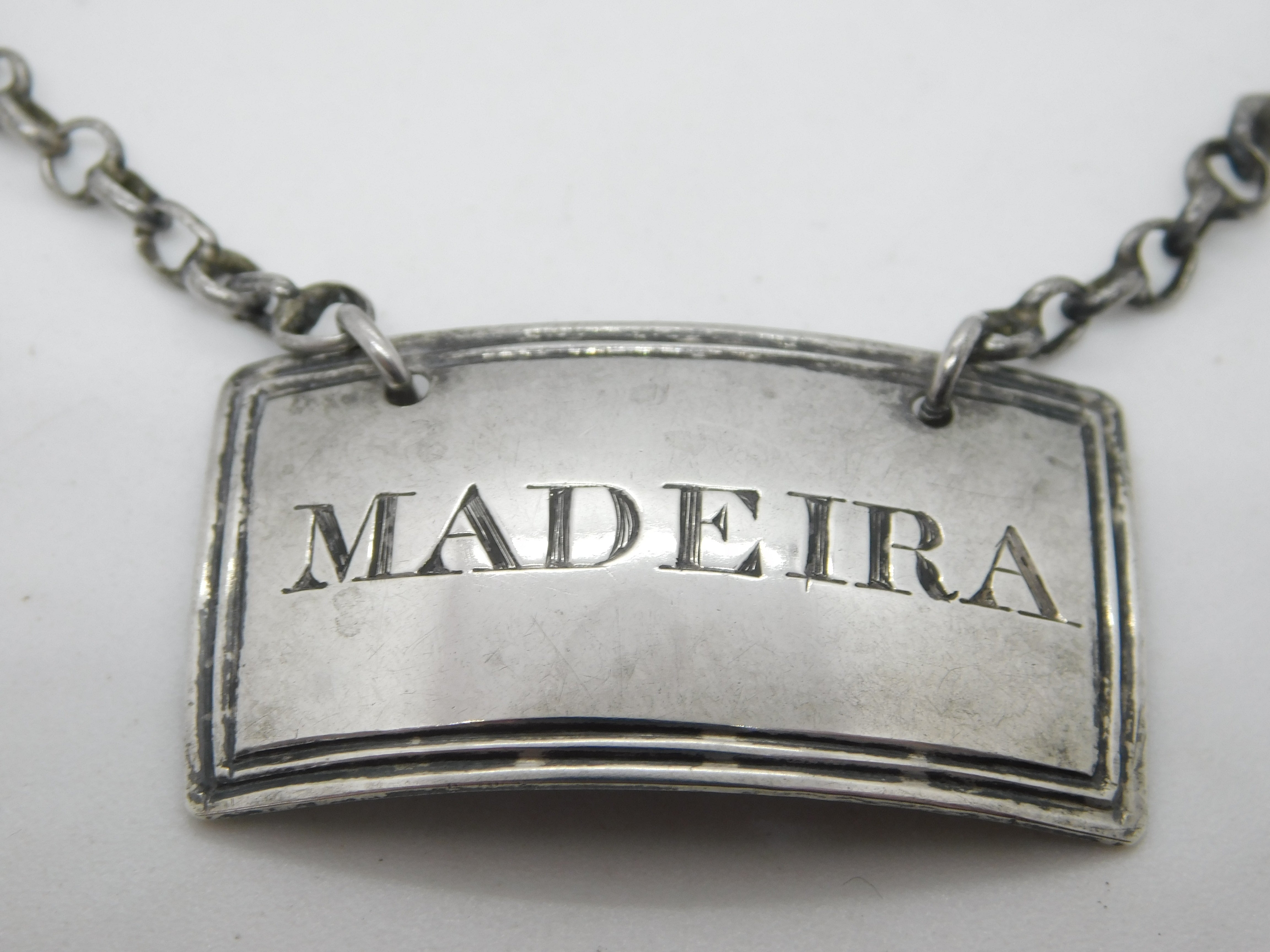 Victorian Sterling Silver Bright Cut Madeira Decanter Label Antique 1838 London