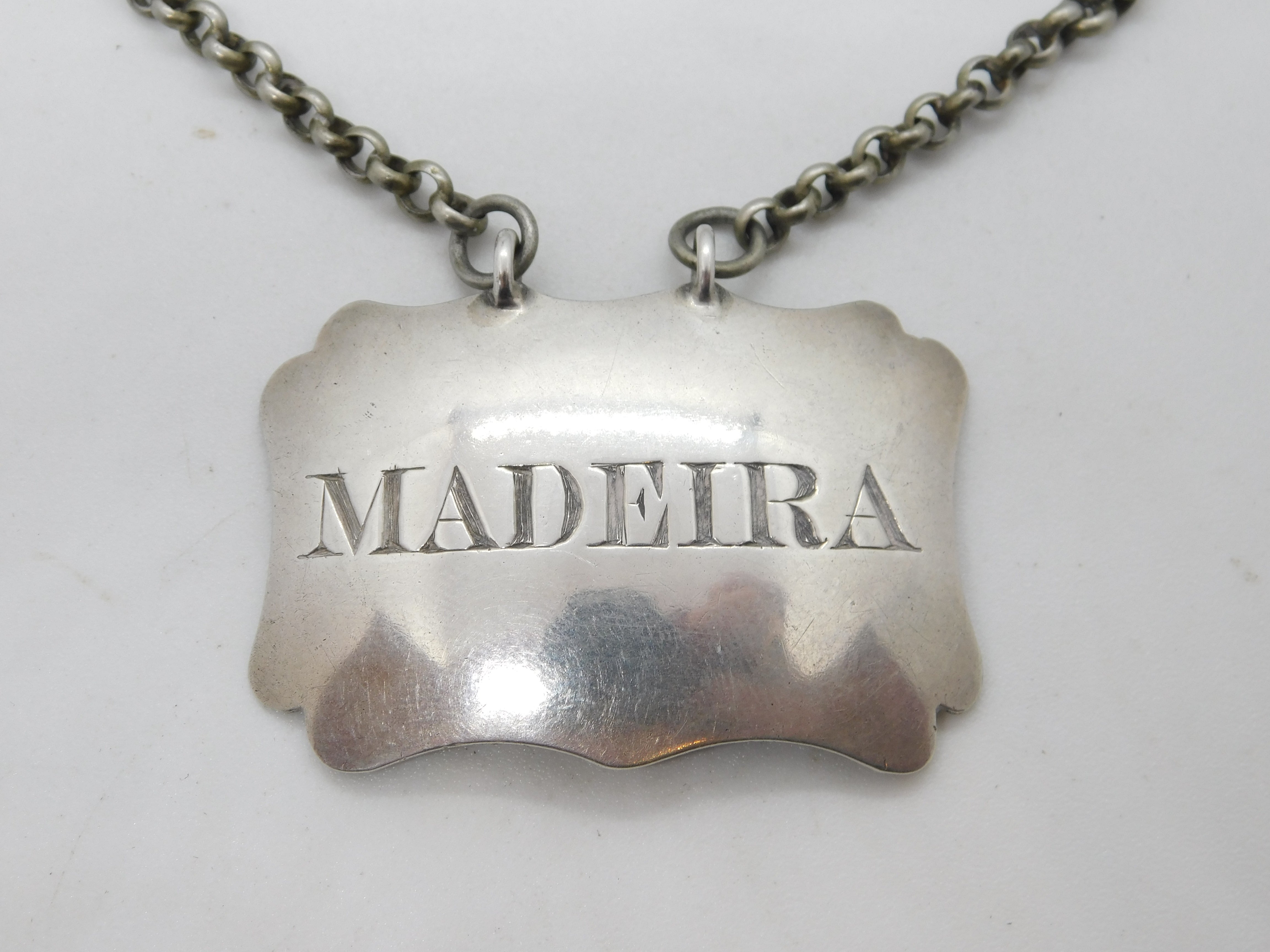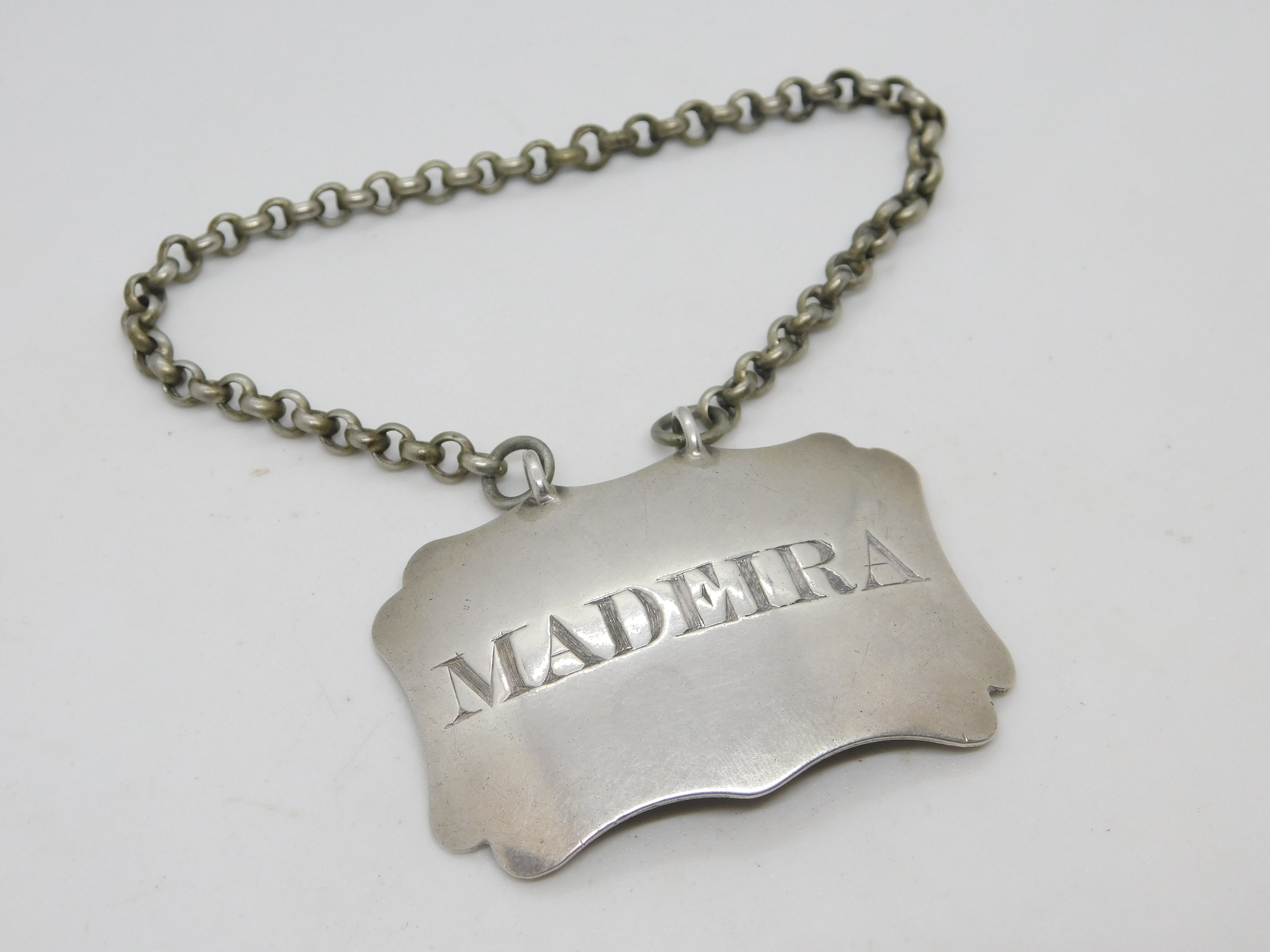 Victorian Sterling Silver Bright Cut Madeira Decanter Label Antique 1838 London
