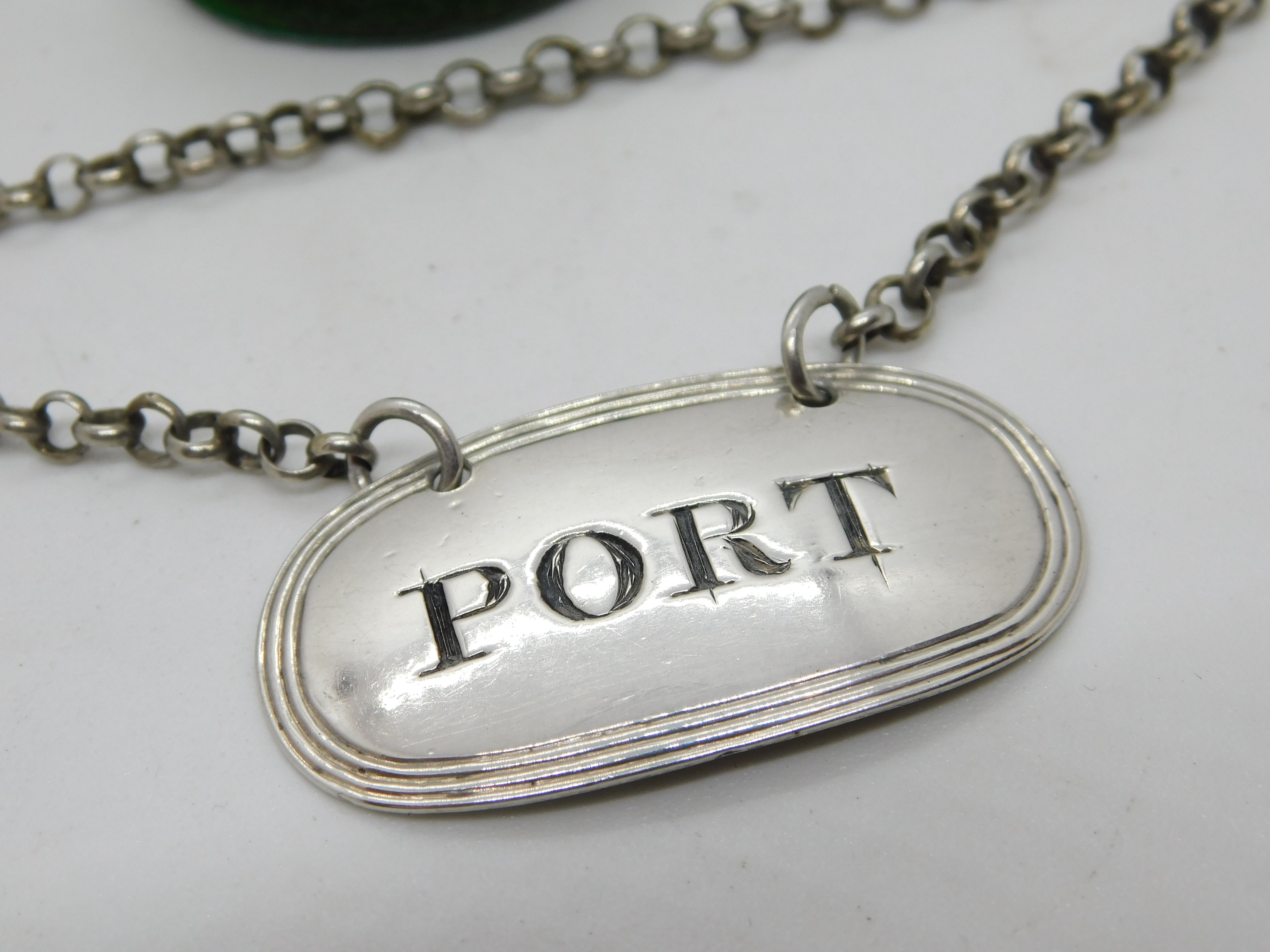 Victorian Sterling Silver Bright Cut Port Decanter Label Antique 1853 London