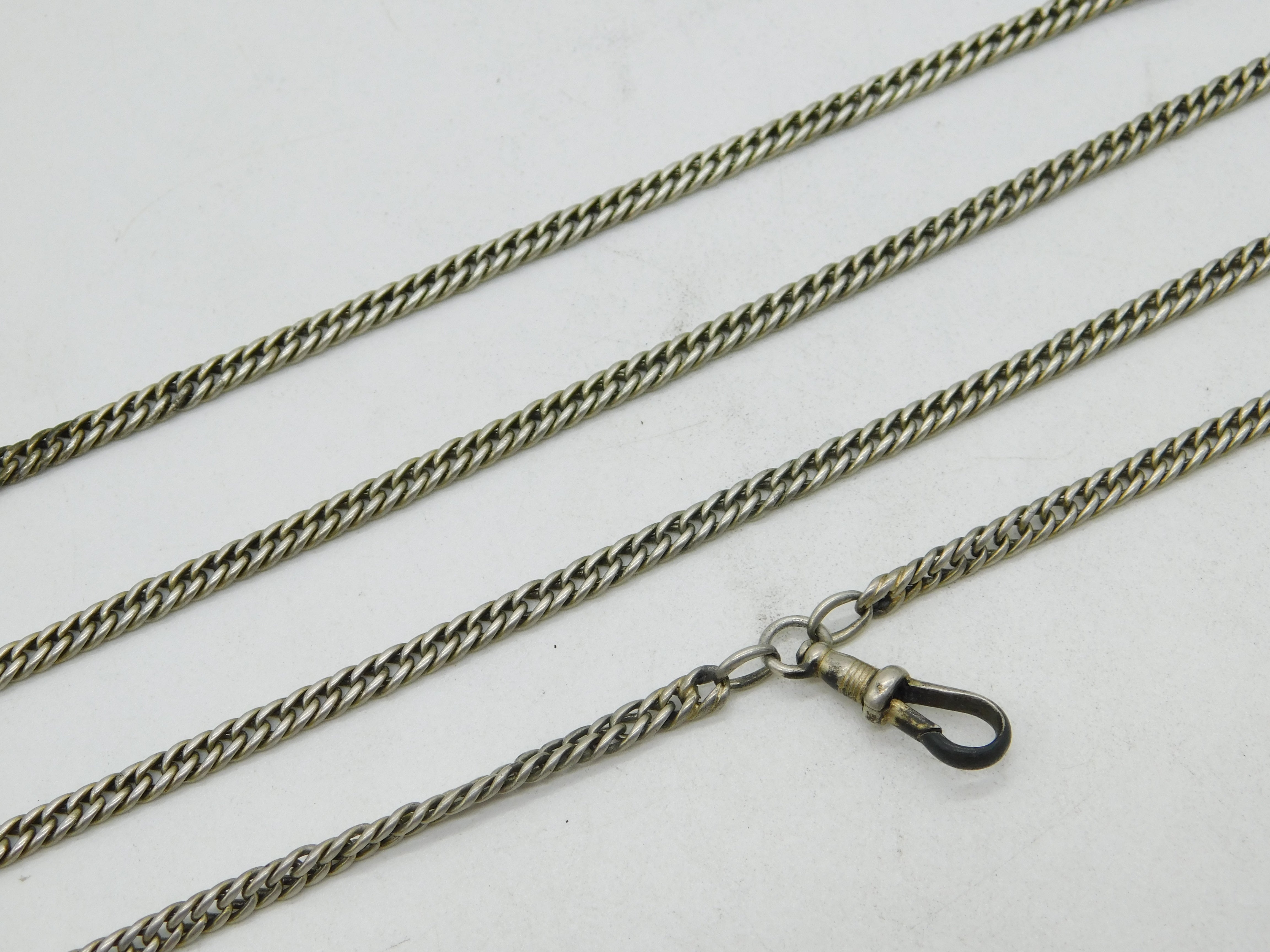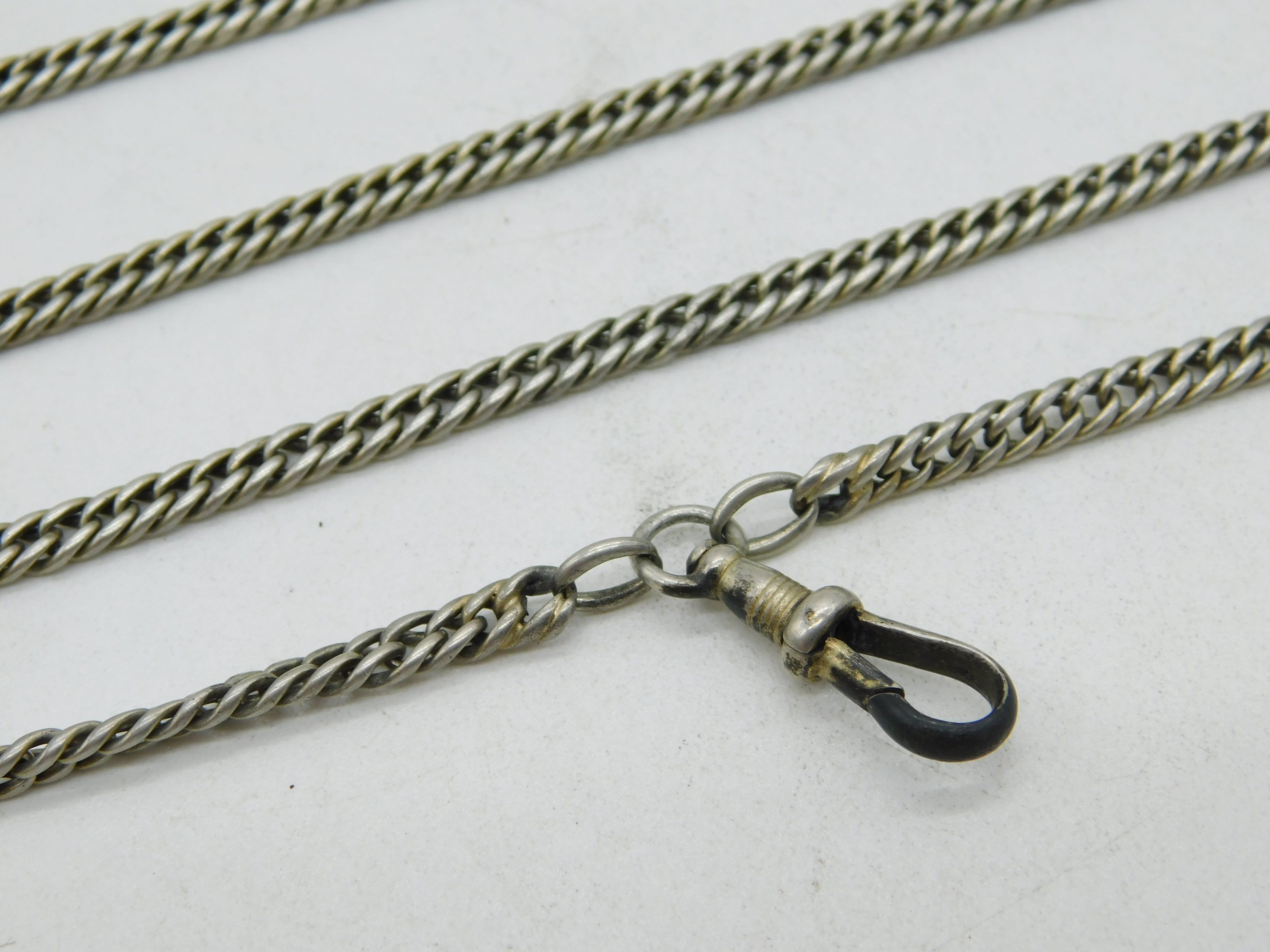 Victorian Sterling Silver Cable Link Long Guard Muff Chain Antique c1860