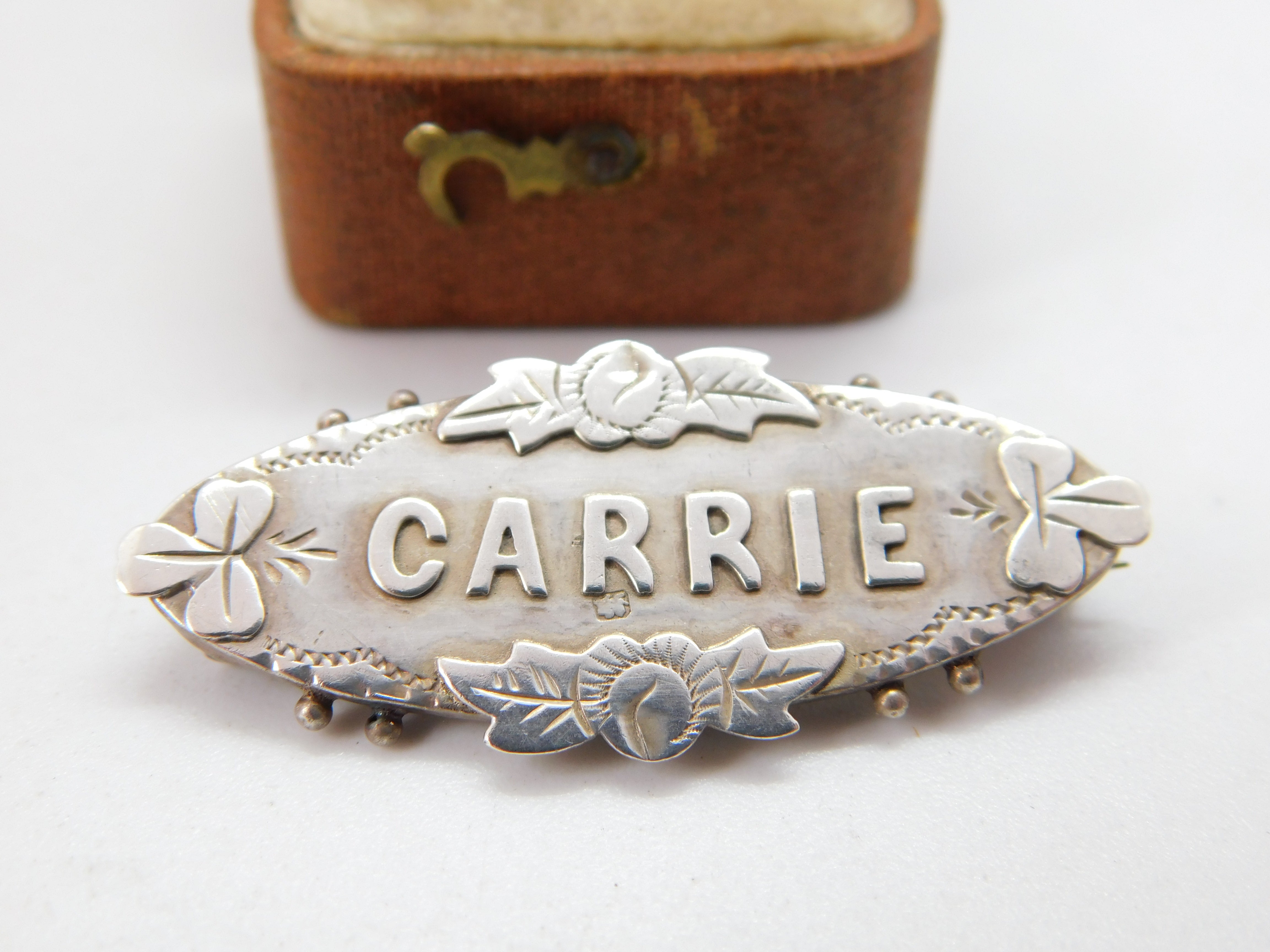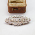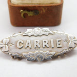 Victorian Sterling Silver 'Carrie' Name Sweetheart Brooch 1893 Birmingham Antiqu