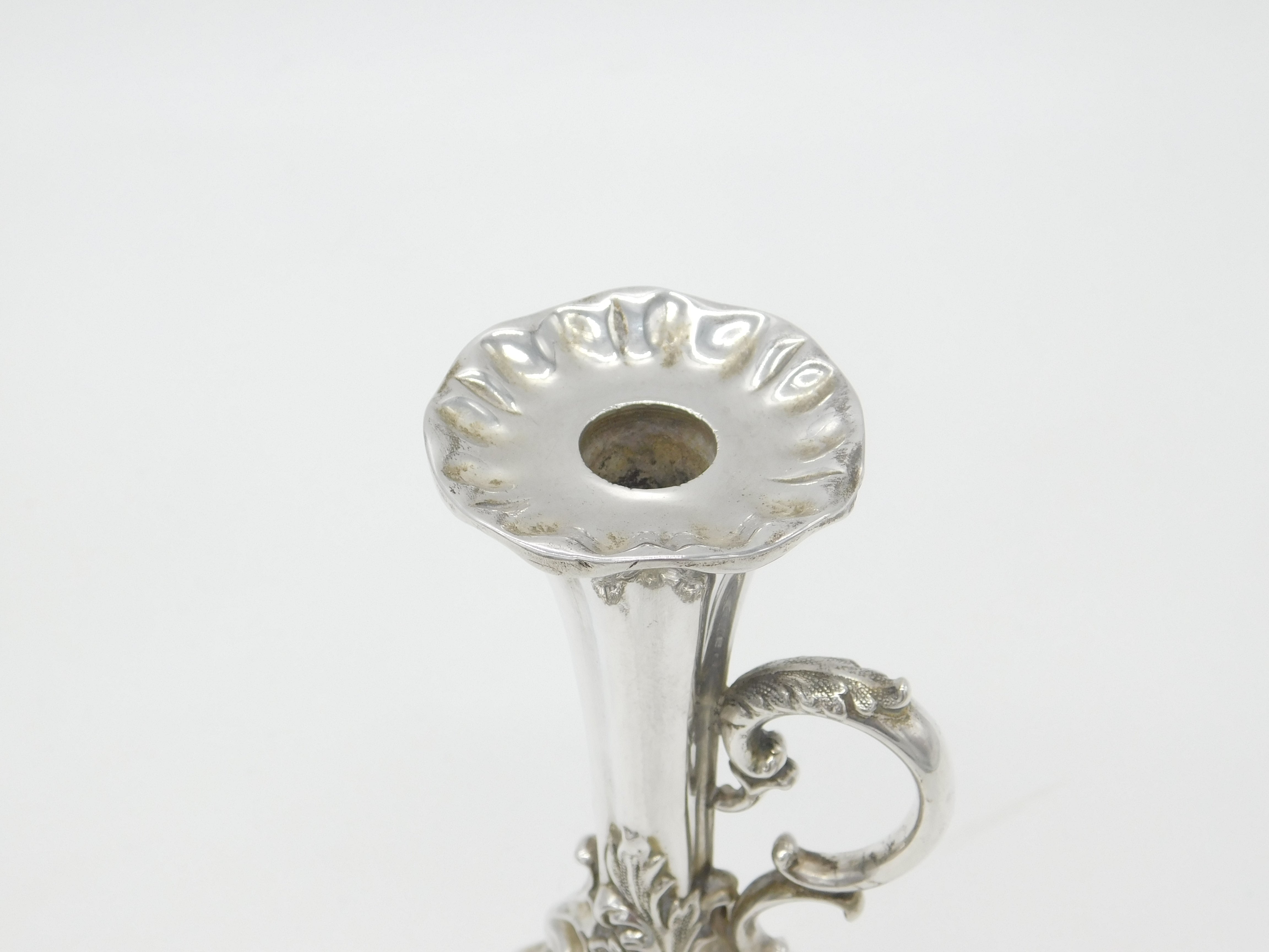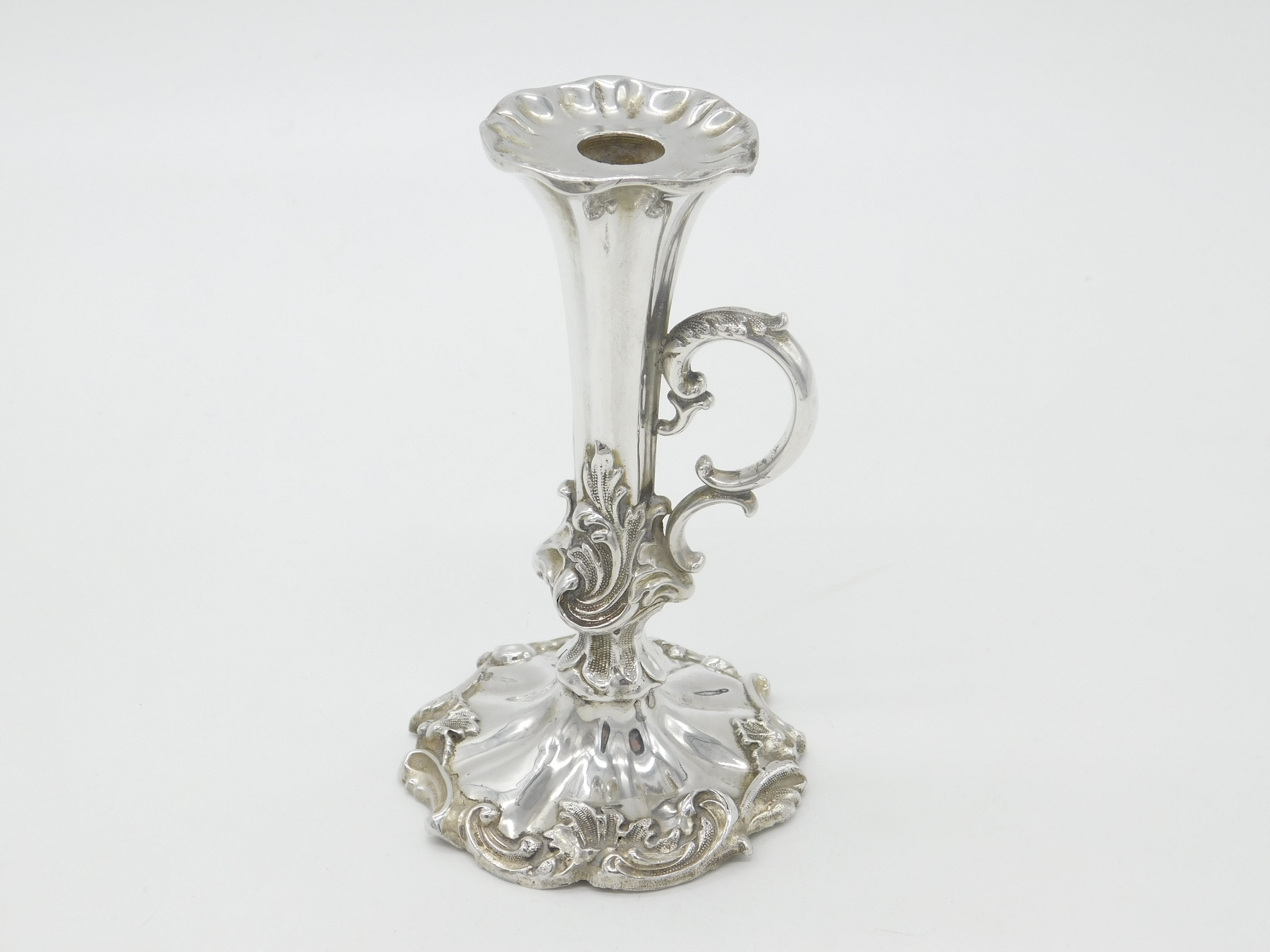 Details: A fantastic and wonderfully designed antique early Victorian sterling silver candle chamberstick or 'go-to-bed' with wonderful floral patterns throughout hallmarked Sheffield 1850 by Henry Wilkinson & Co. to the base. Very slight tilt to the candlestick but generally good. This is a wonderful item that would make a perfect gift or addition to any collection. The BOX pictured is for PRESENTATION ONLY and is NOT included in the listings but used to frame the pictures unless specifically stated otherwise.