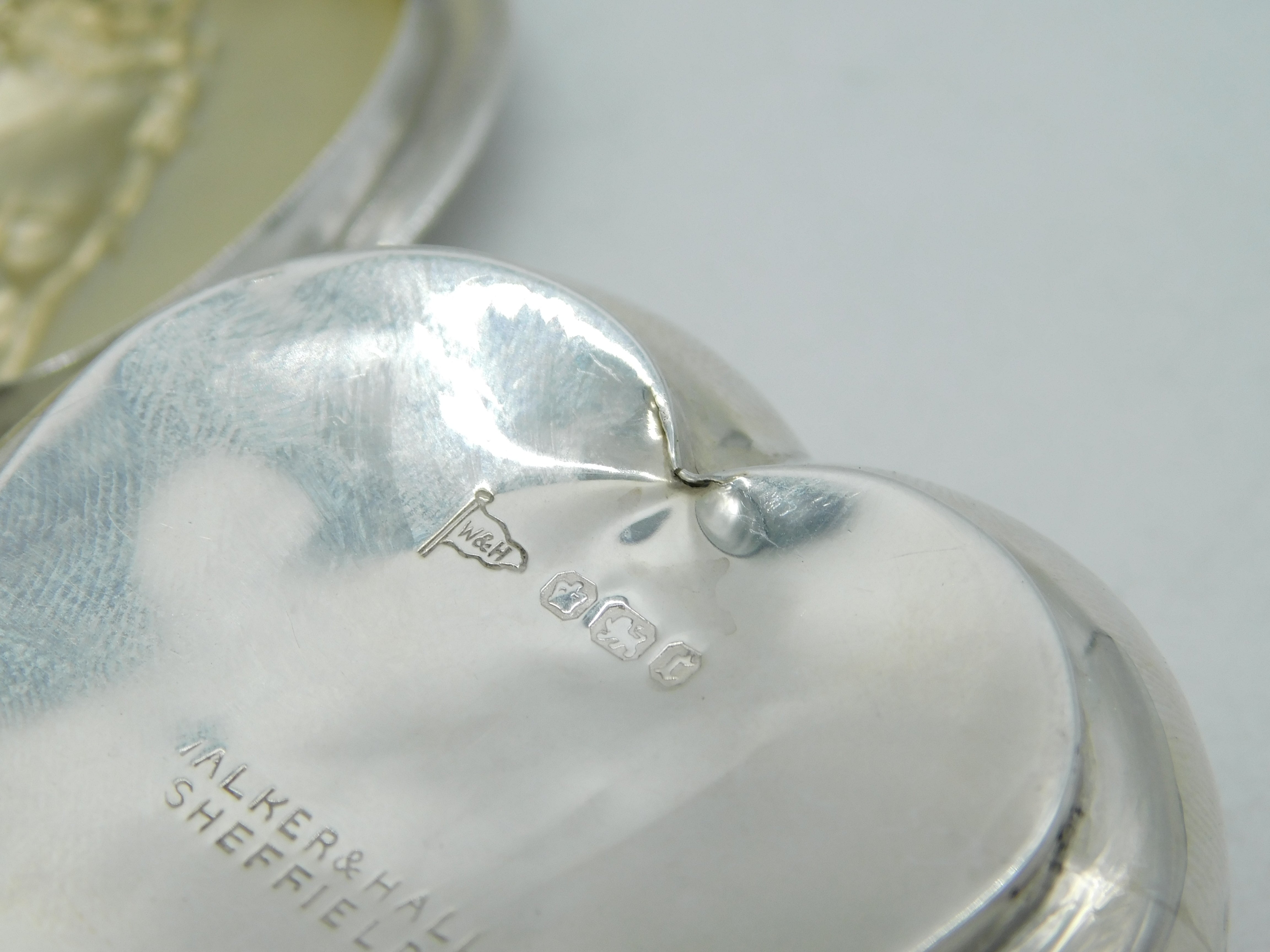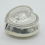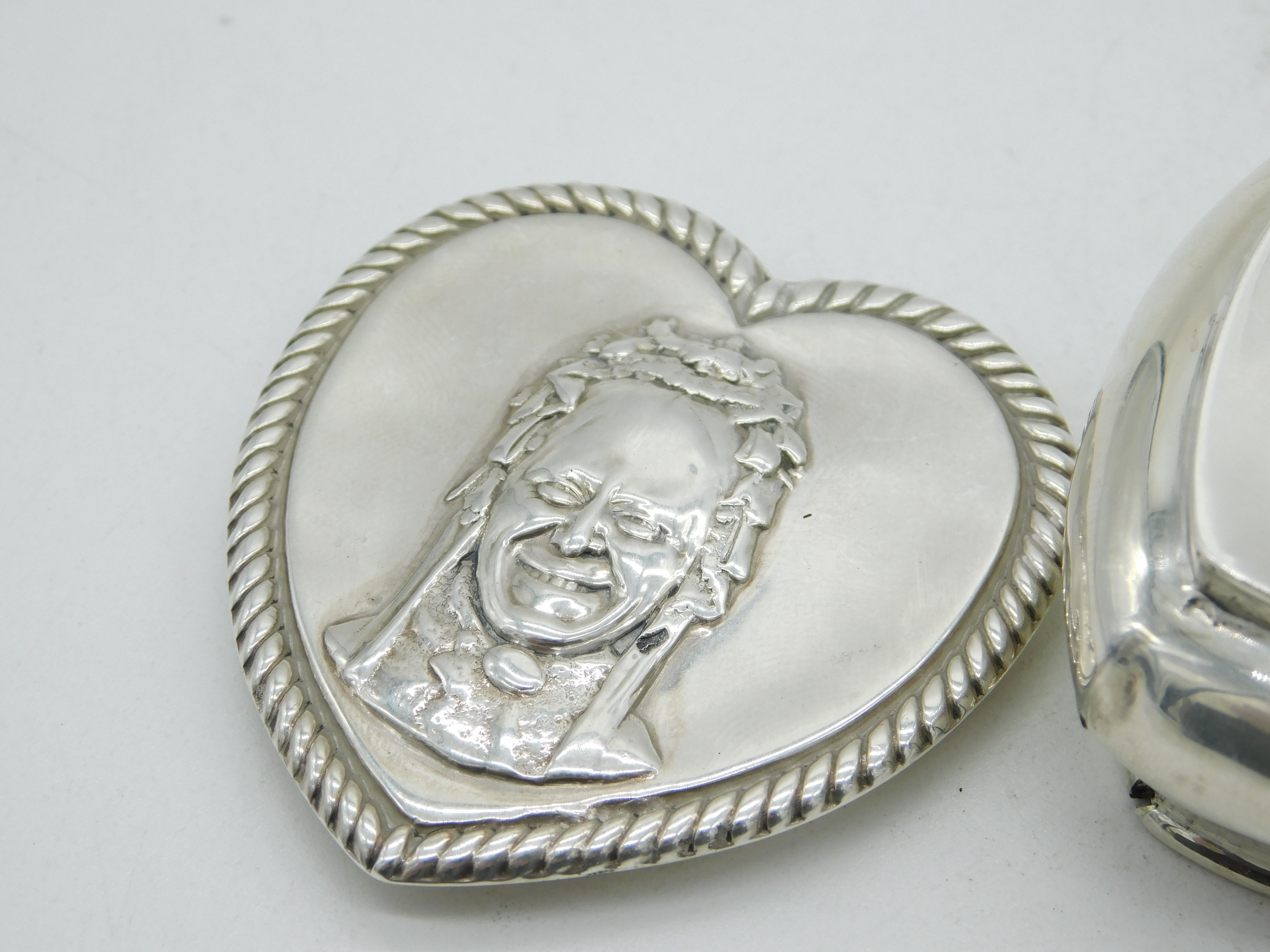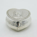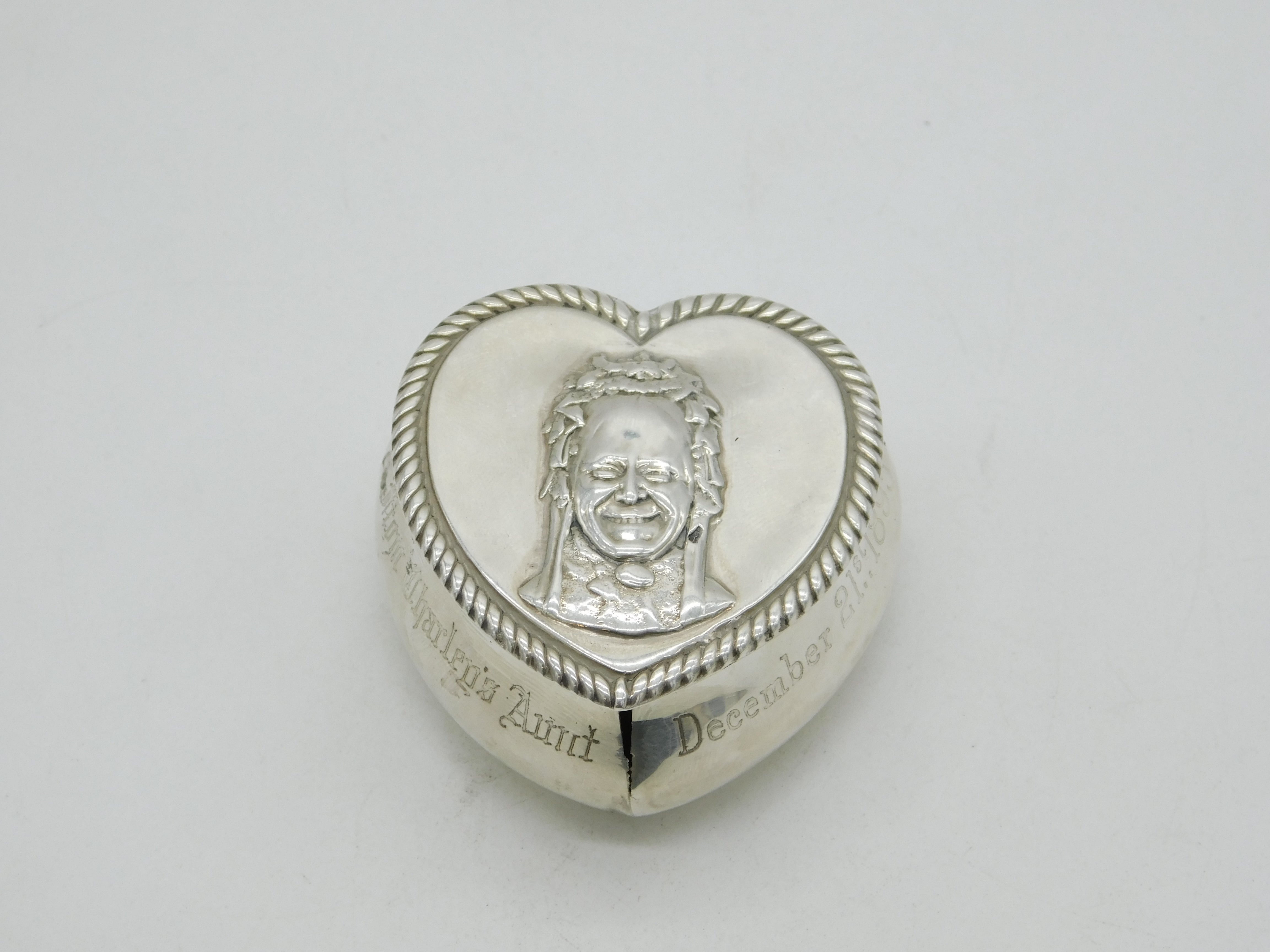 Details: A fantastic and wonderfully designed antique Victorian heart shaped sterling silver trinket box with engraving around the edge given to certain members of the audience of the farcical production 'Charley's Aunt' at the Globe Theatre on December 21st 1895, hallmarked Sheffield 1895 to the base. This is a wonderful item that would make a perfect gift or addition to any collection. The BOX pictured is for PRESENTATION ONLY and is NOT included in the listings but used to frame the pictures unless specifically stated otherwise.
