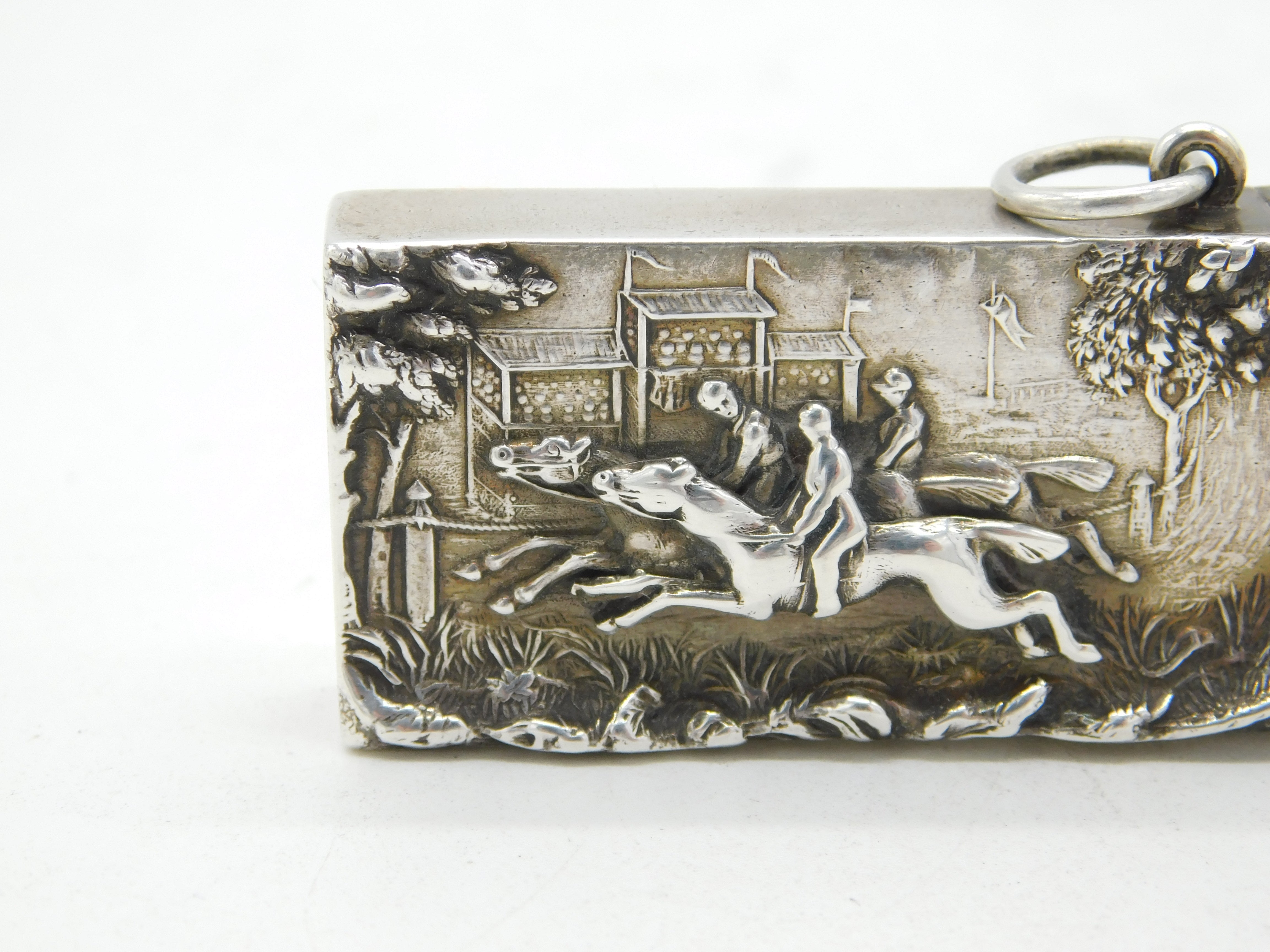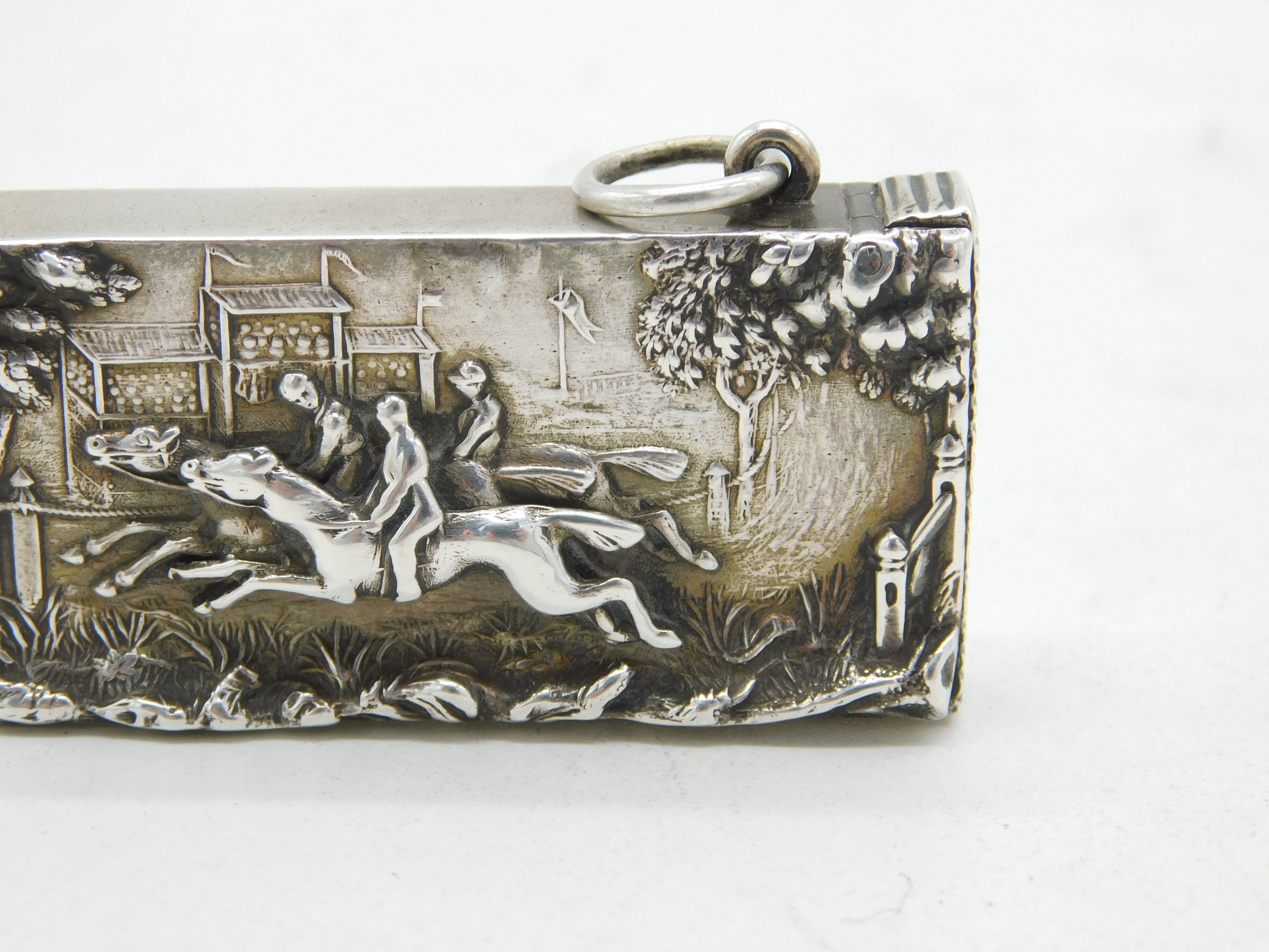 Victorian Sterling Silver Chased Horse Racing Vesta Case Antique 1892 Birmingham