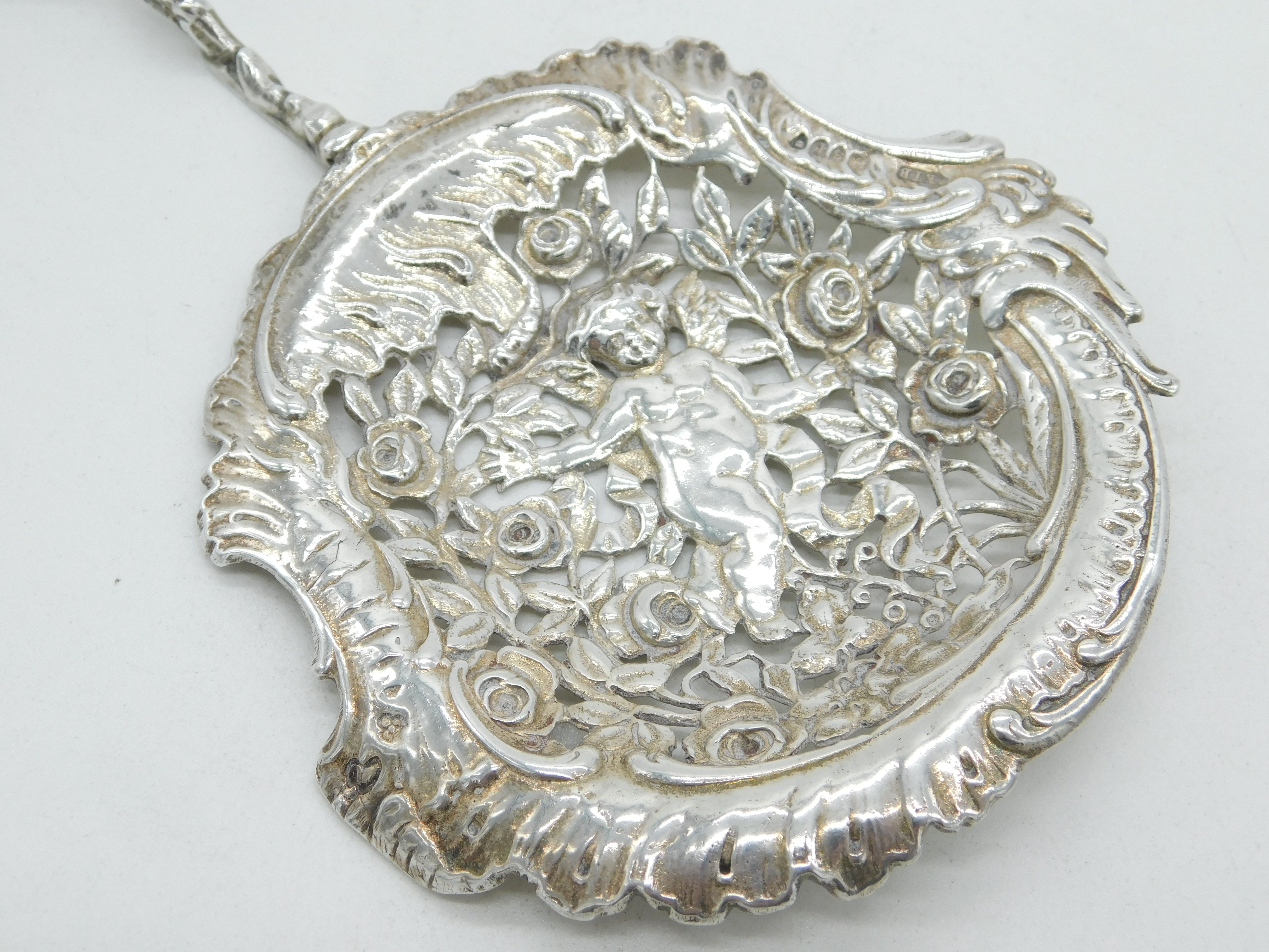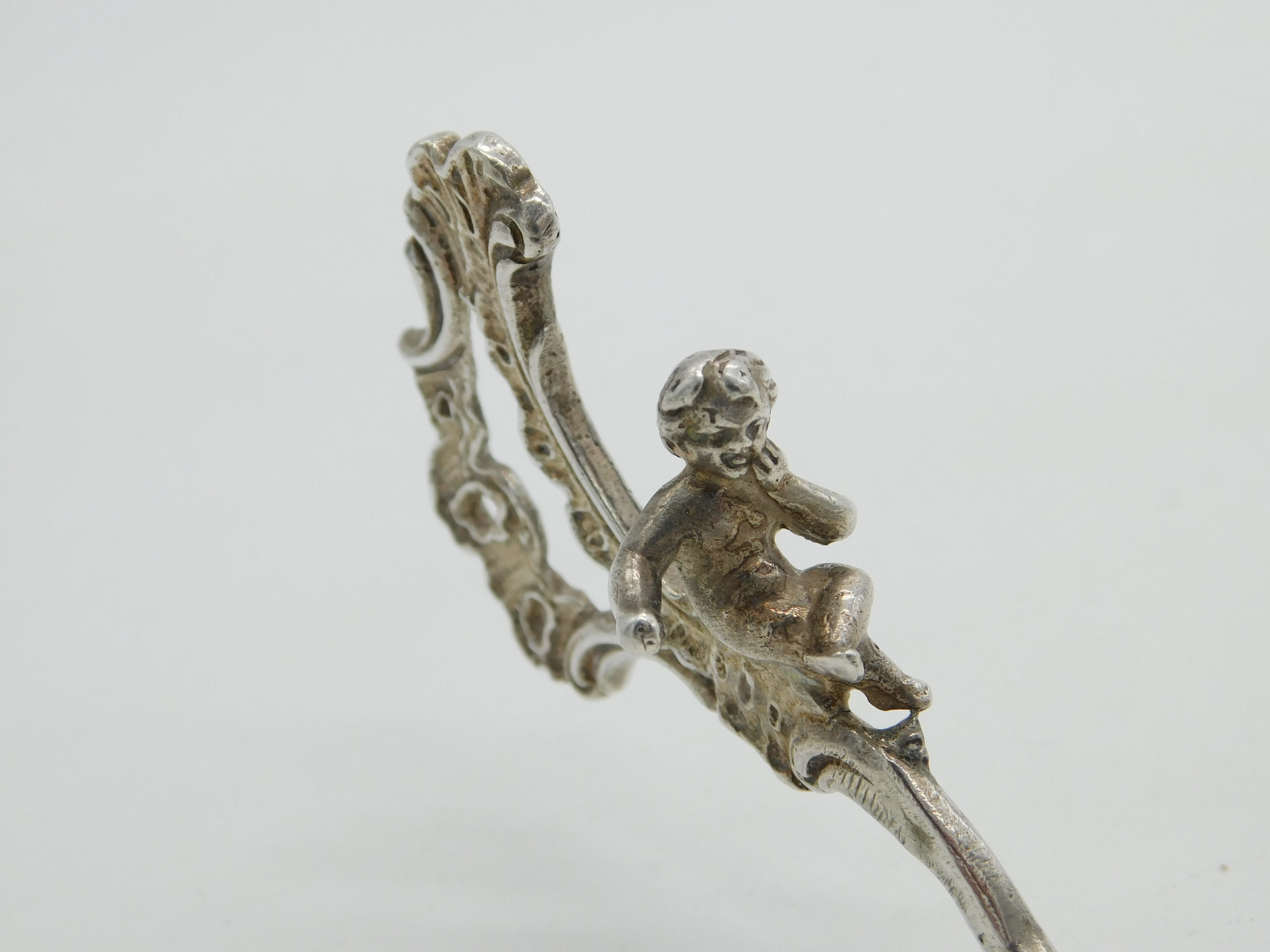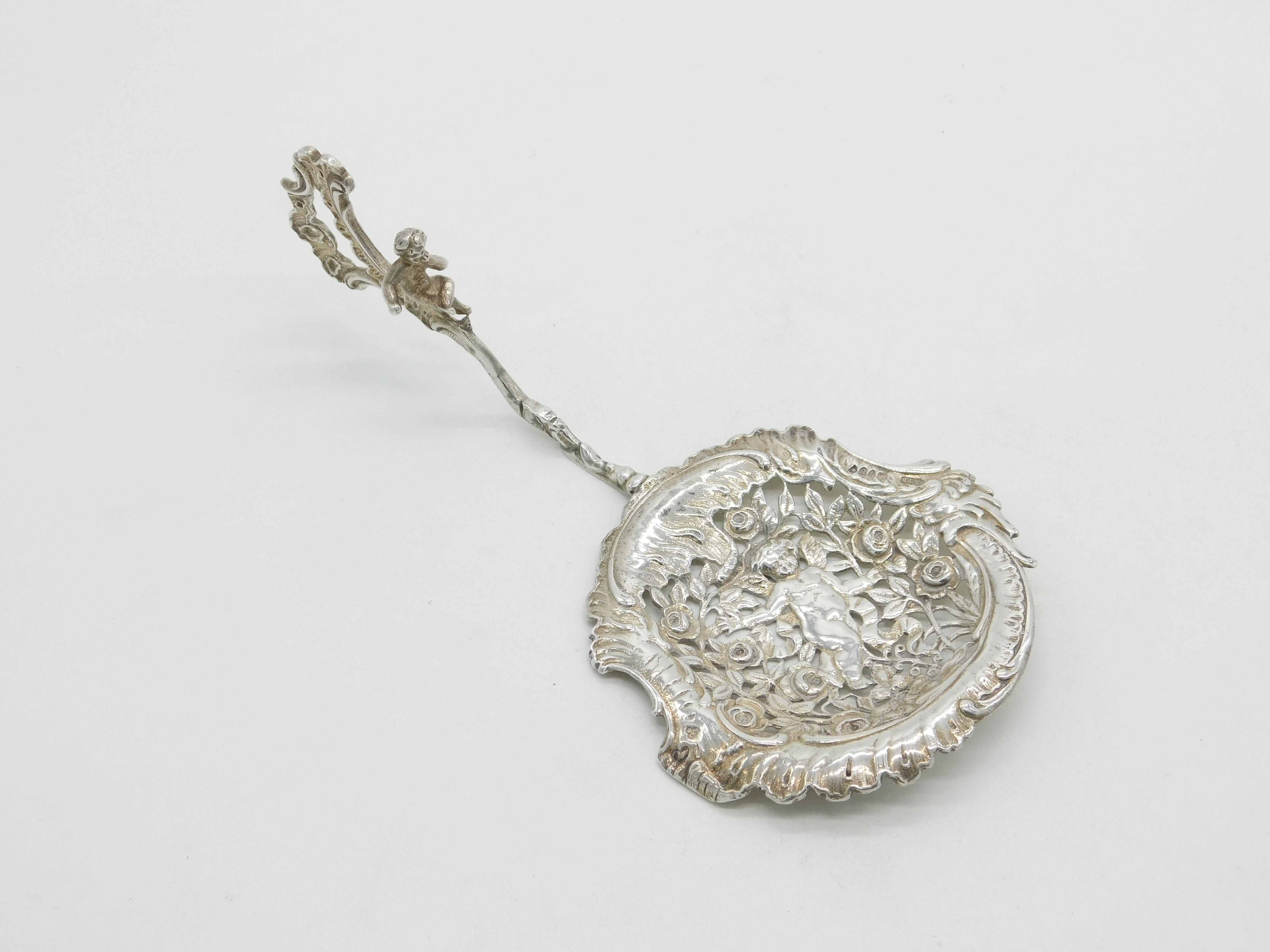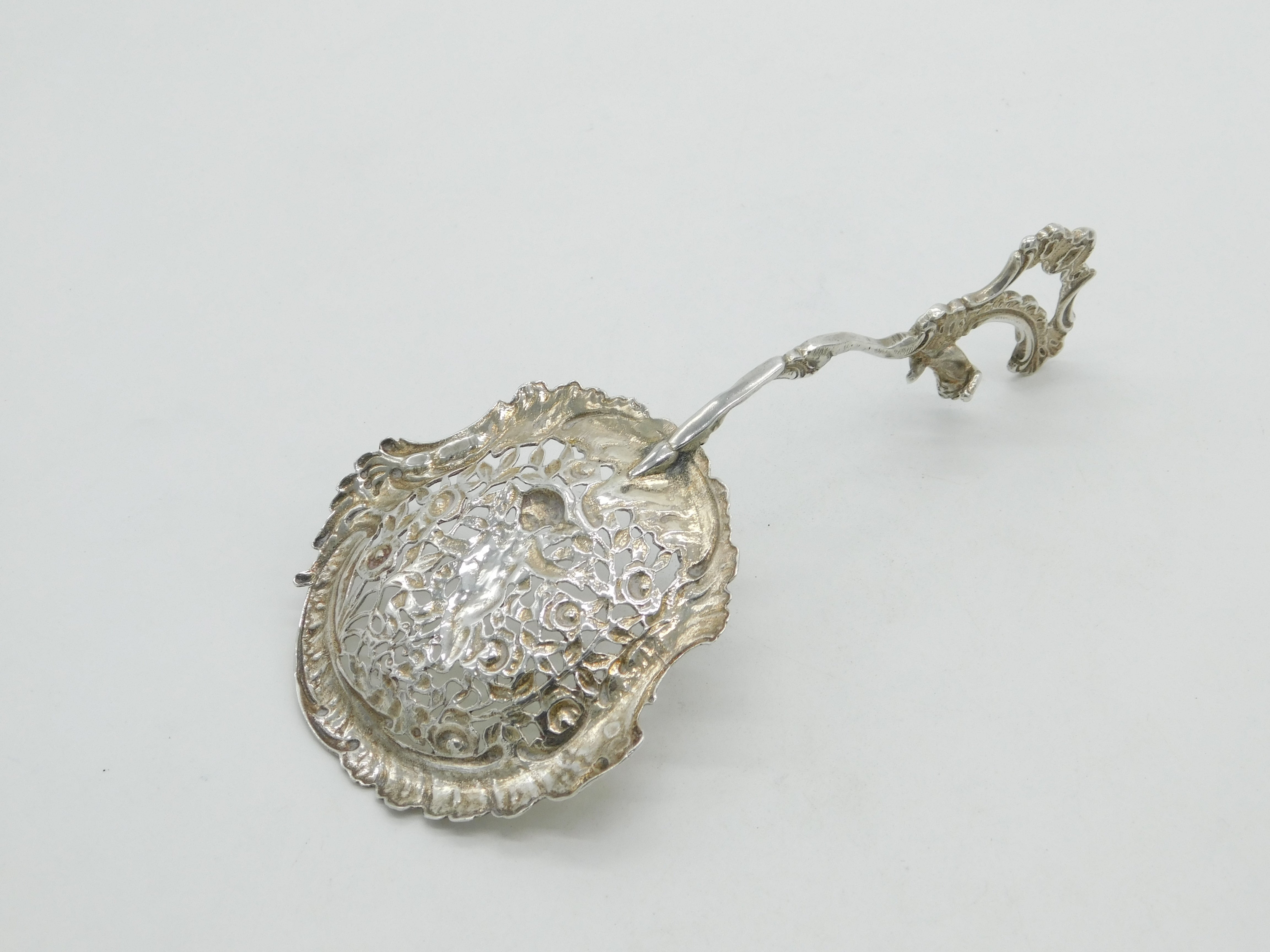 Victorian Sterling Silver Cherub & Floral Ornate Sugar Caster Spoon 1893 London