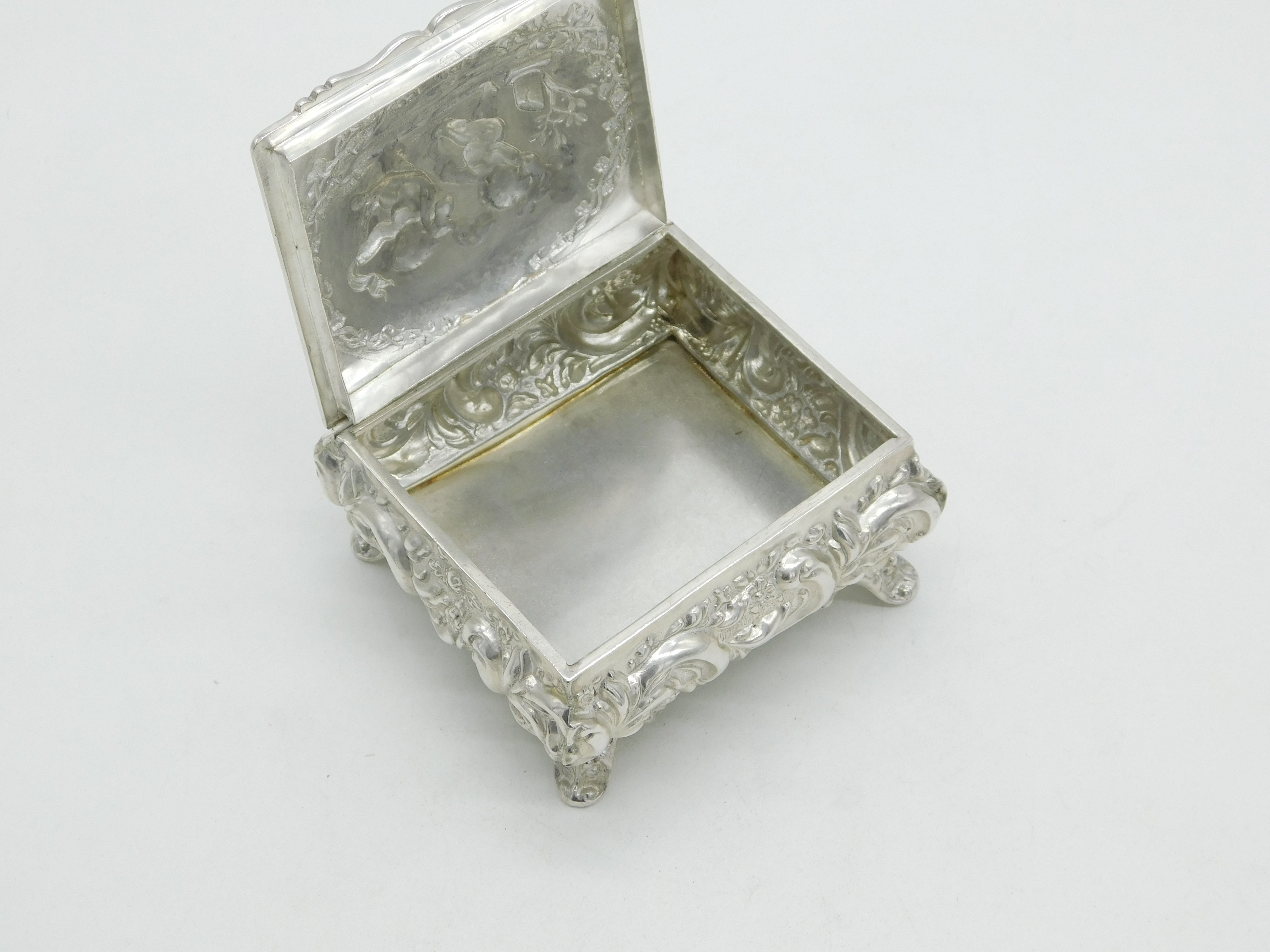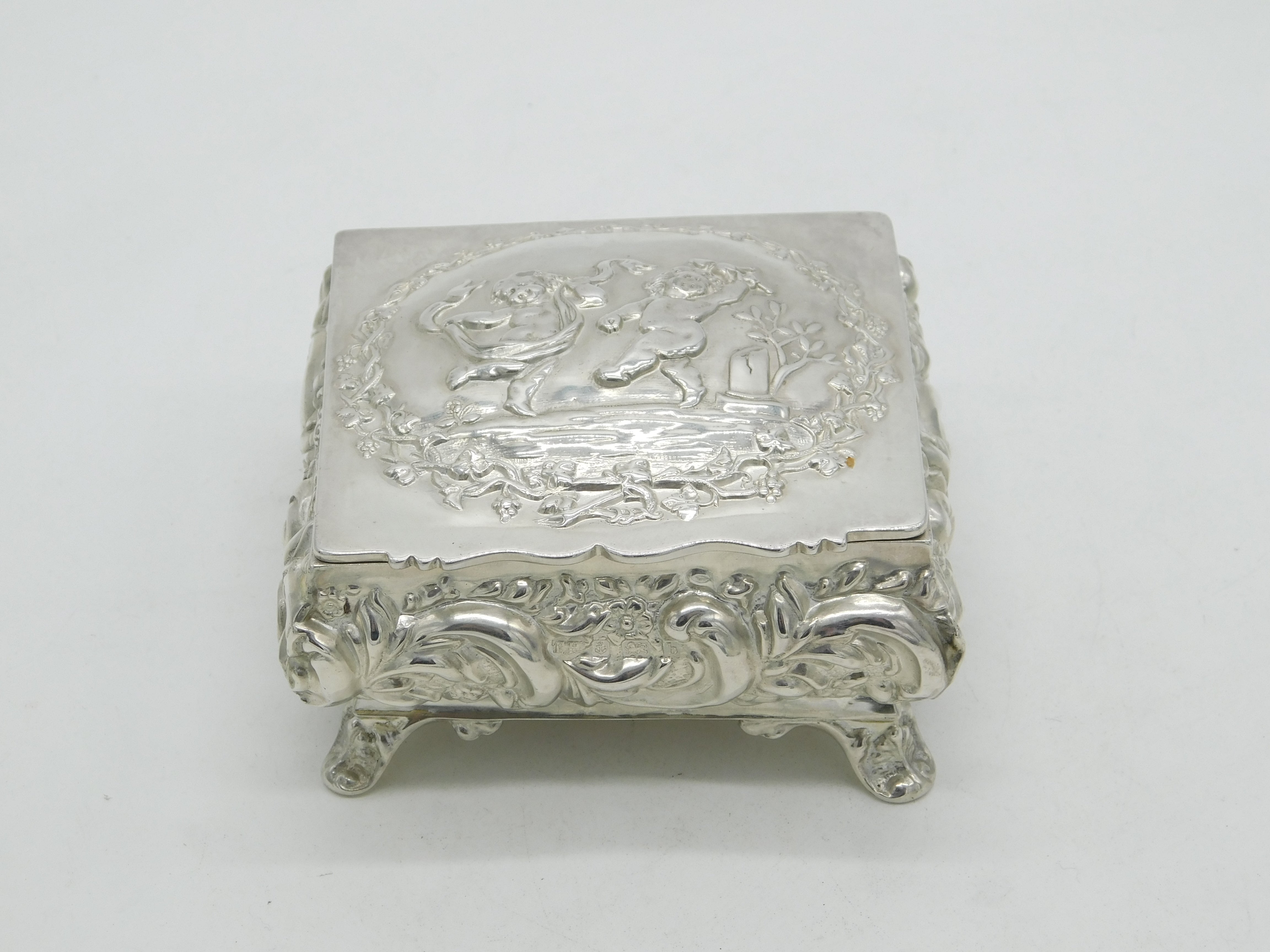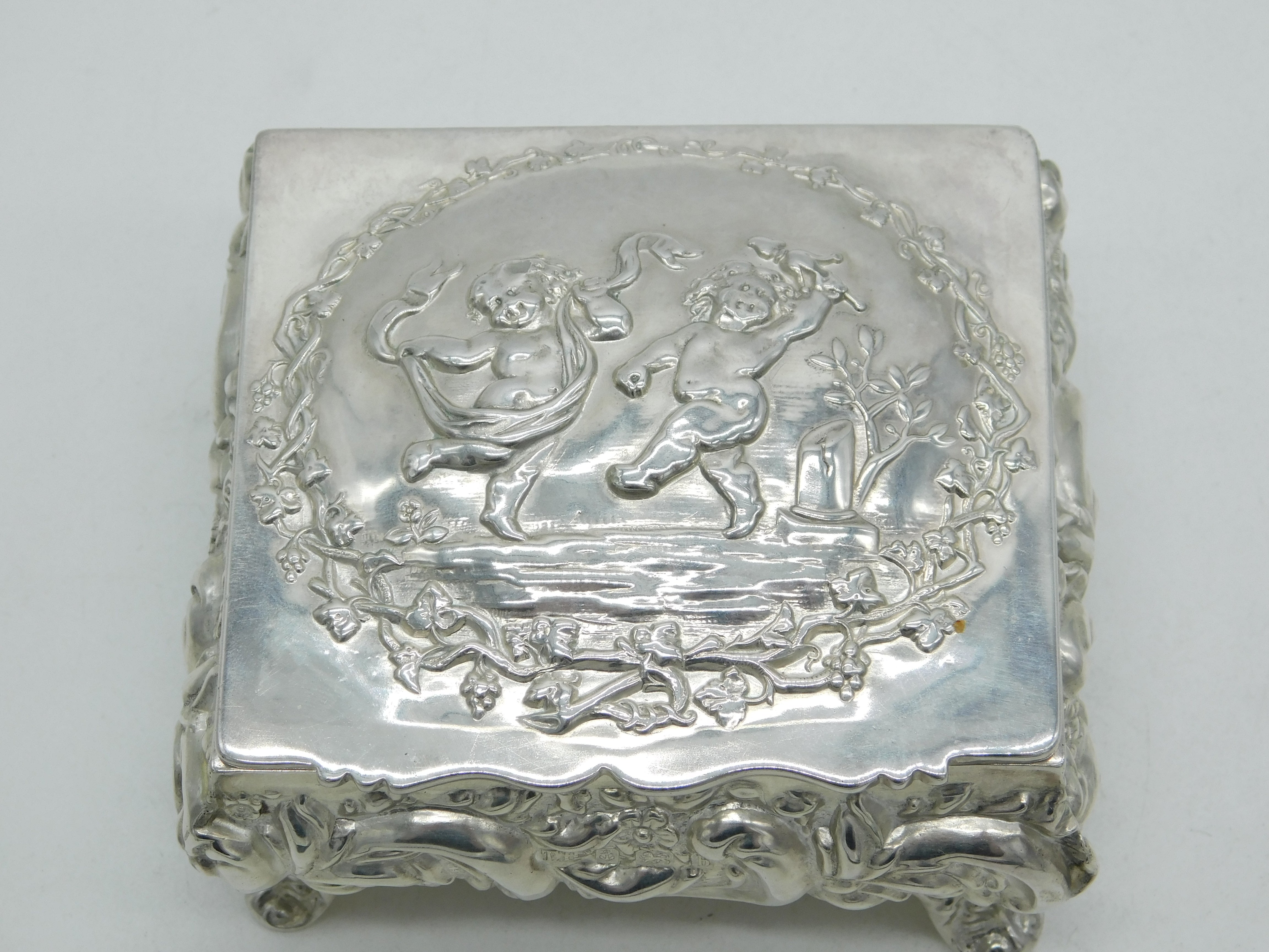 Victorian Sterling Silver Cherub Pattern Jewellery Box Antique 1901 Birmingham