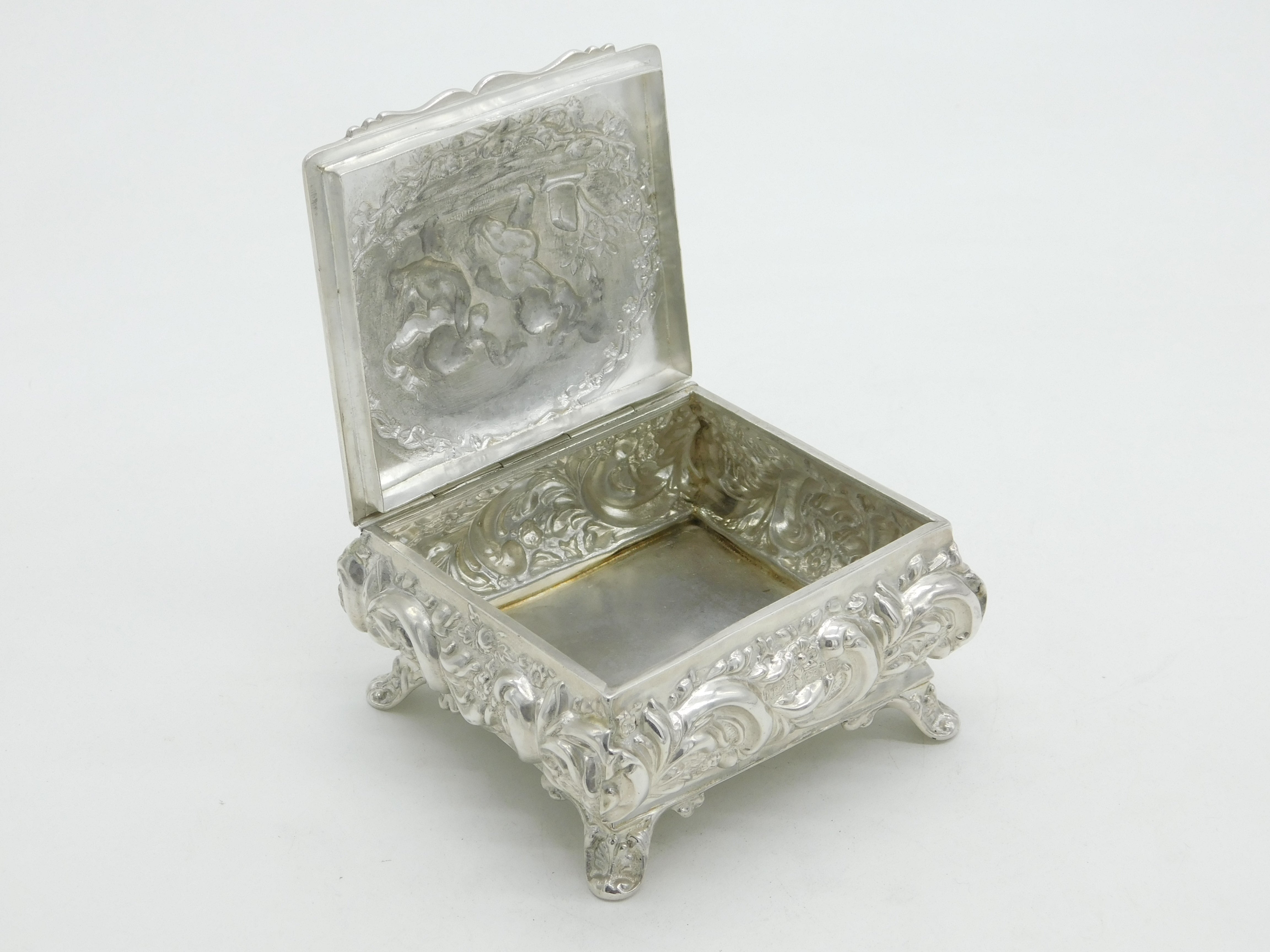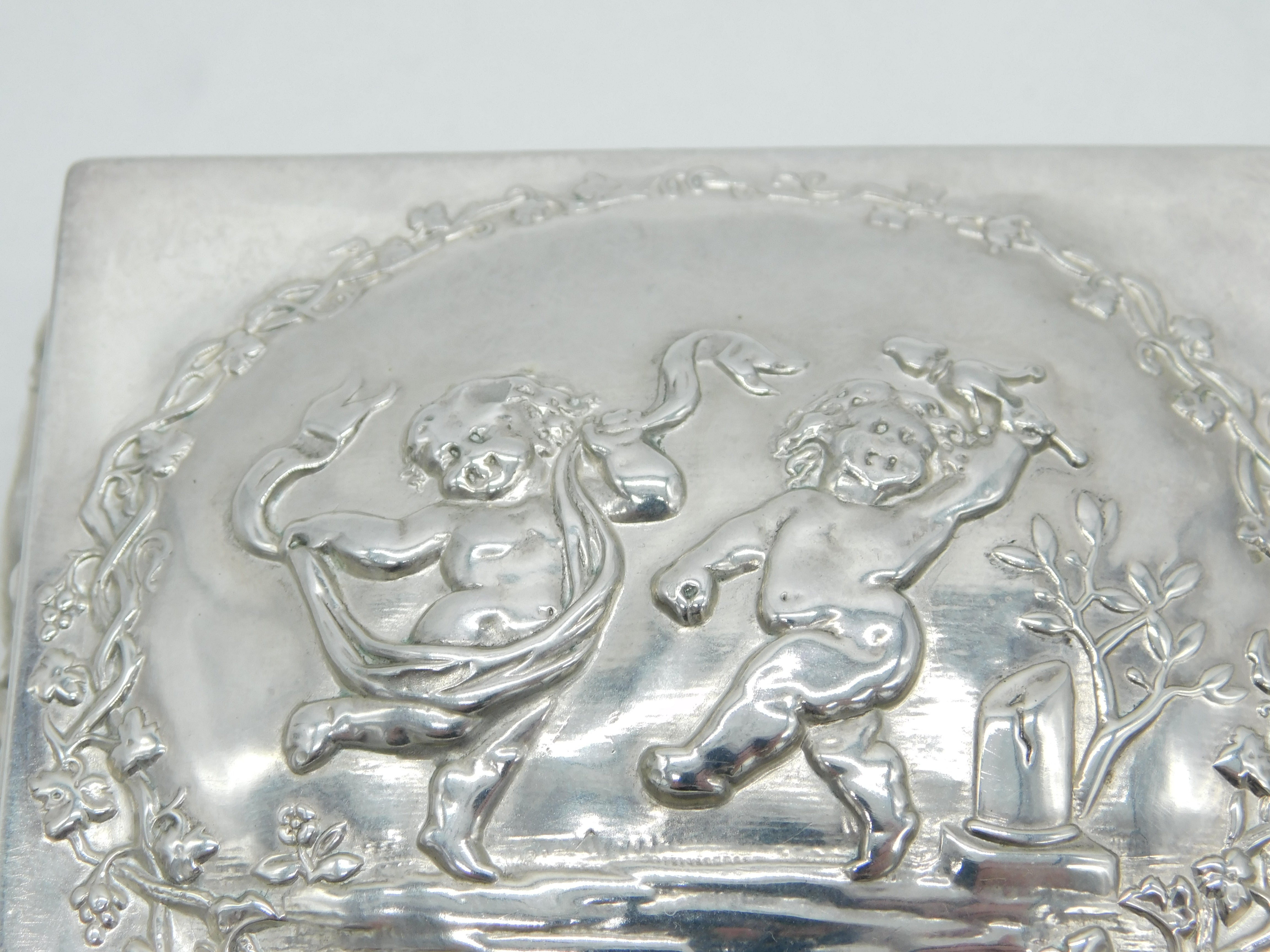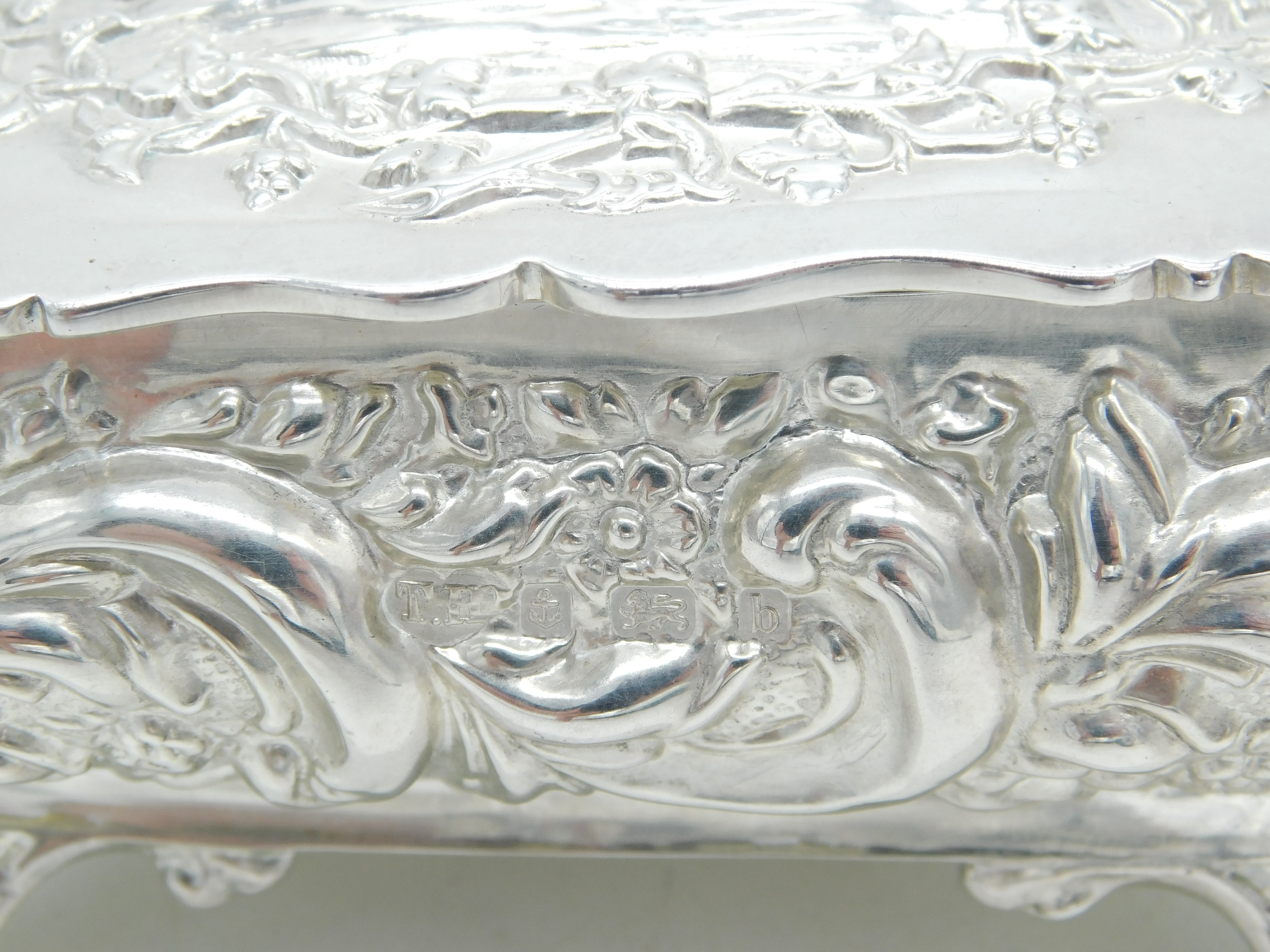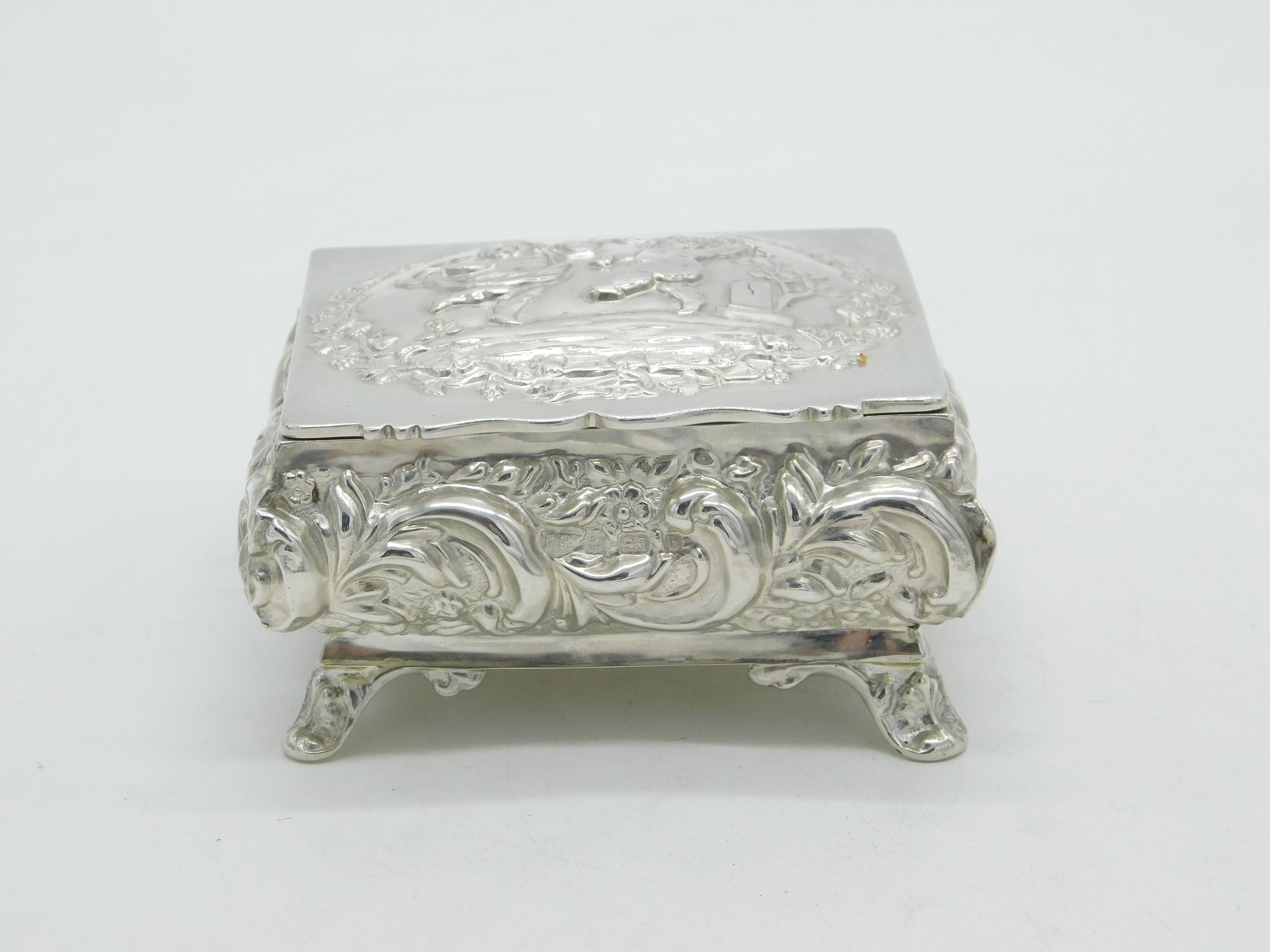 Victorian Sterling Silver Cherub Pattern Jewellery Box Antique 1901 Birmingham