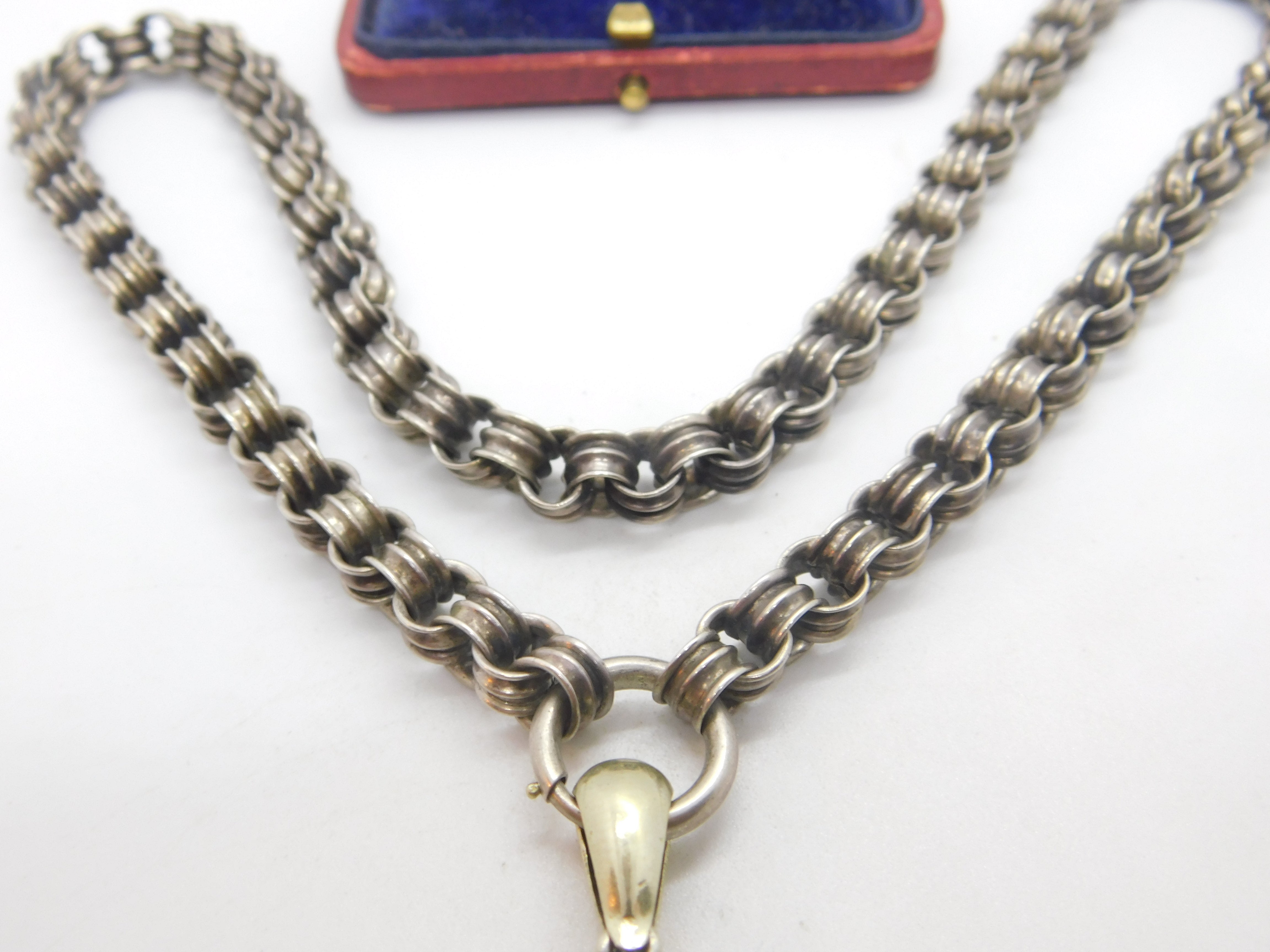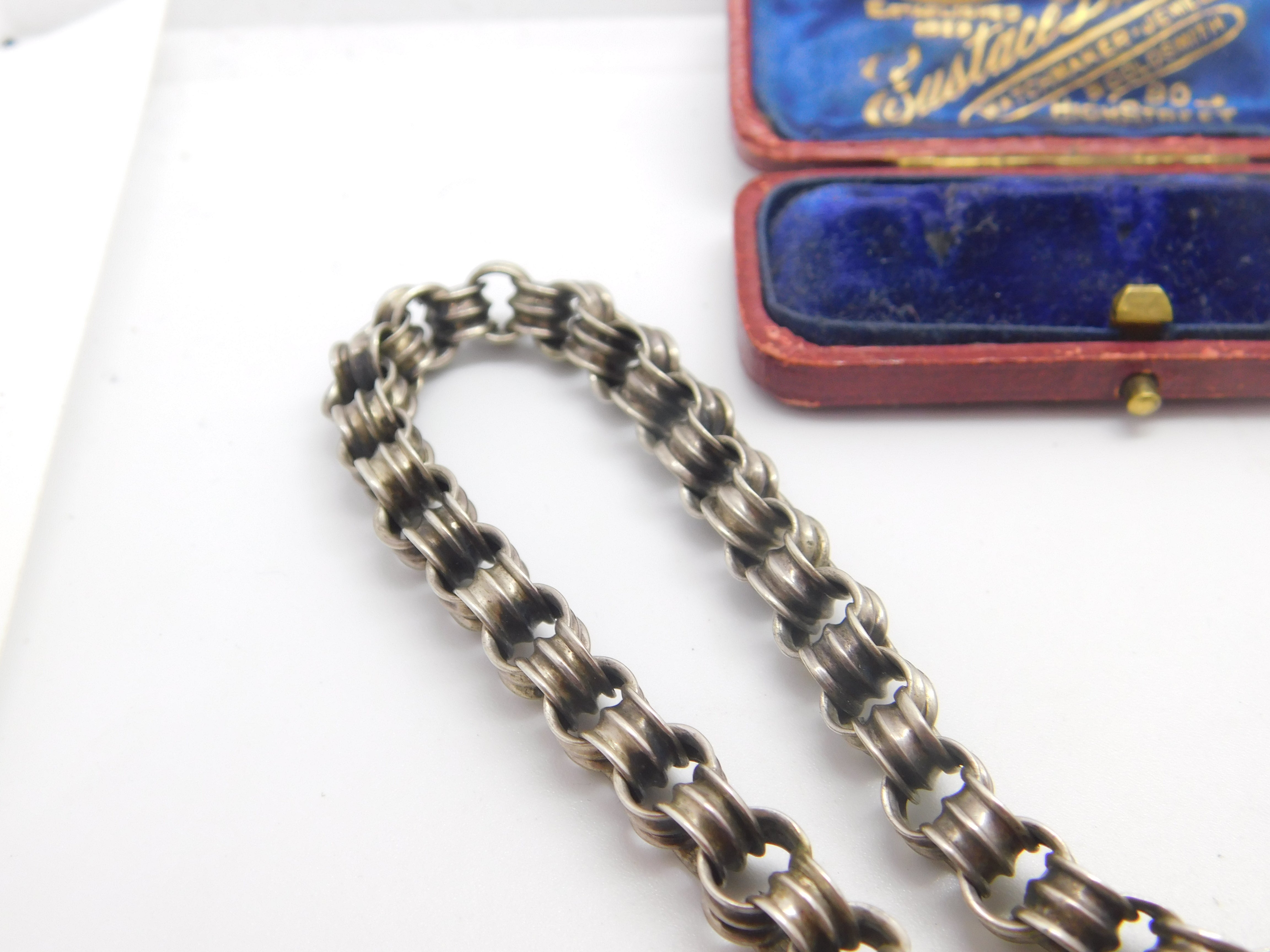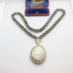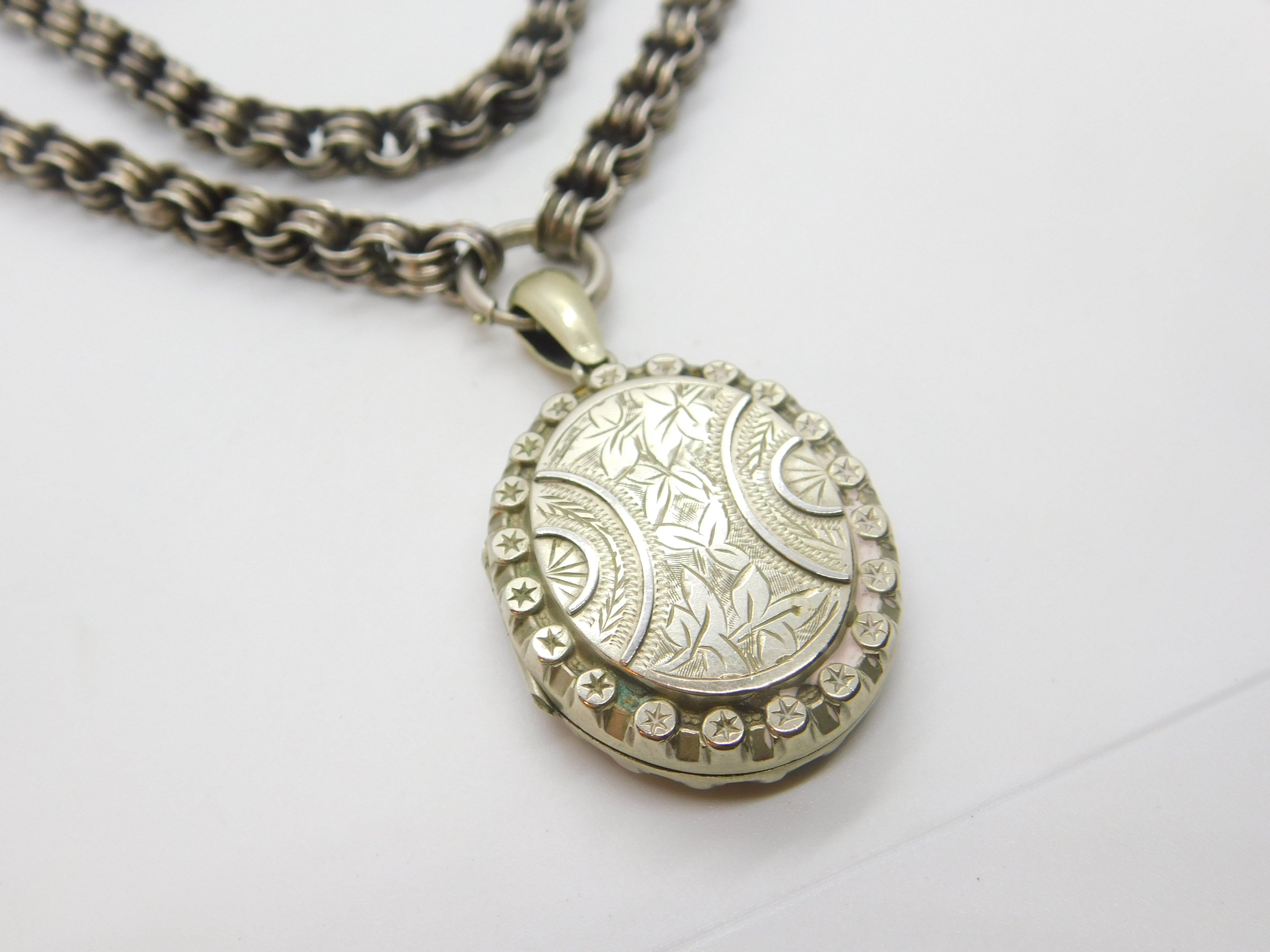 Details: A fantastic and wonderfully designed antique early Victorian sterling silver collar necklace with lovely bolt ring clasp and nice link detailing set with a silver plated aesthetic movement locket pendant c1860. This is a wonderful item that would make a perfect gift or addition to any collection. The BOX pictured is for PRESENTATION ONLY and is NOT included in the listings but used to frame the pictures unless specifically stated otherwise.