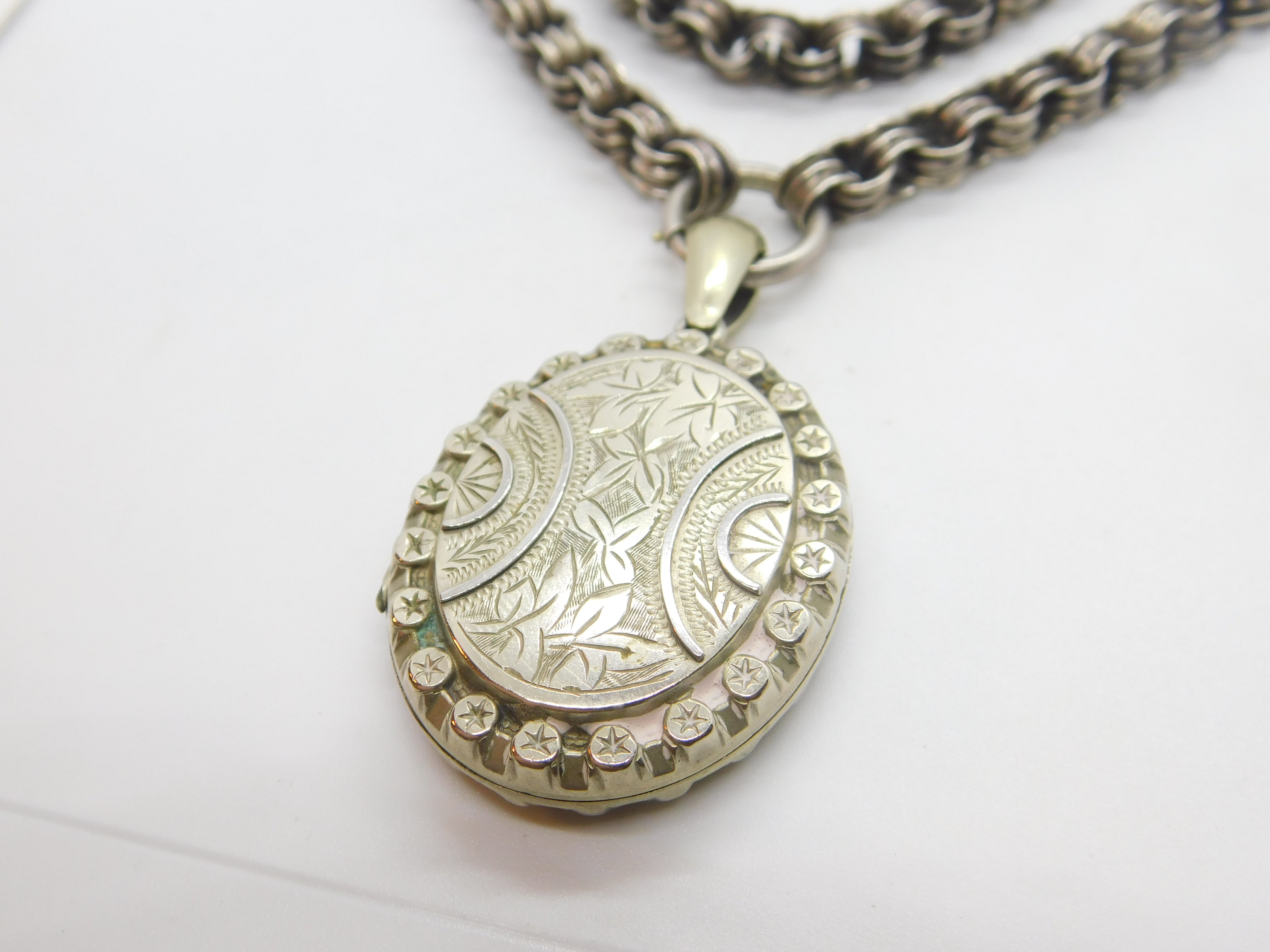 Victorian Sterling Silver Collar Locket Necklace Aesthetic Movement c1860