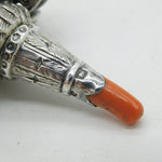 Victorian Sterling Silver & Coral Baby Rattle, Teether, Whistle Antique 1880