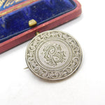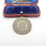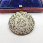 Victorian Sterling Silver CR Monogram Florin Coin Love Token Brooch c1860