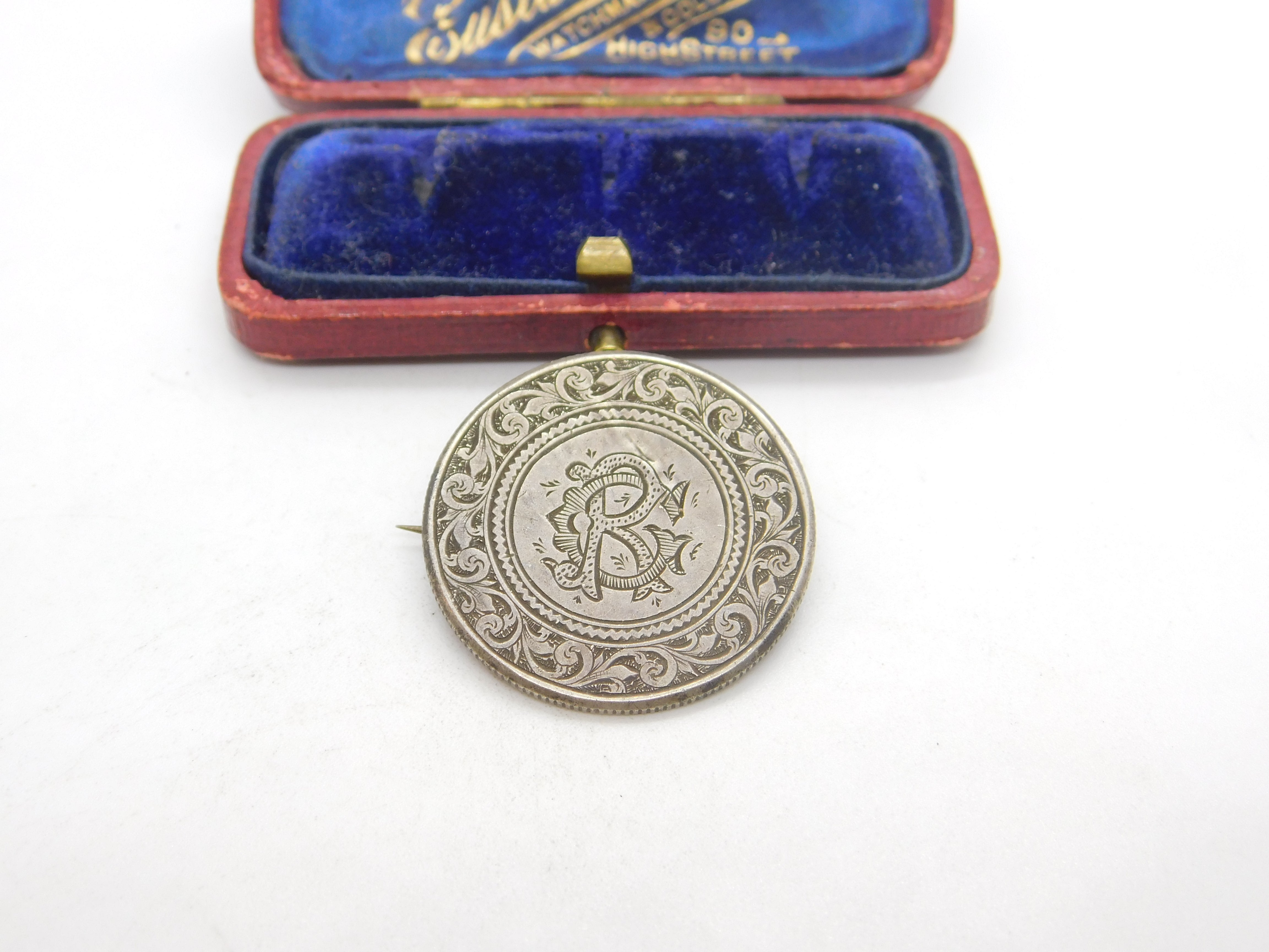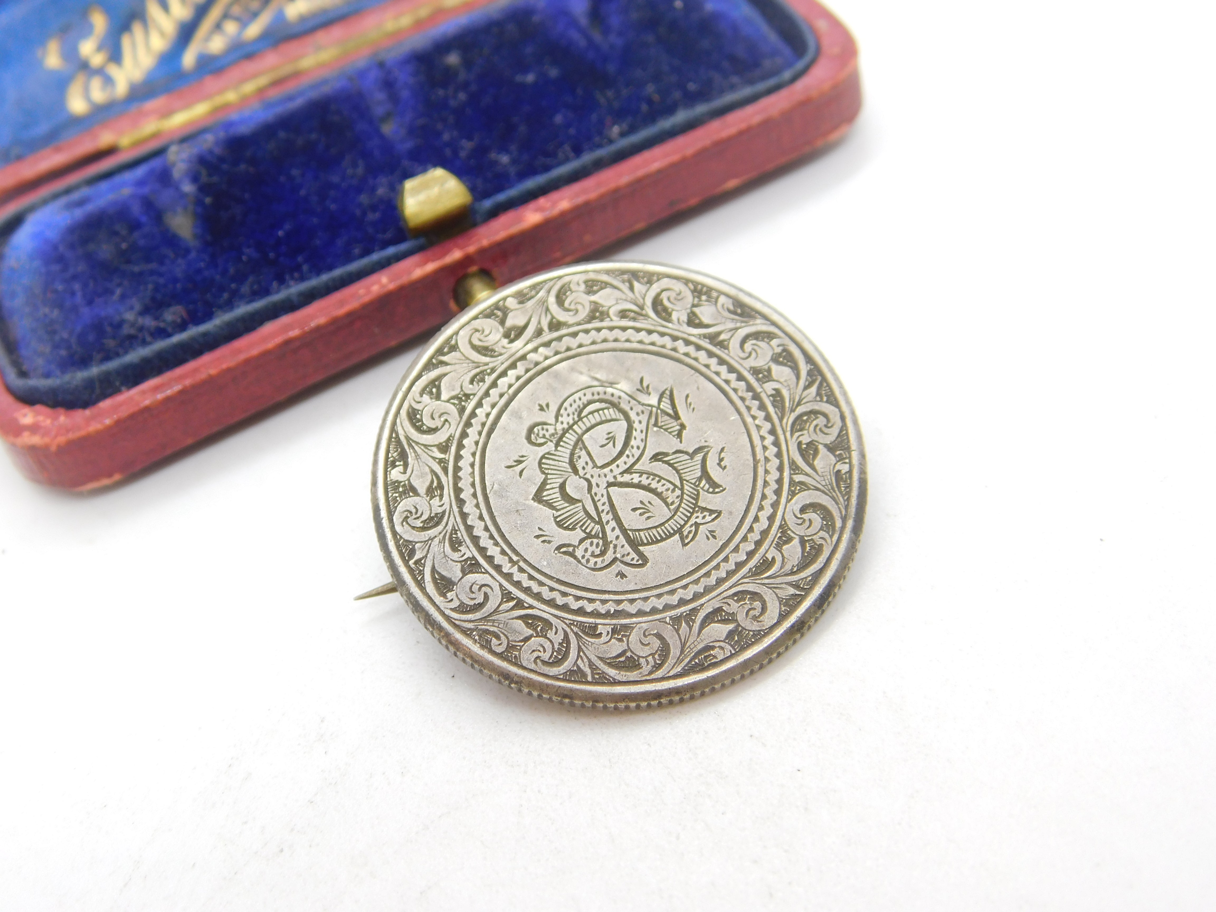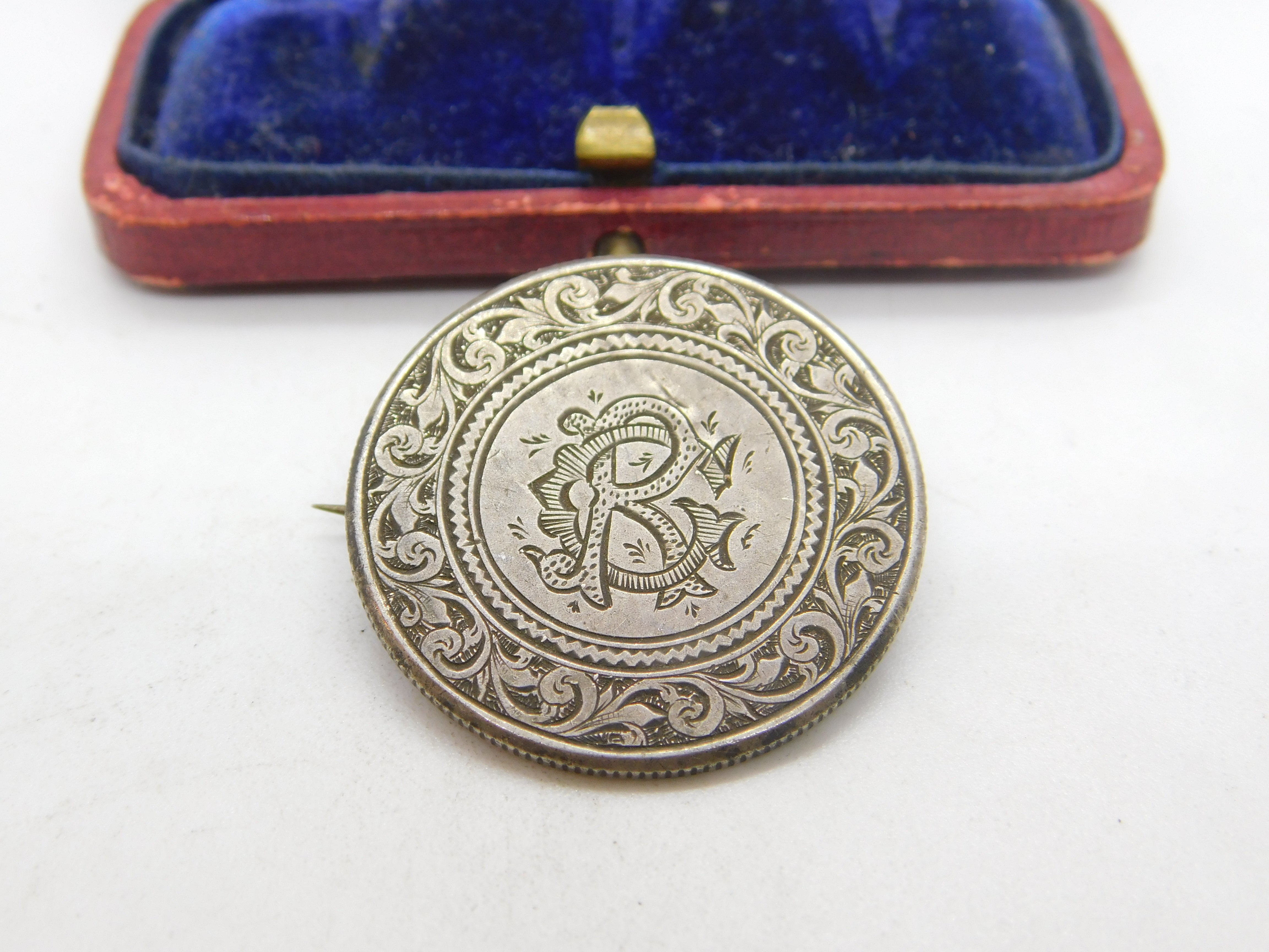 Details: A fantastic and wonderfully designed antique Victorian sterling silver monogram CR love token sweetheart brooch crafted from a Queen Victoria florin dated c1860. This is a wonderful item that would make a perfect gift or addition to any collection. The BOX pictured is for PRESENTATION ONLY and is NOT included in the listings but used to frame the pictures unless specifically stated otherwise.