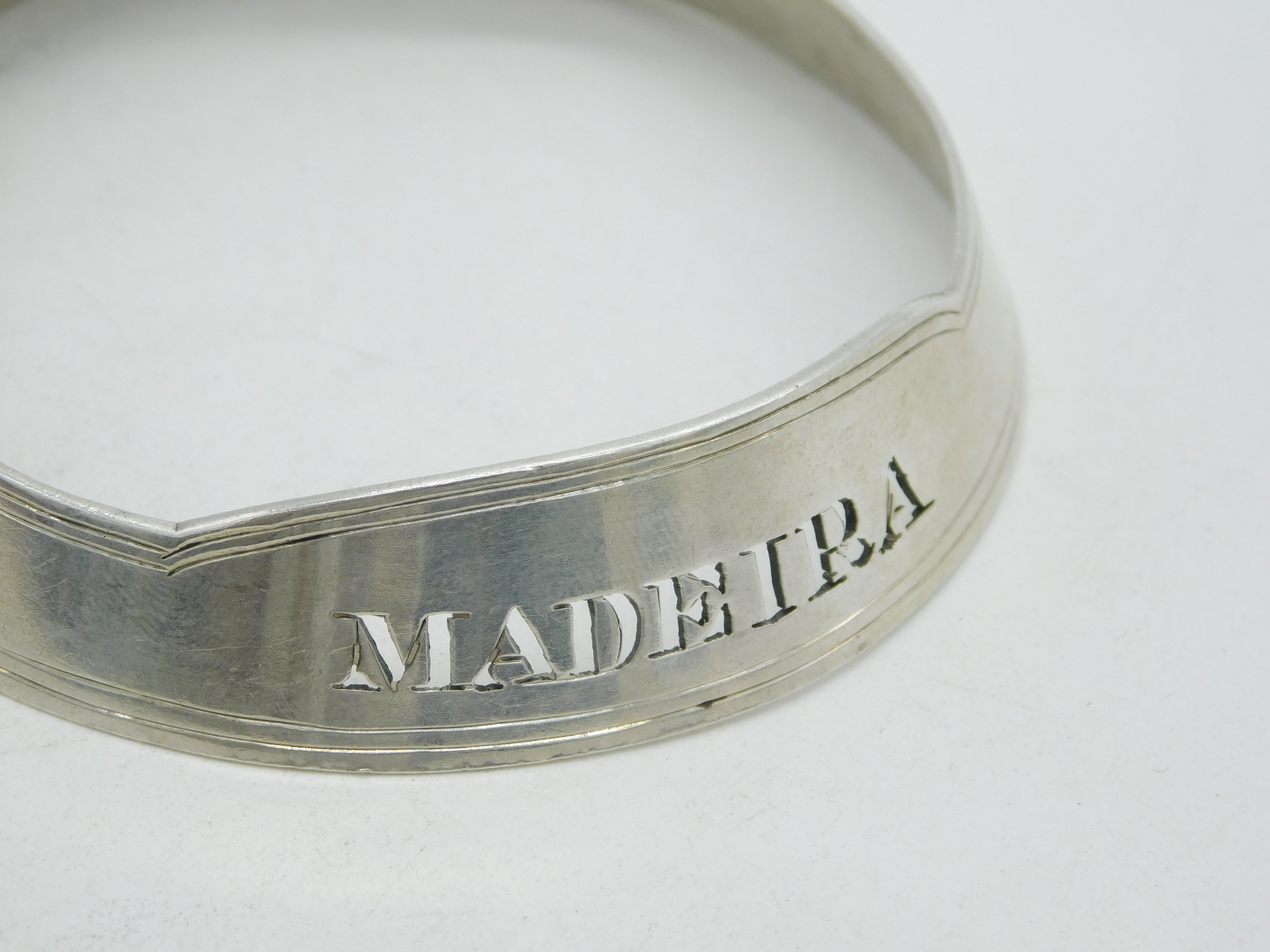 Victorian Sterling Silver Crested Madeira Bottle Collar Antique 1866 London