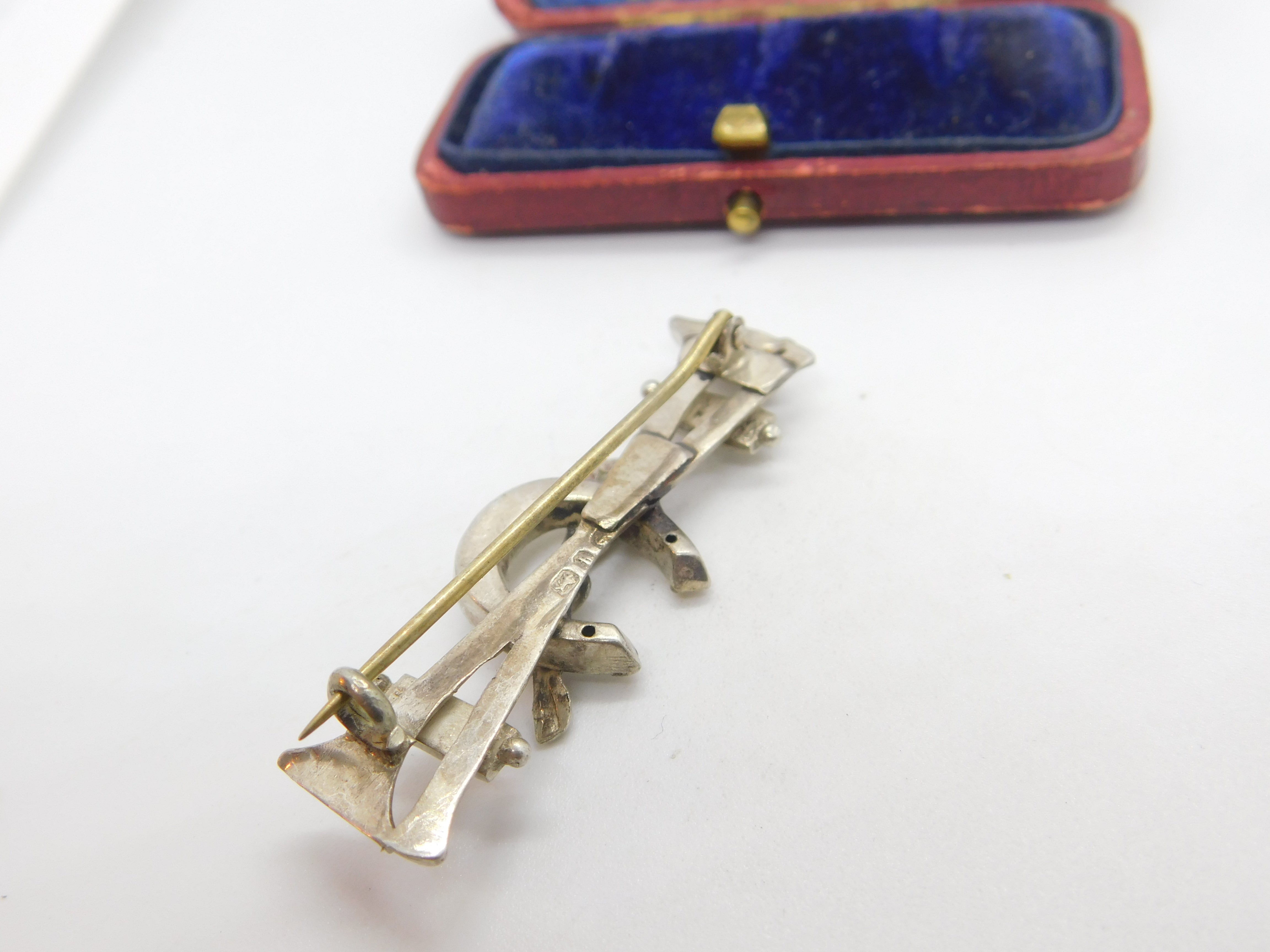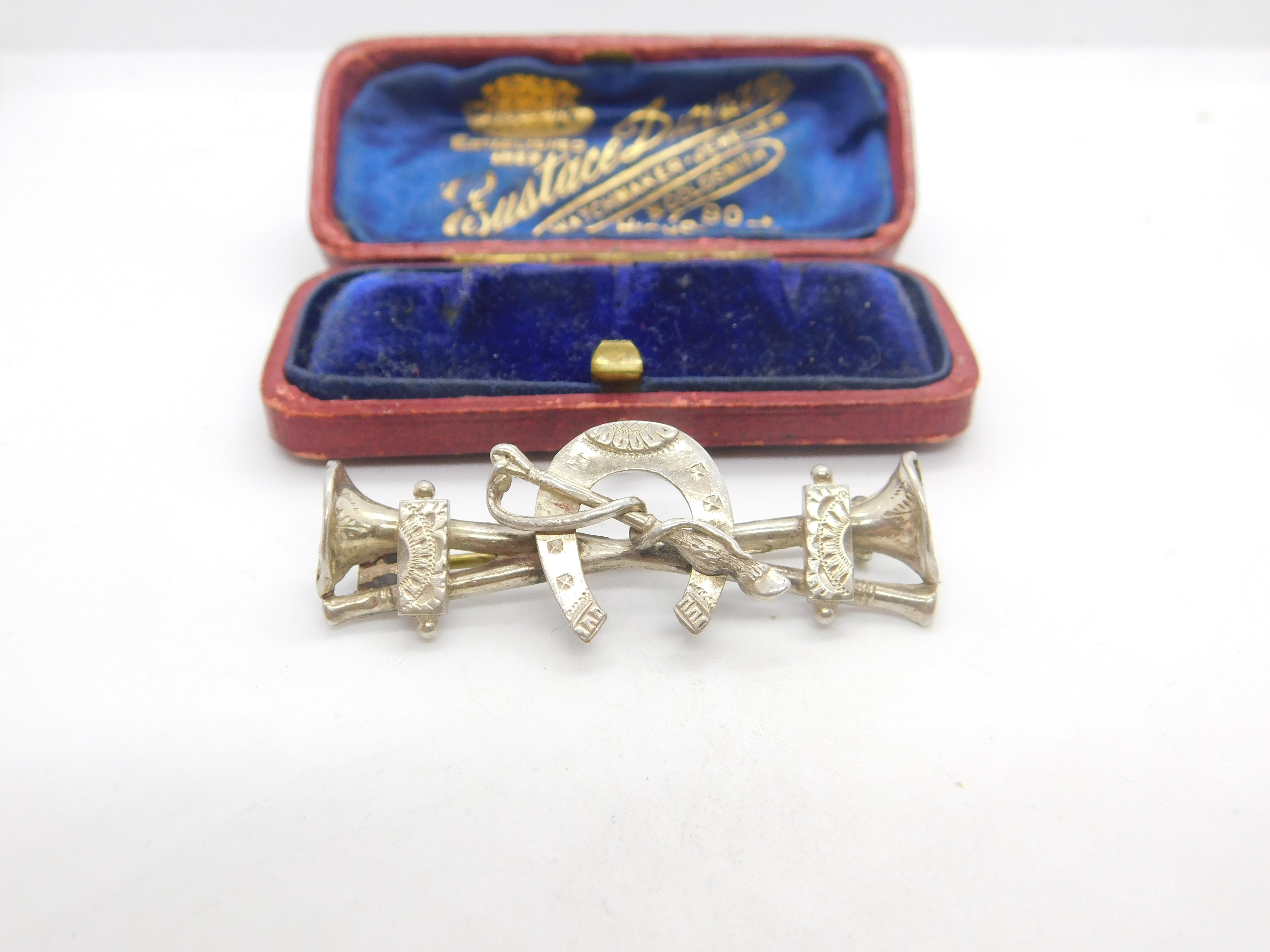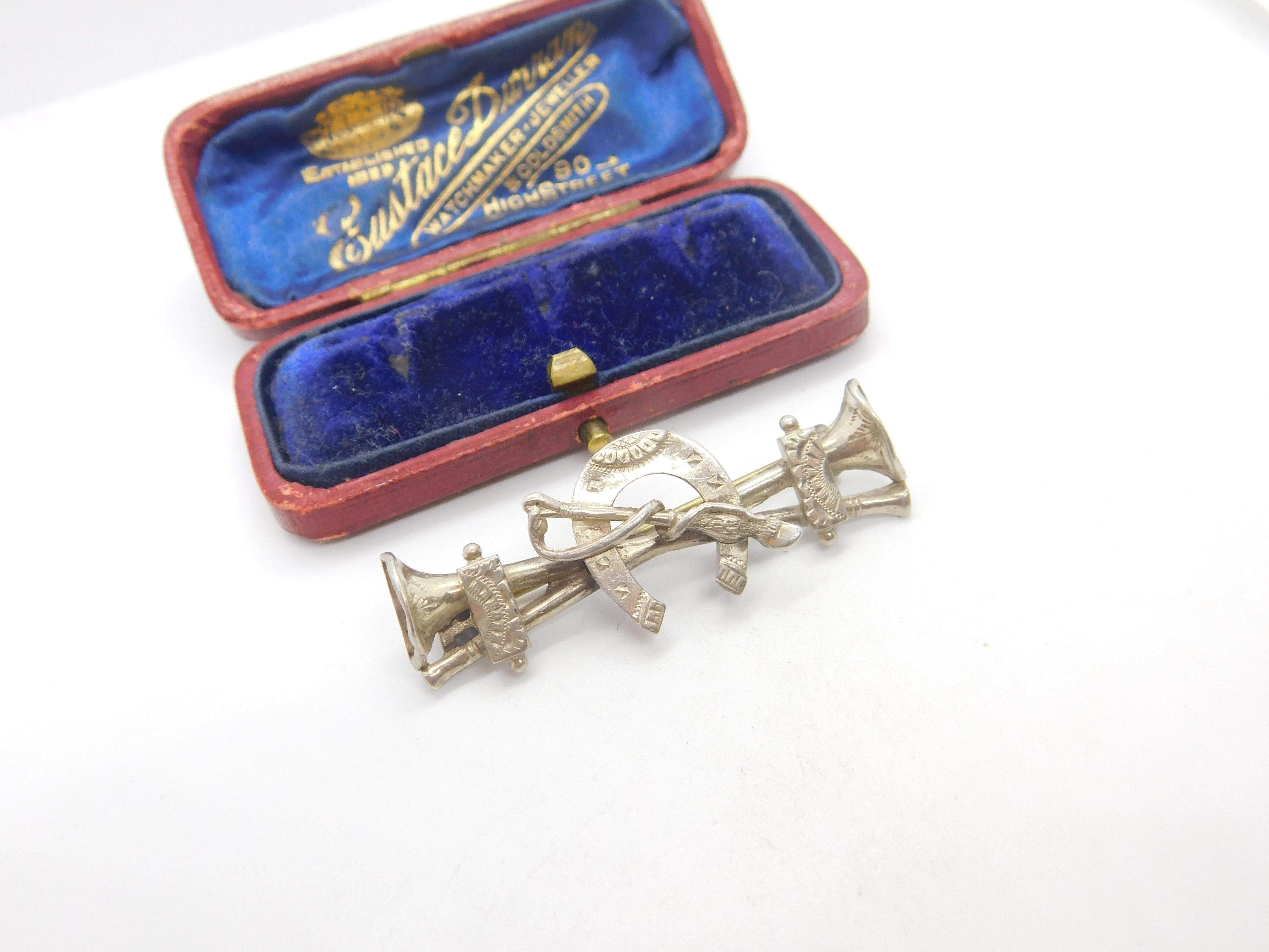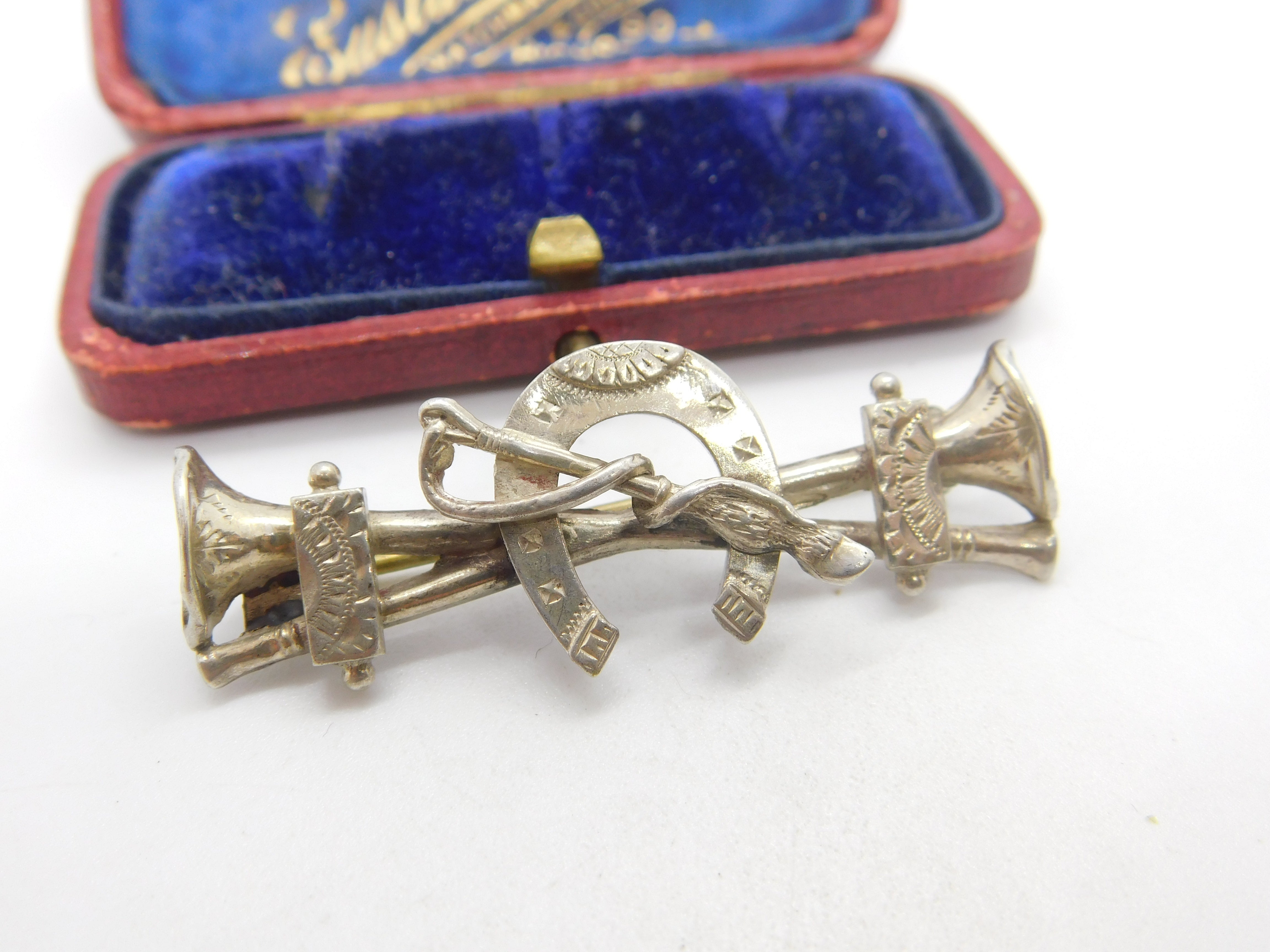 Victorian Sterling Silver Crop, Horn & Horseshoe Brooch 1890 Birmingham