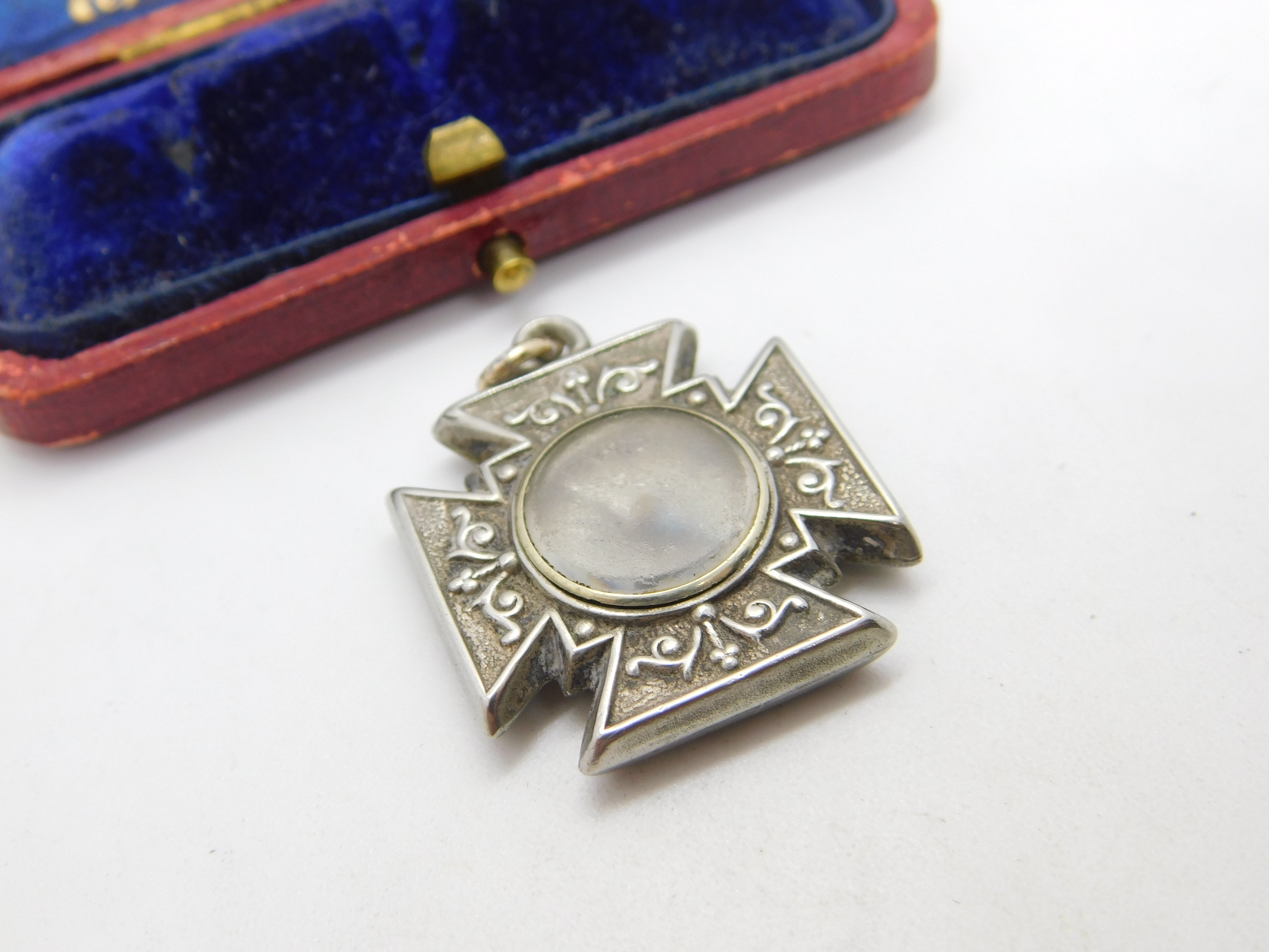 Victorian Sterling Silver Cross Form Compass Fob Pendant c1880 Antique