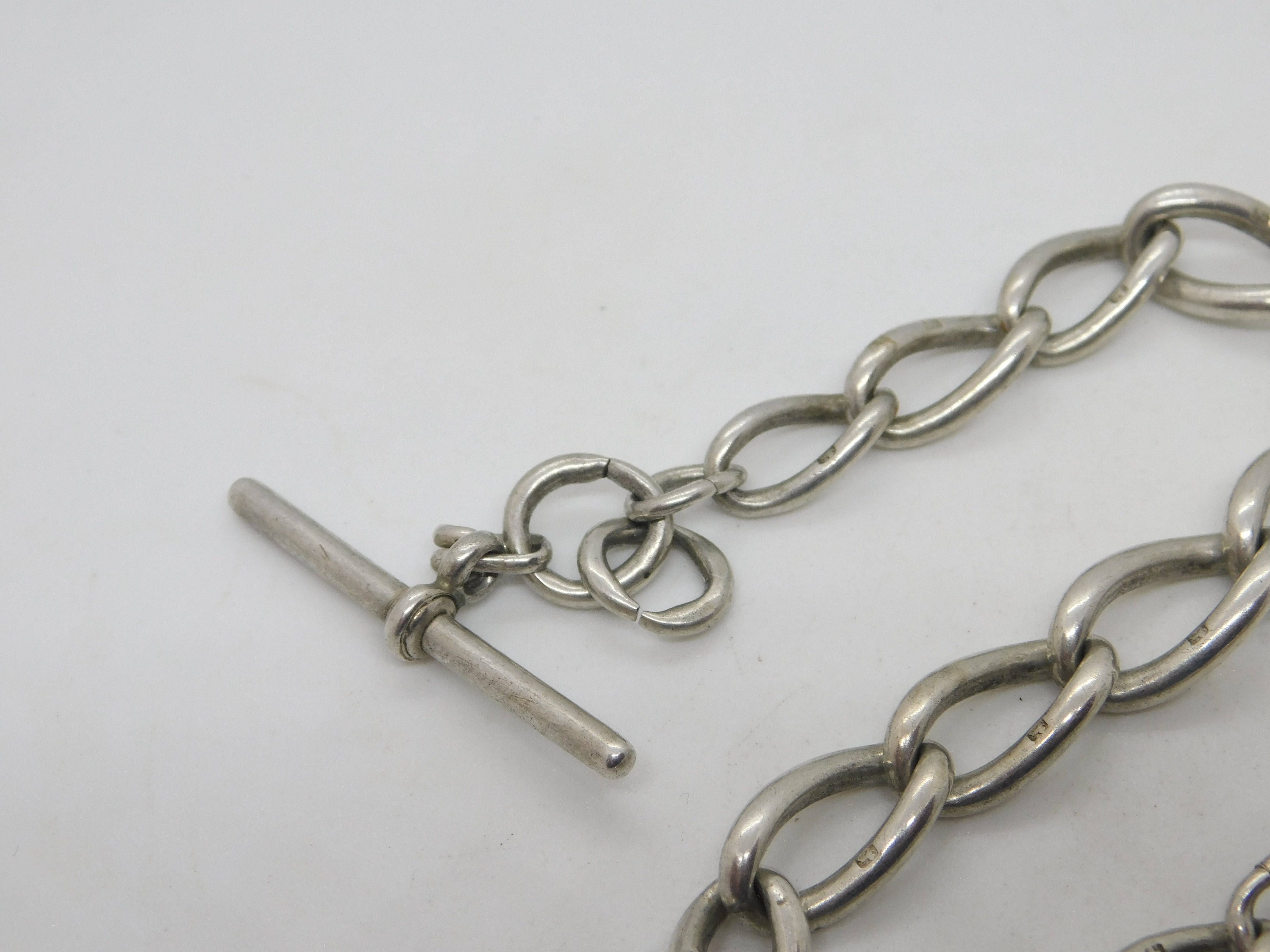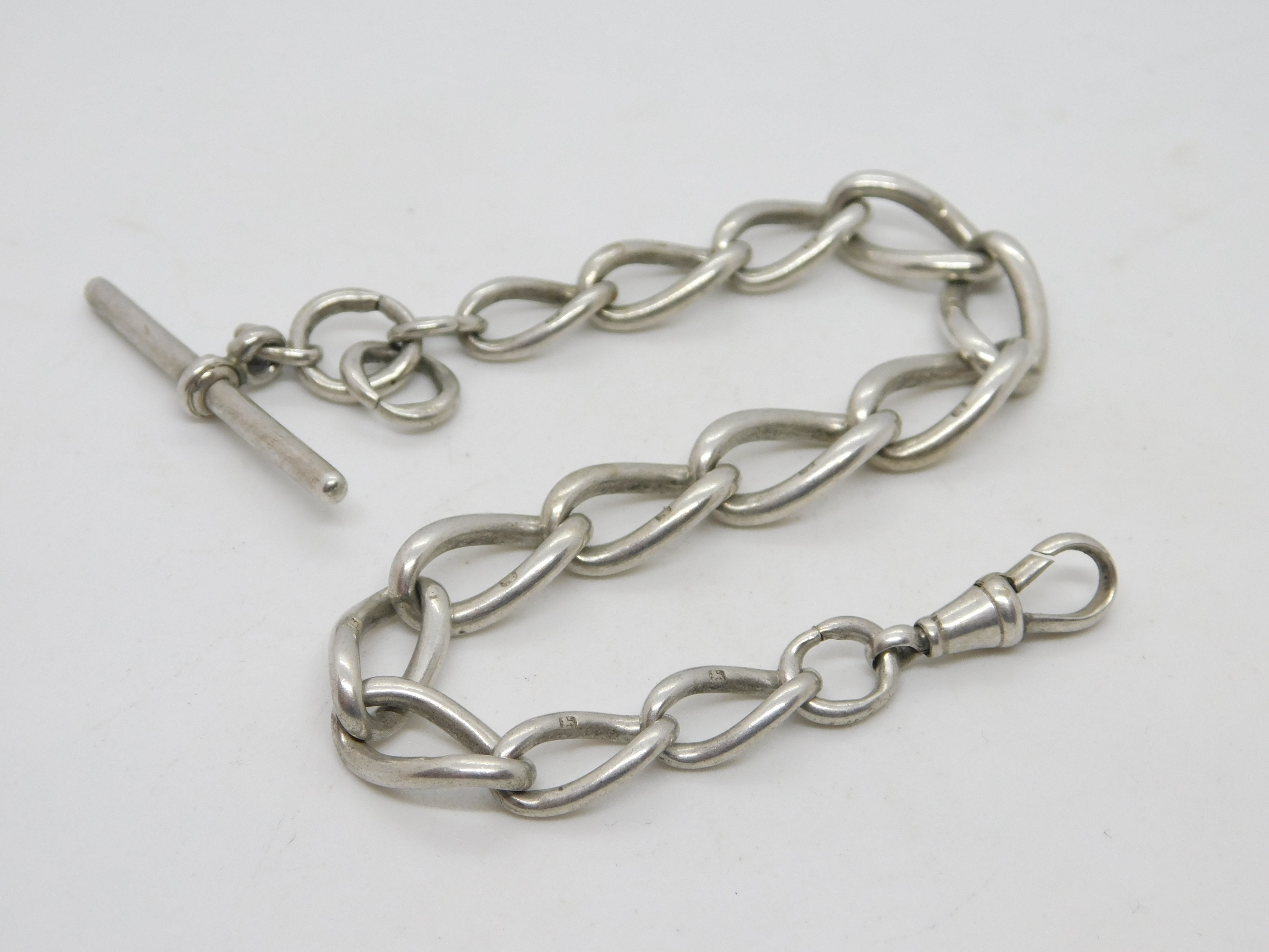 Victorian Sterling Silver Curb Link Albert Watch Chain Antique c1890