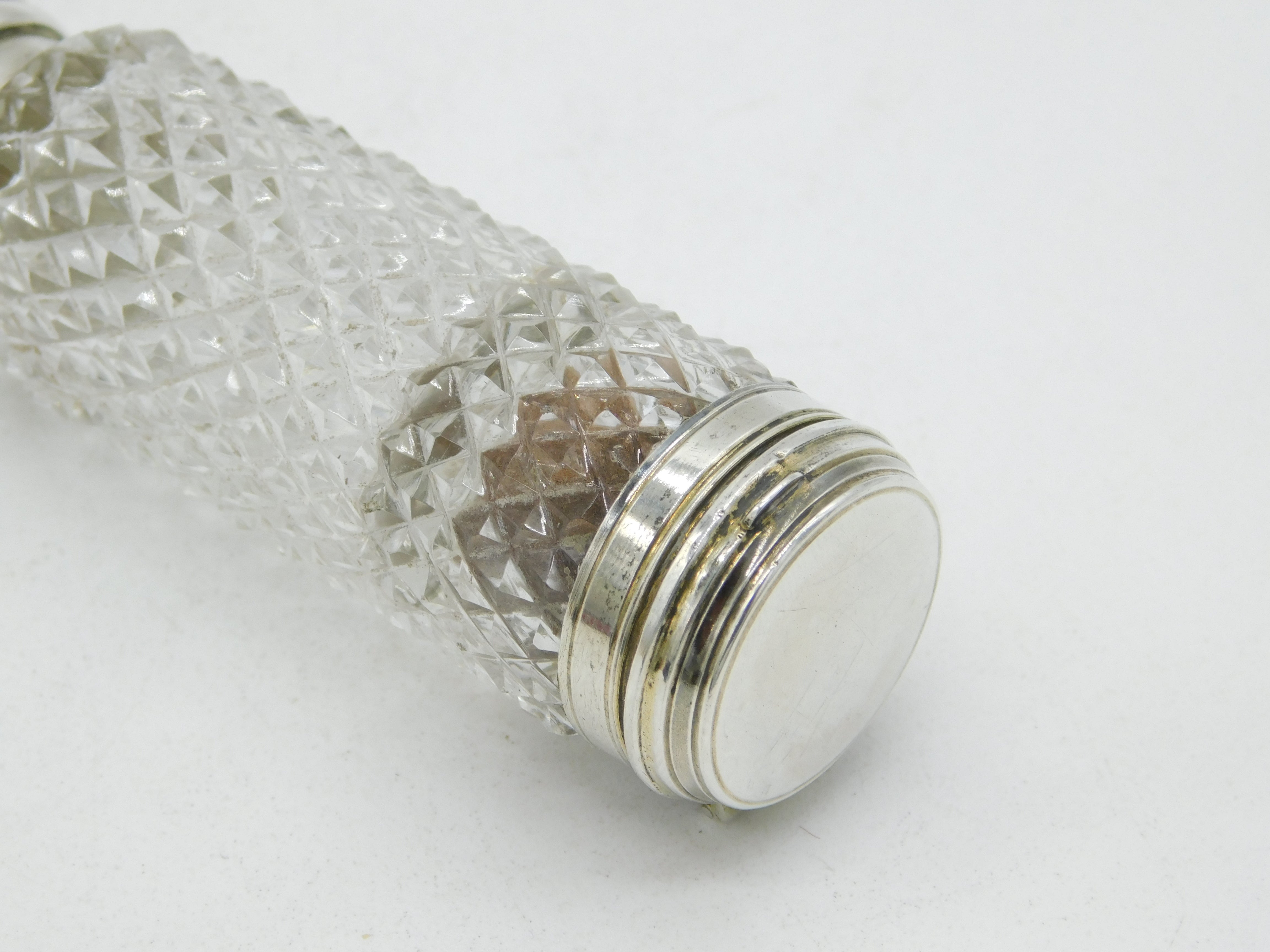 Victorian Sterling Silver Cut Glass Double-Ended Vinaigrette Scent Bottle c1860