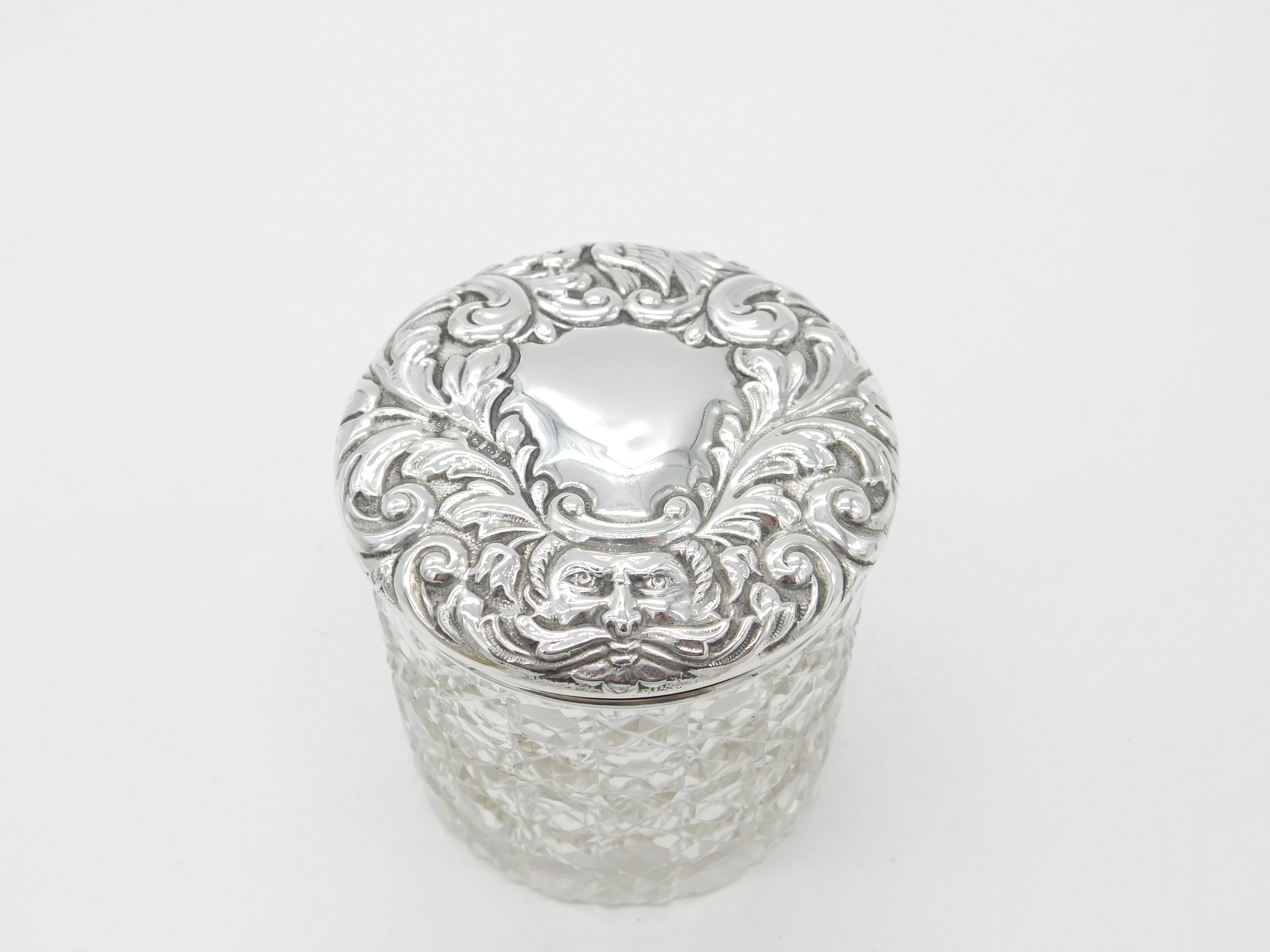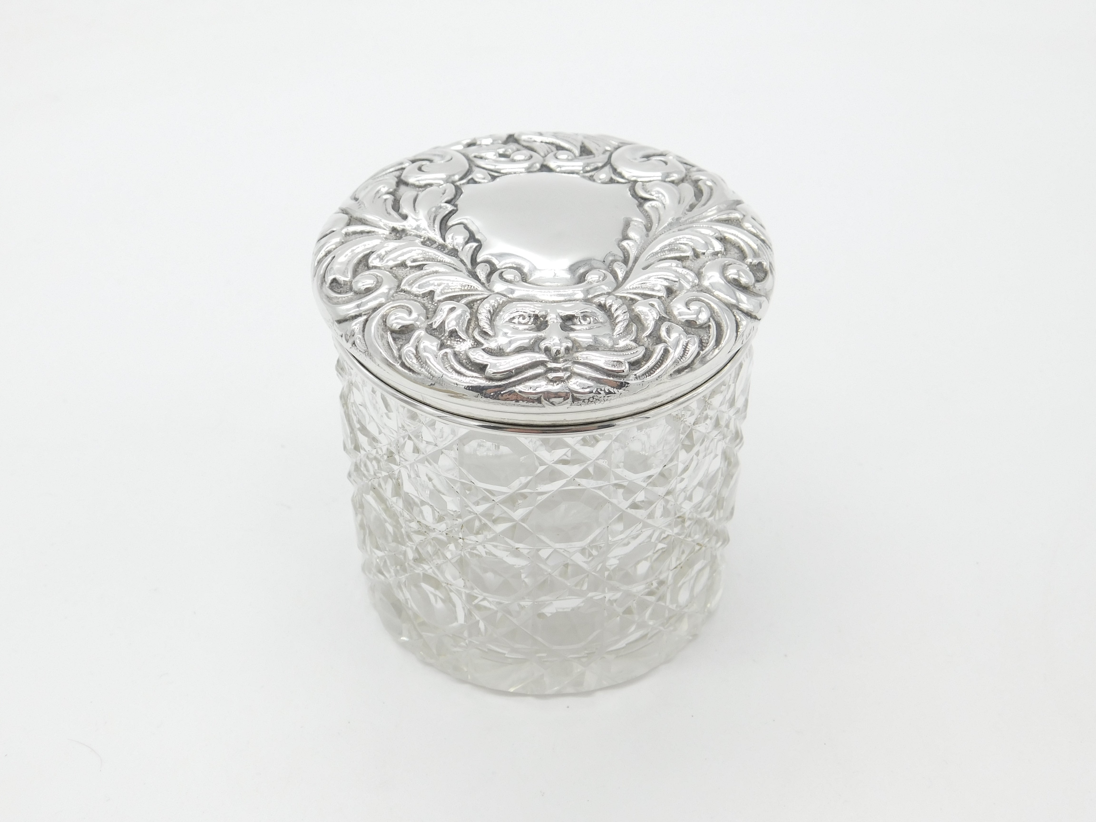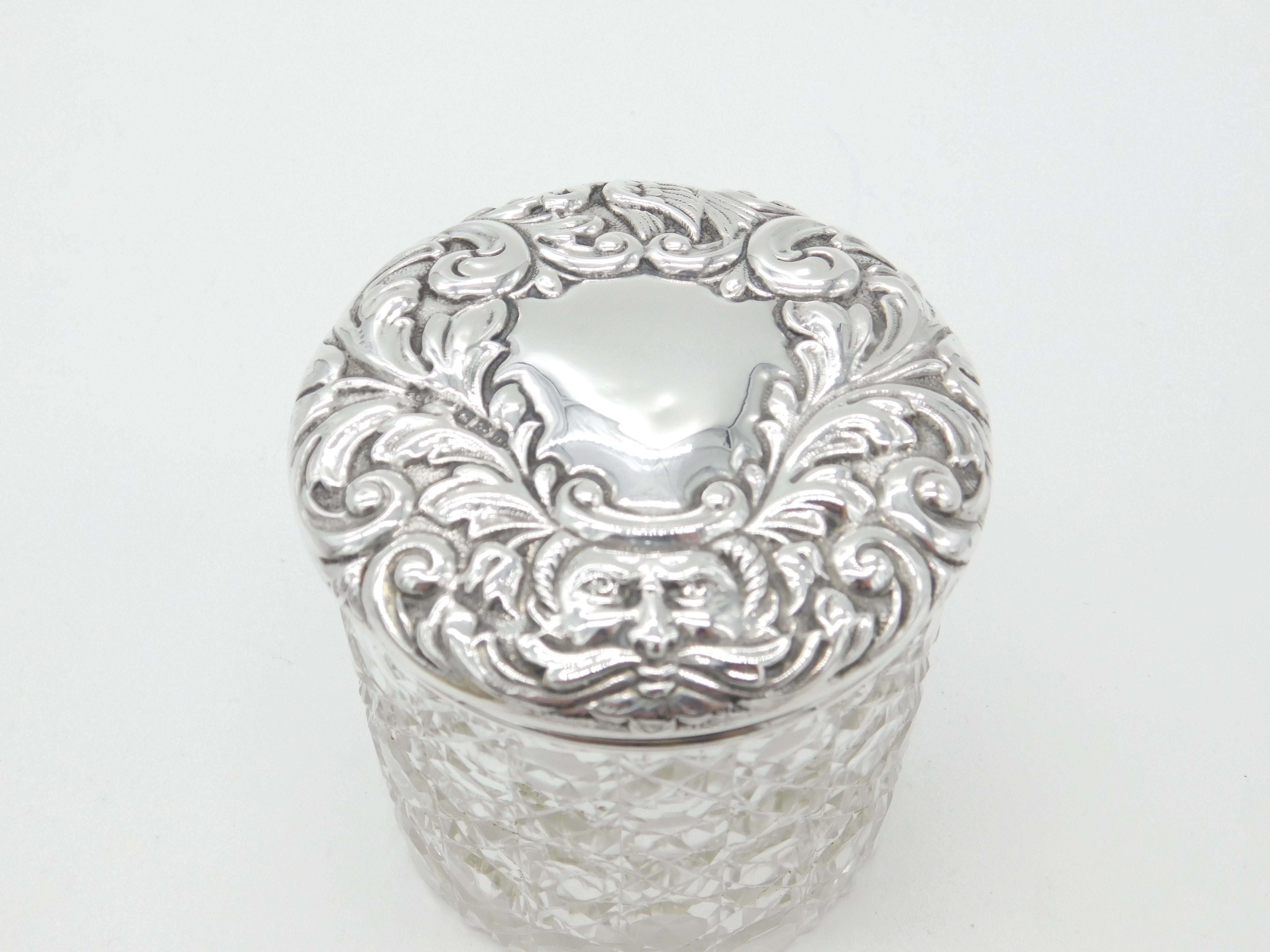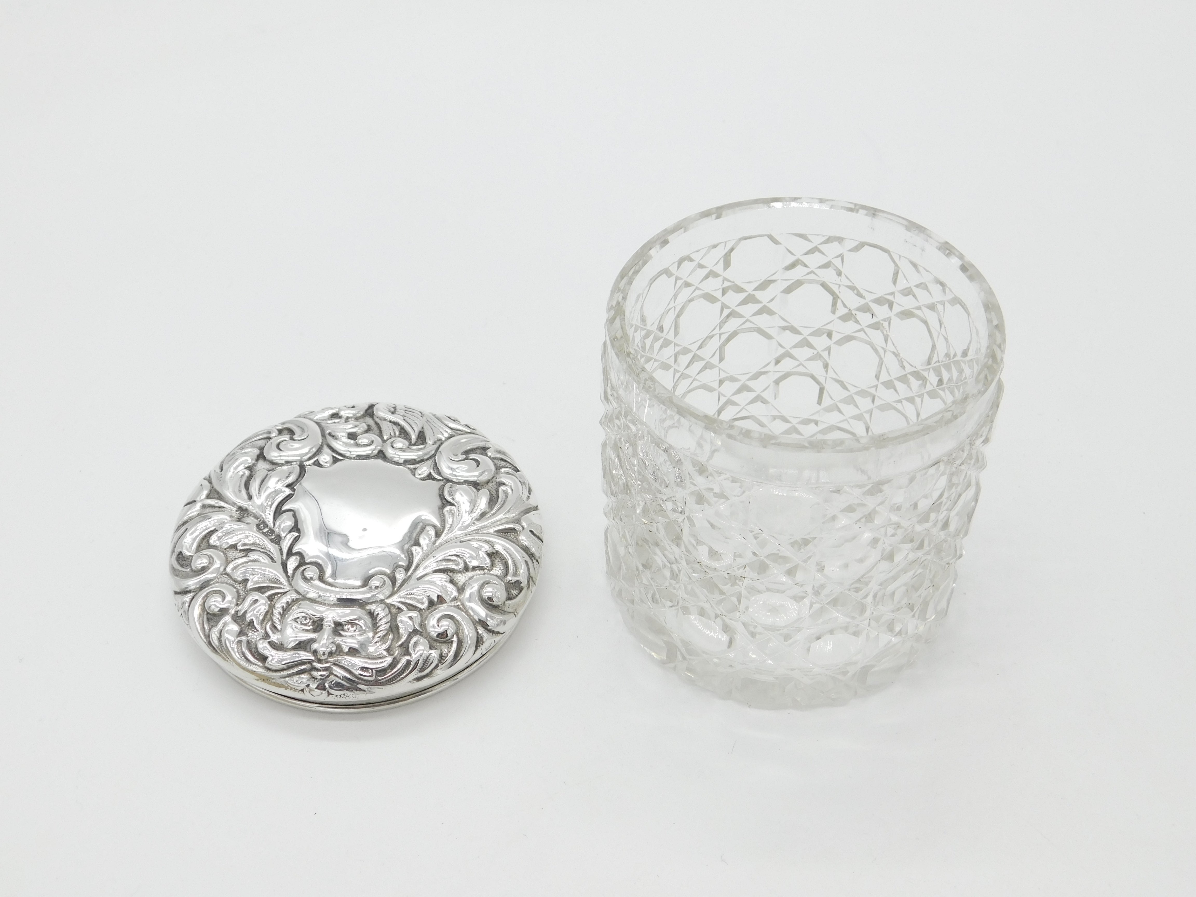 Victorian Sterling Silver & Cut Glass Dressing Table Jar 1899 Chester Antique