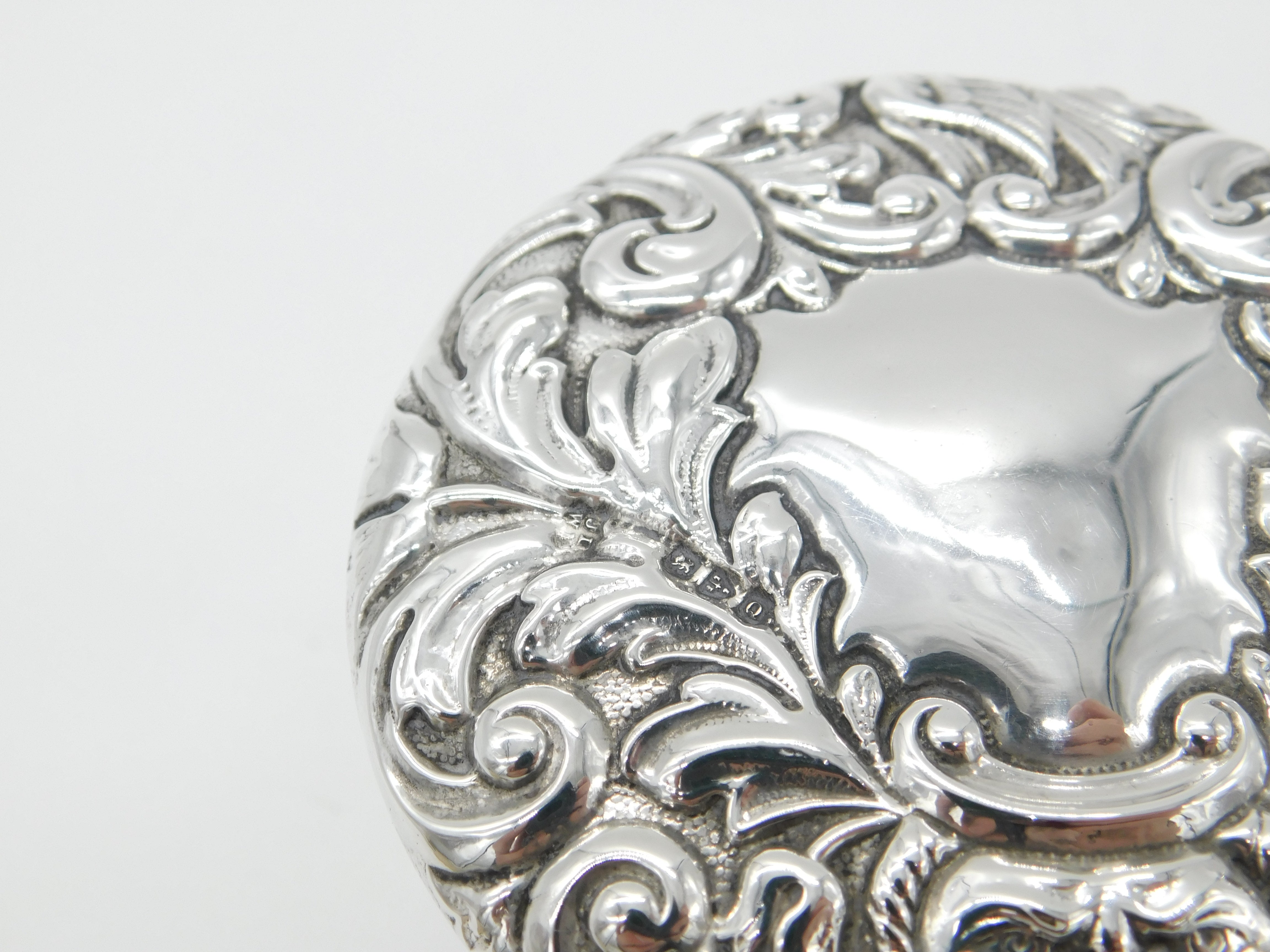 Details: A fantastic and wonderfully designed antique Victorian sterling silver & cut glass trinket pot or dressing table pot with lovely detailing hallmarked Chester 1899 to the top. This is a wonderful item that would make a perfect gift or addition to any collection. The BOX pictured is for PRESENTATION ONLY and is NOT included in the listings but used to frame the pictures unless specifically stated otherwise.