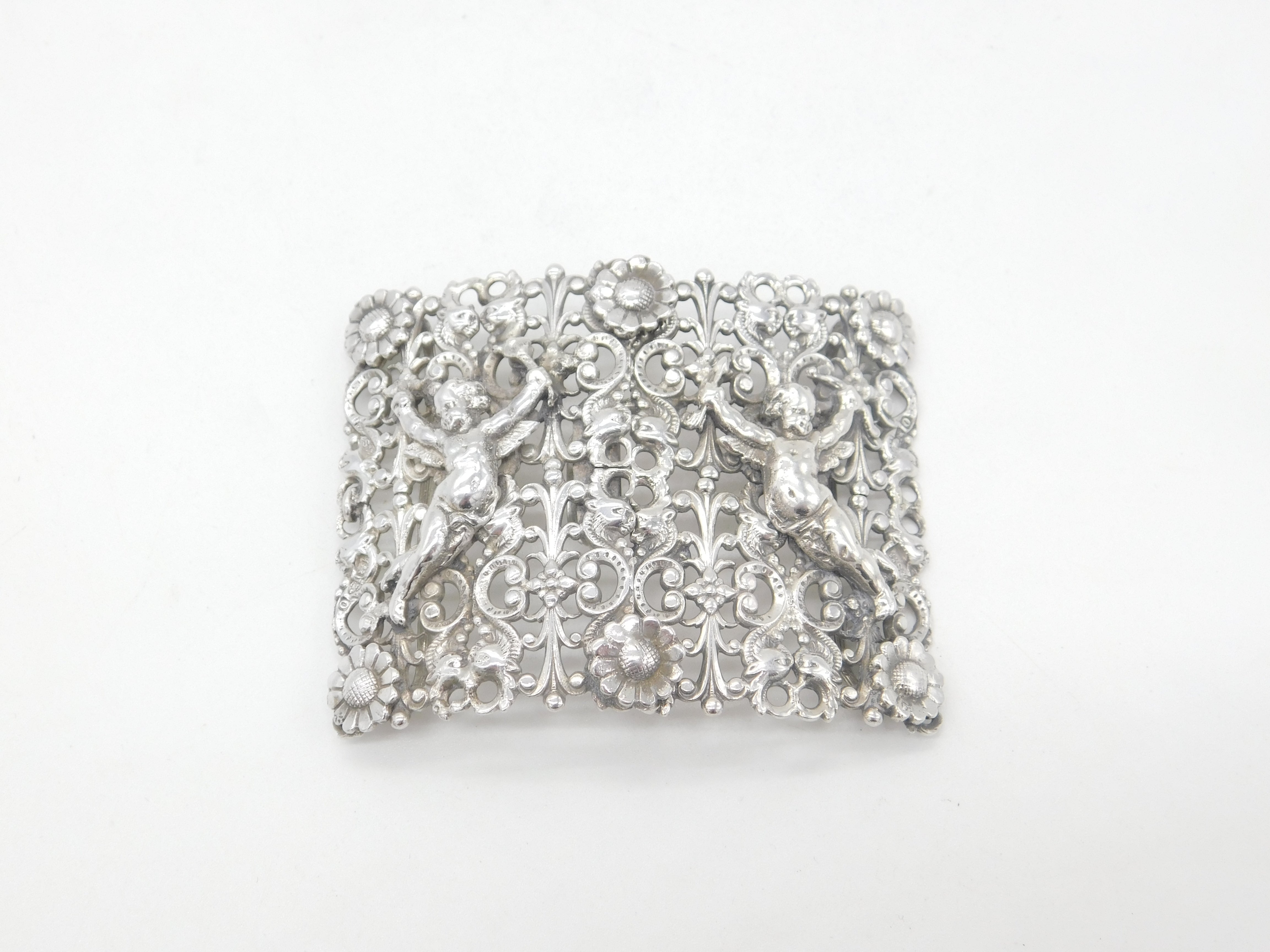 Victorian Sterling Silver Daisy Flower & Cherub Nurses Buckle 1897 Chester