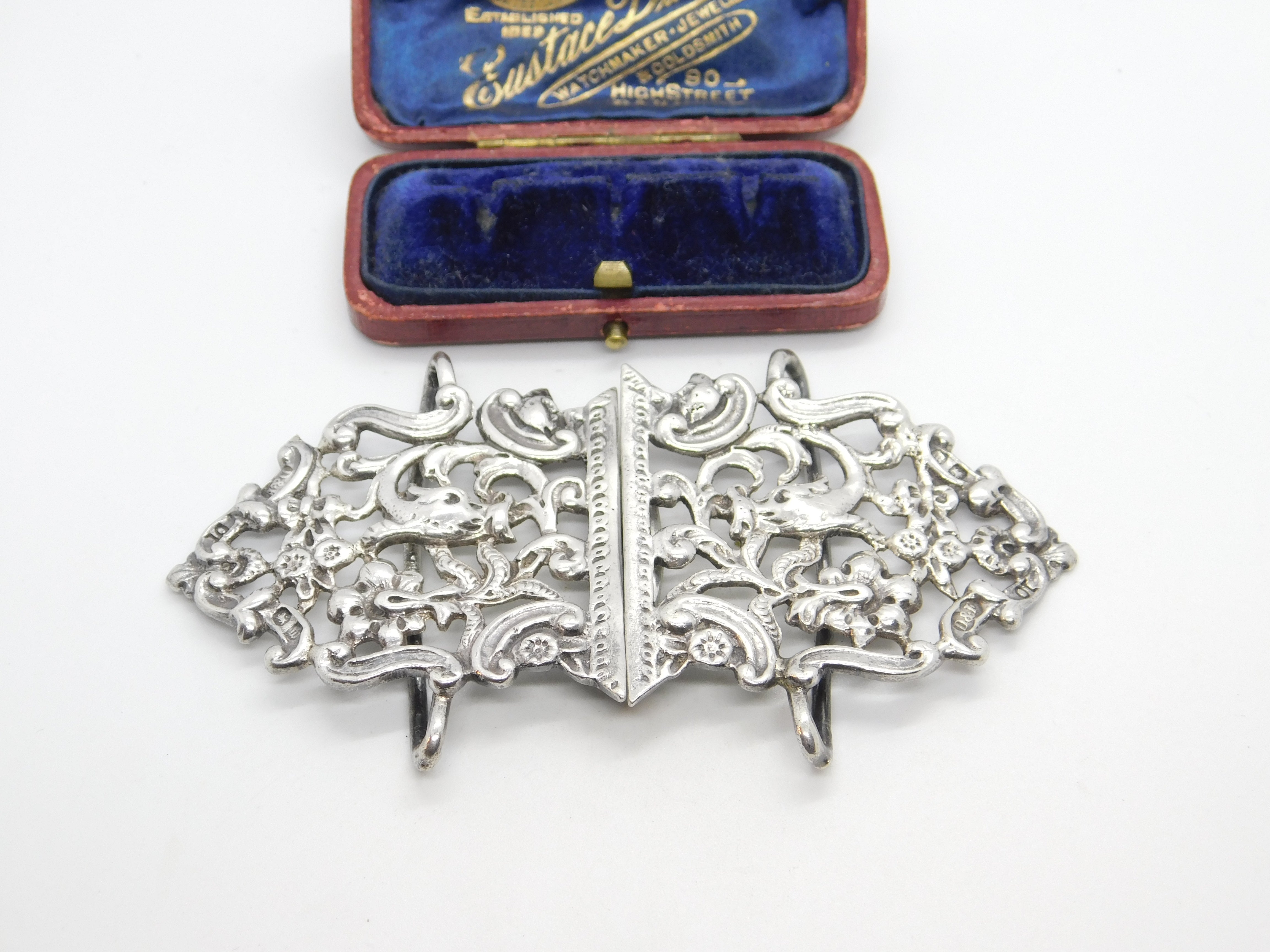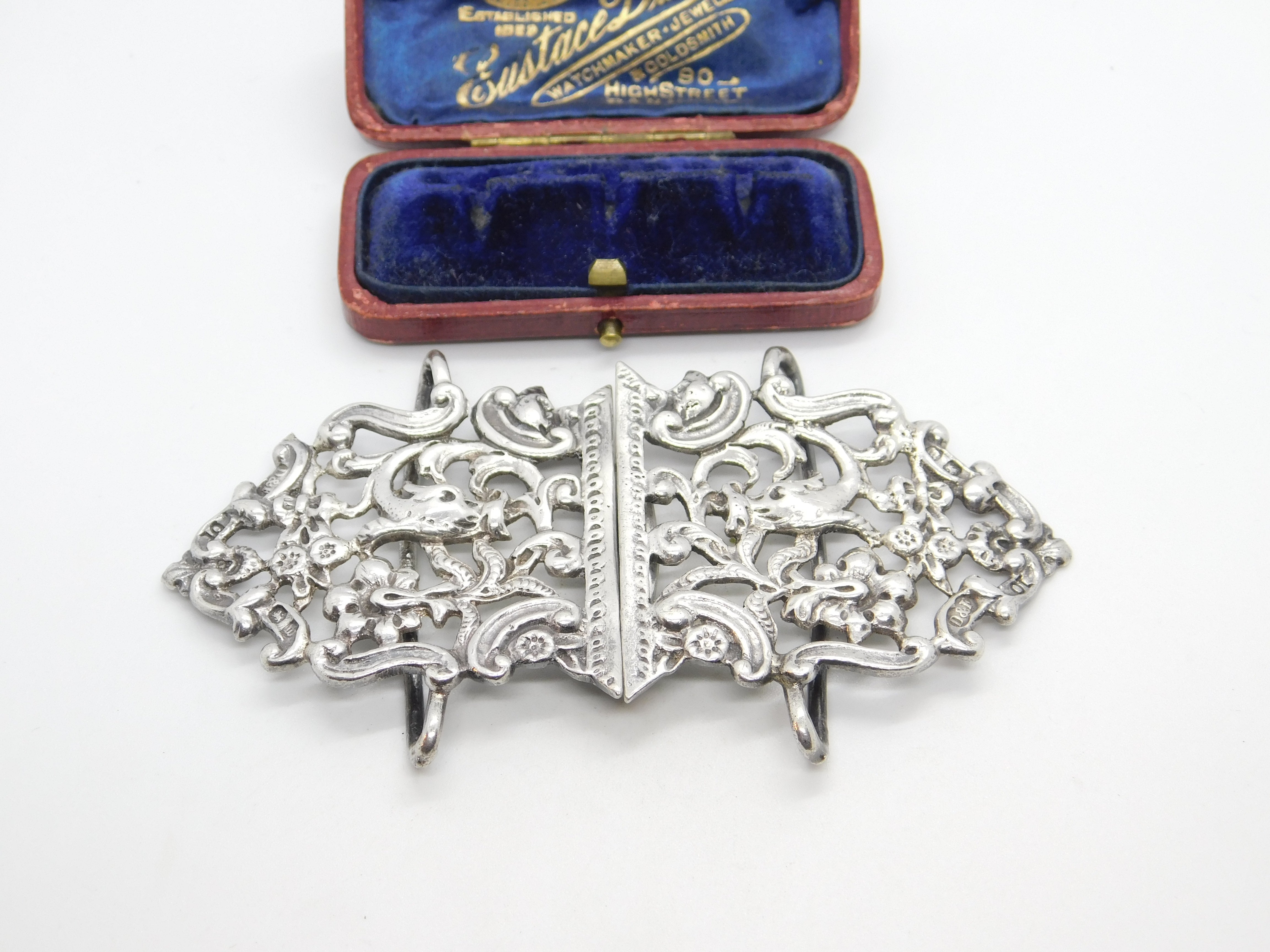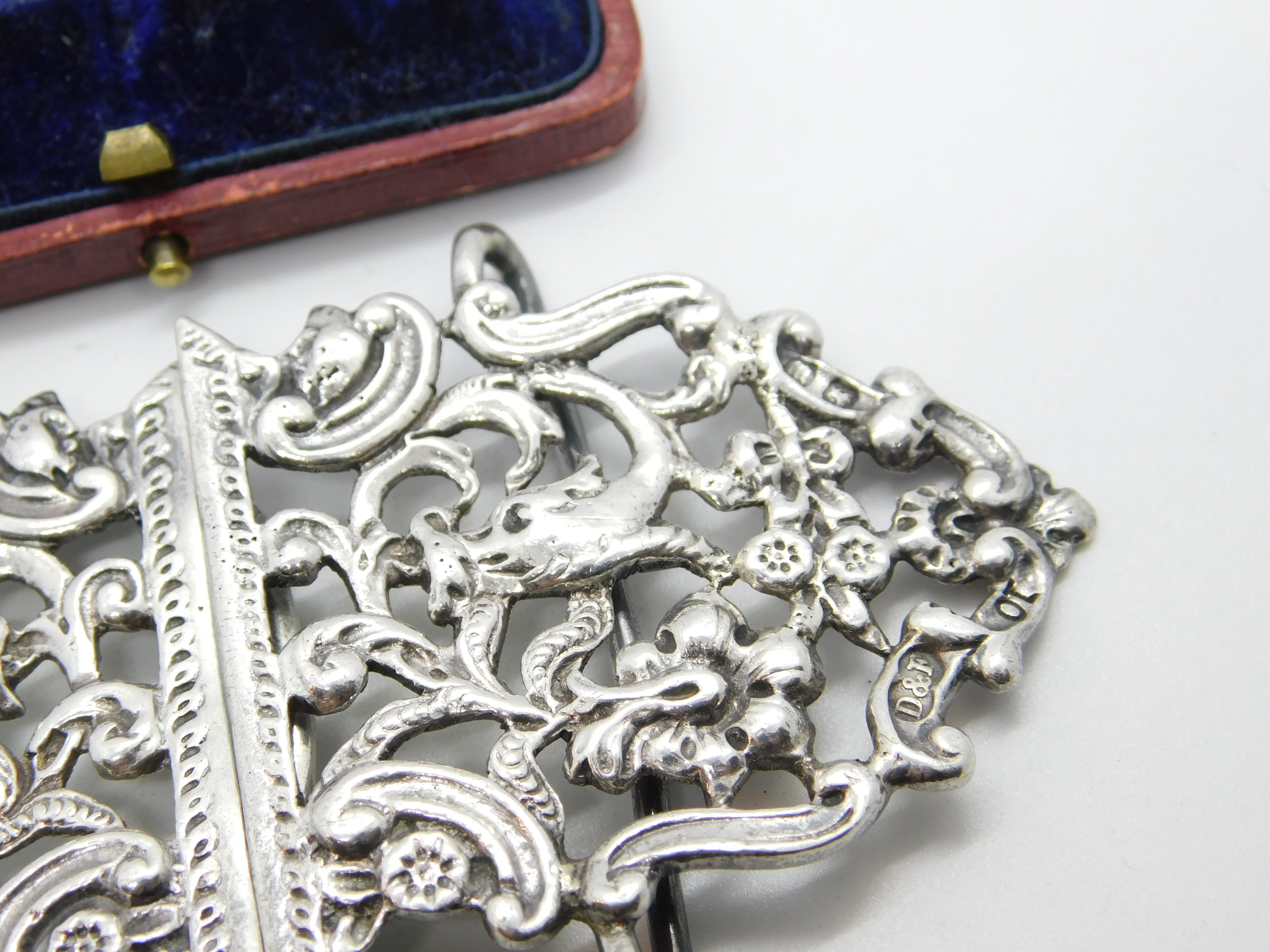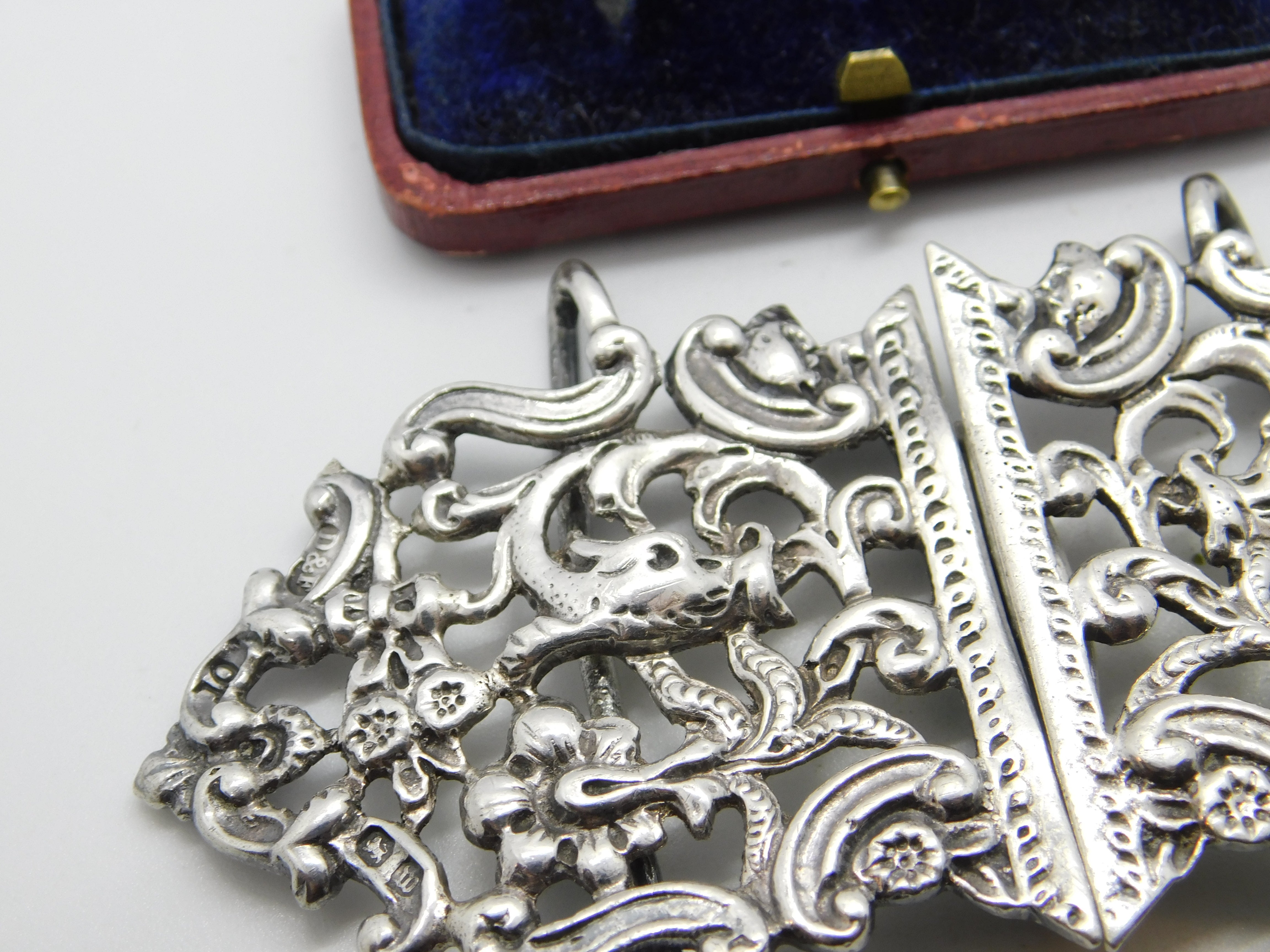 Details: A fantastic and wonderfully designed antique Victorian sterling silver dolphin fish pattern nurses buckle hallmarked Birmingham 1896 by Deakin & Francis This is a wonderful item that would make a perfect gift or addition to any collection. The BOX pictured is for PRESENTATION ONLY and is NOT included in the listings but used to frame the pictures unless specifically stated otherwise.