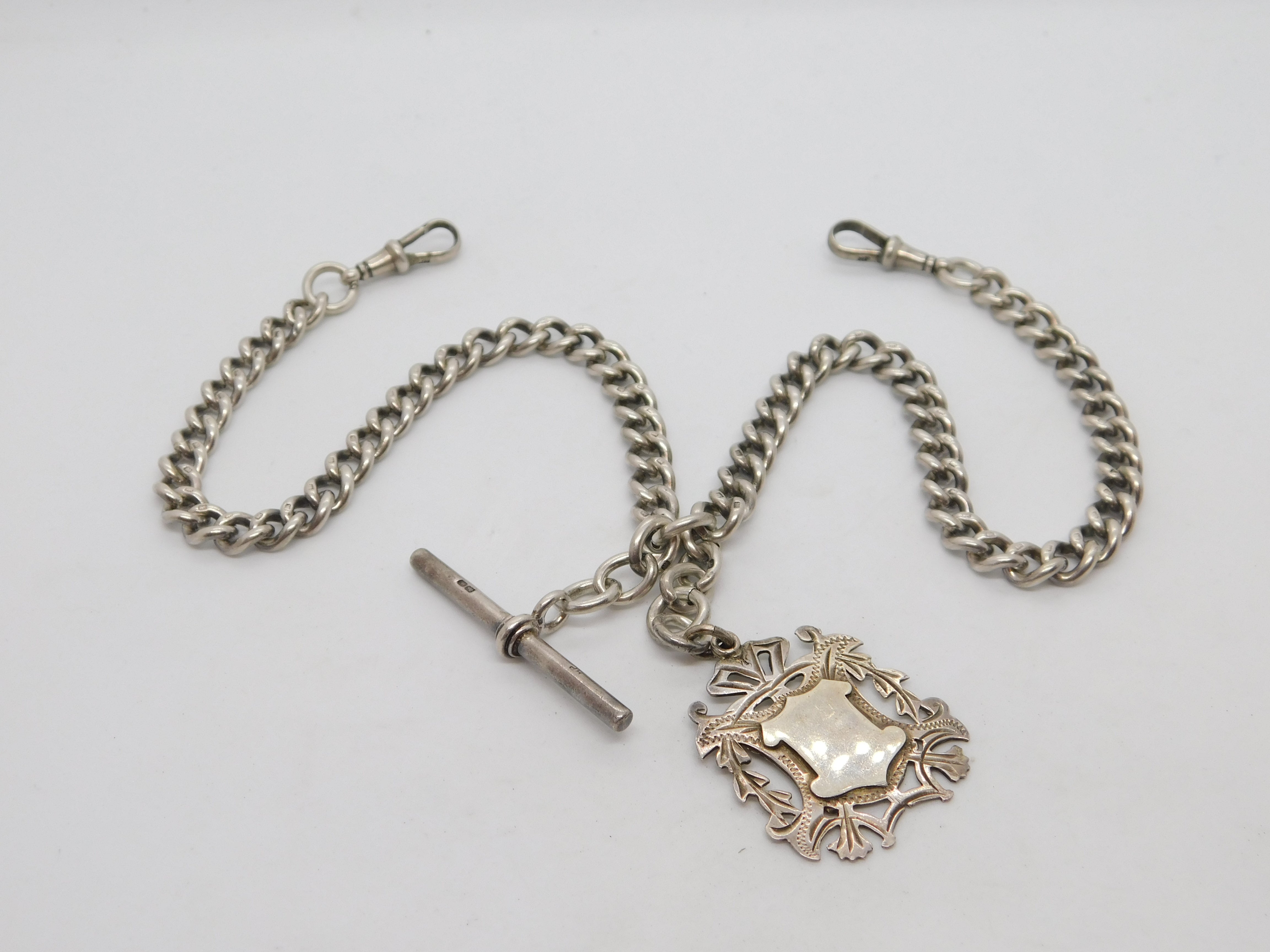 Victorian Sterling Silver Double Albert Watch Chain Antique 1900 Birmingham