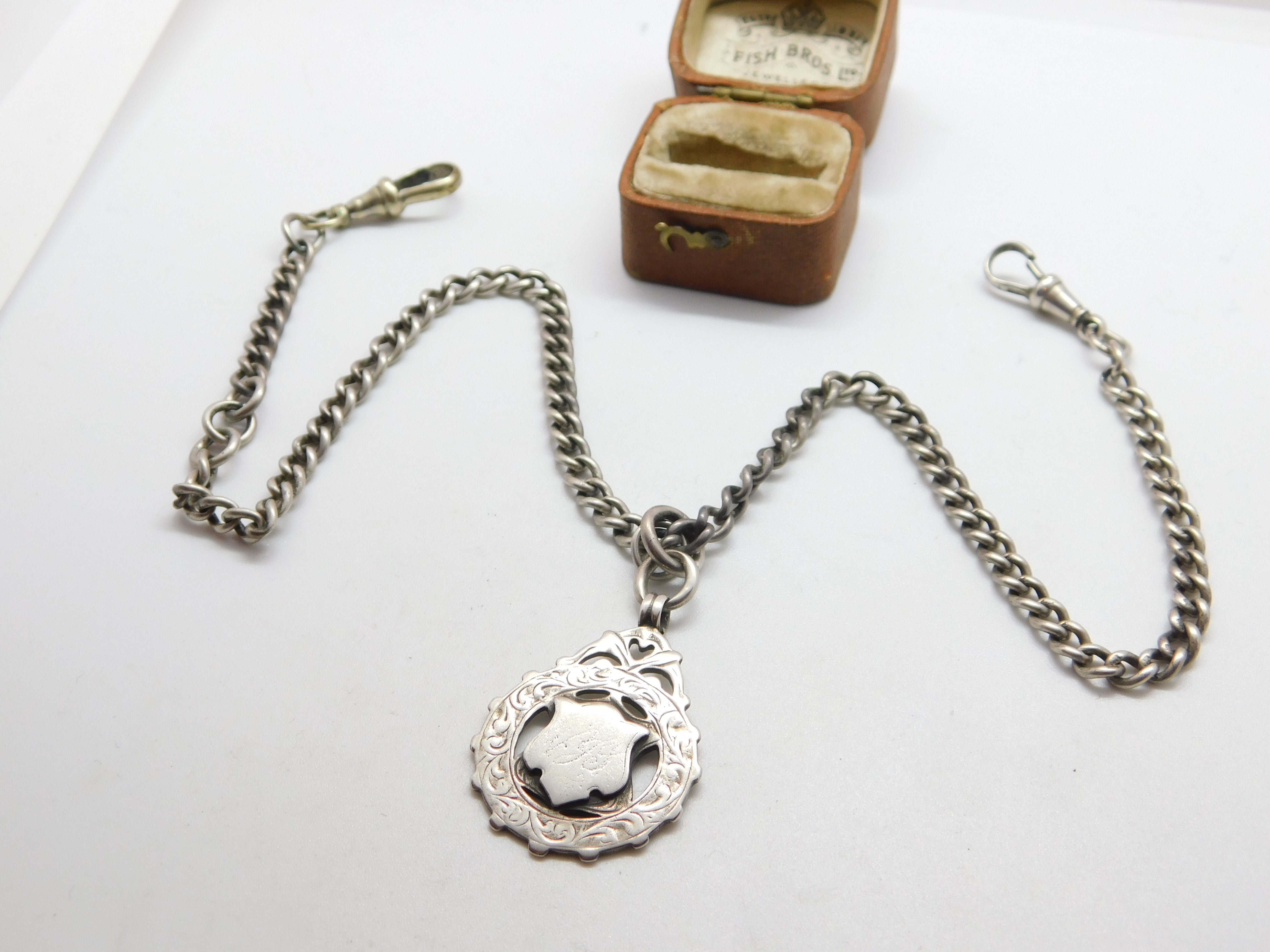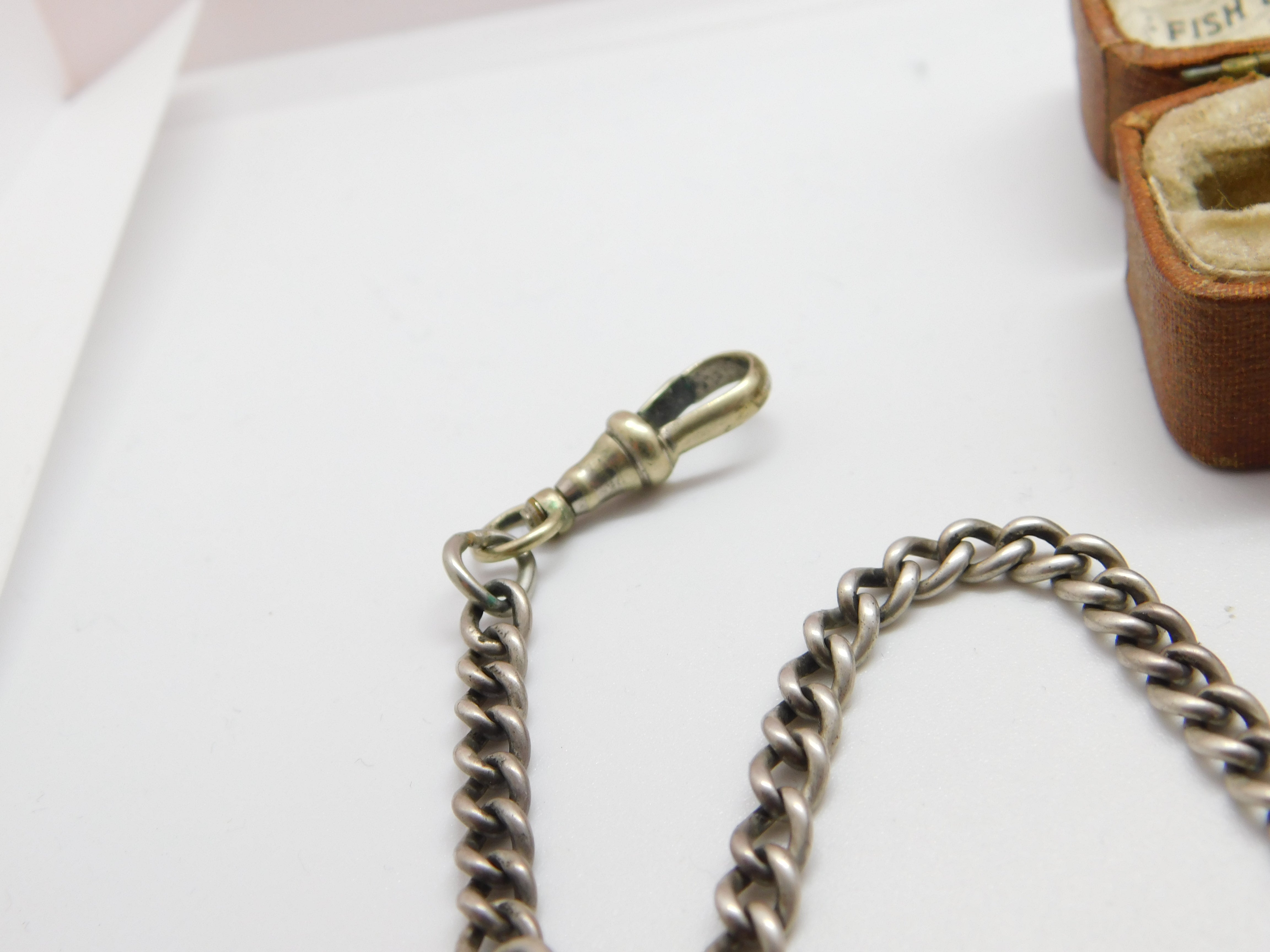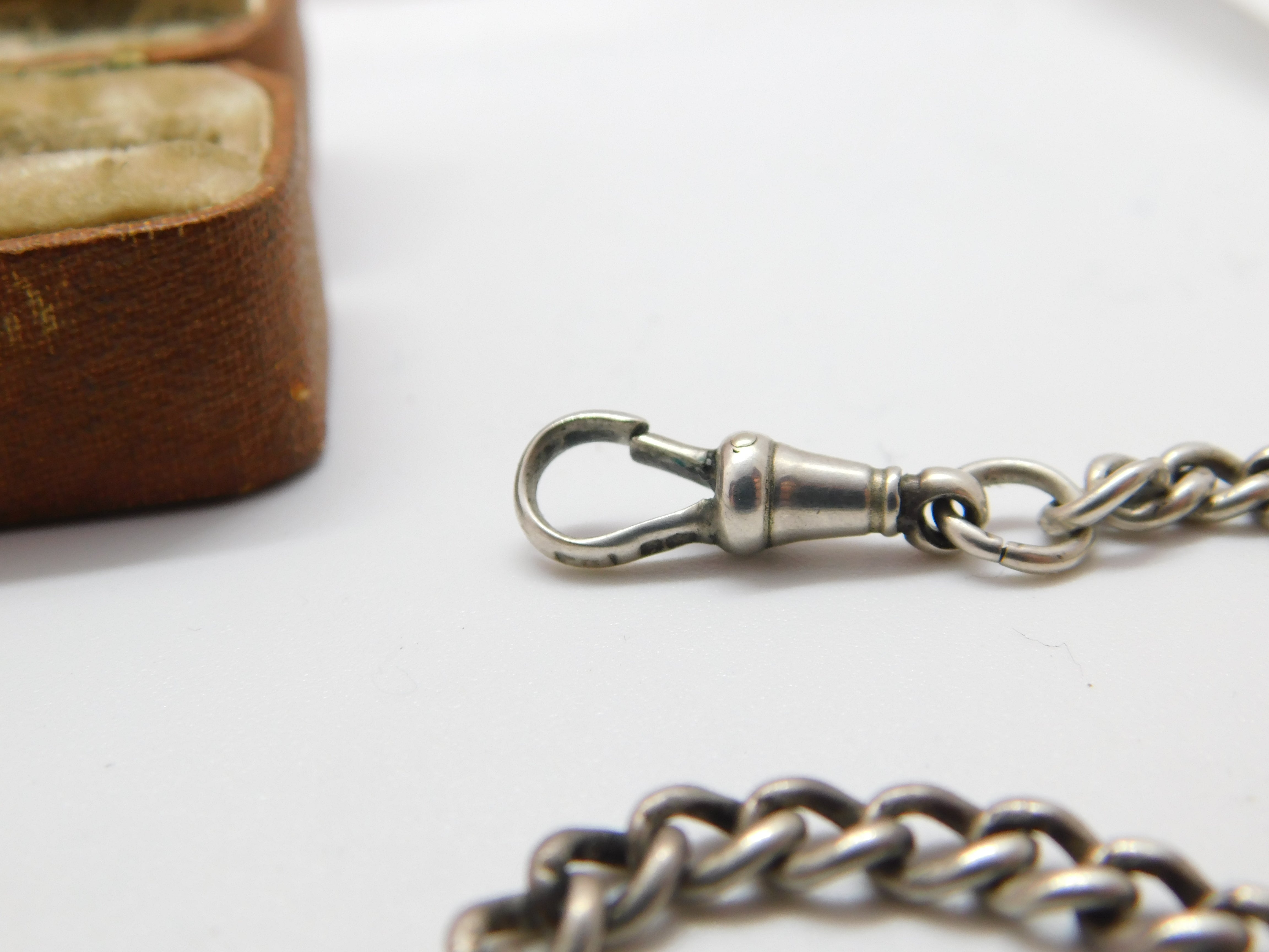Victorian Sterling Silver Double Albert Watch Chain & Fob c1900 Antique
