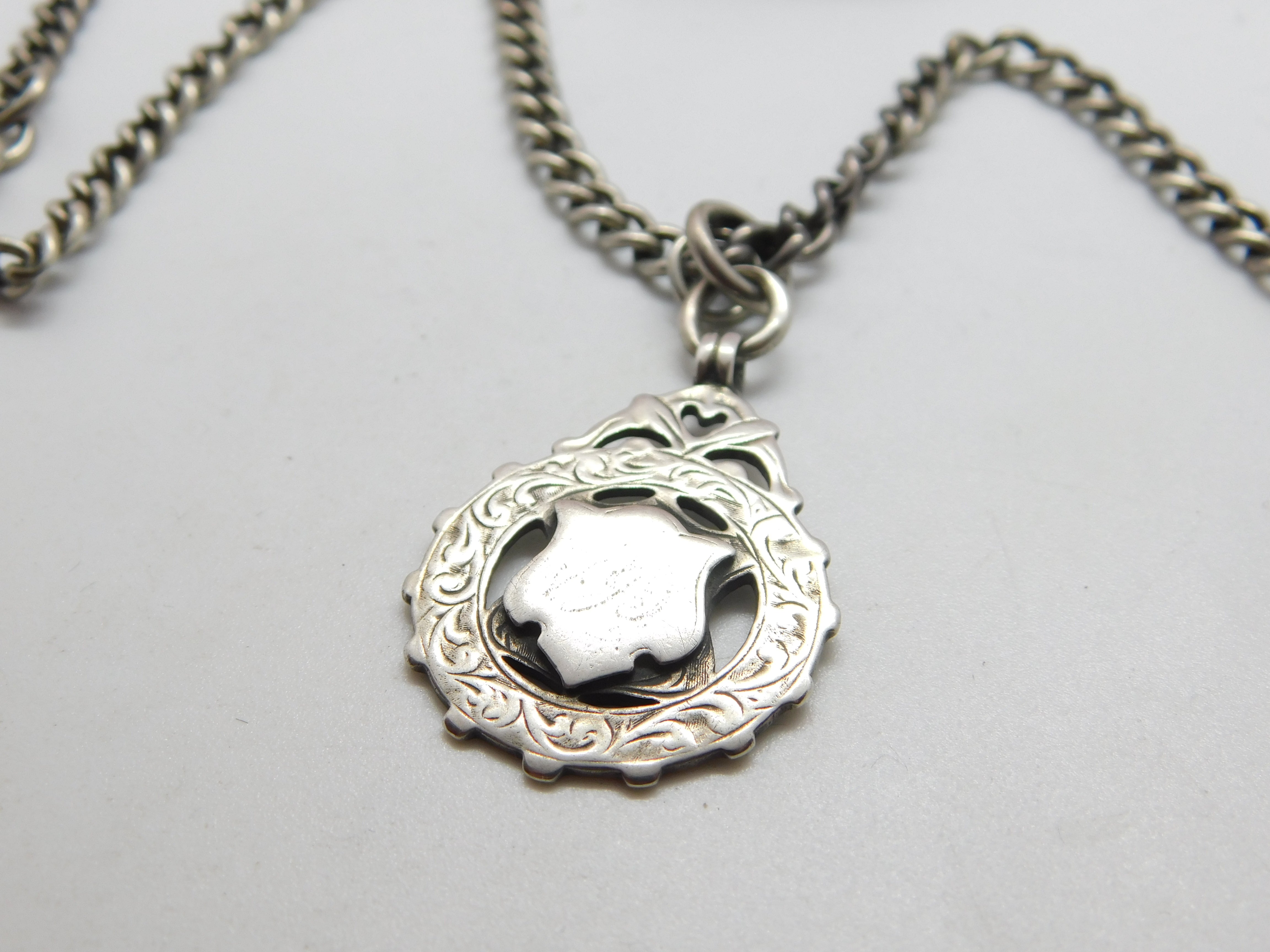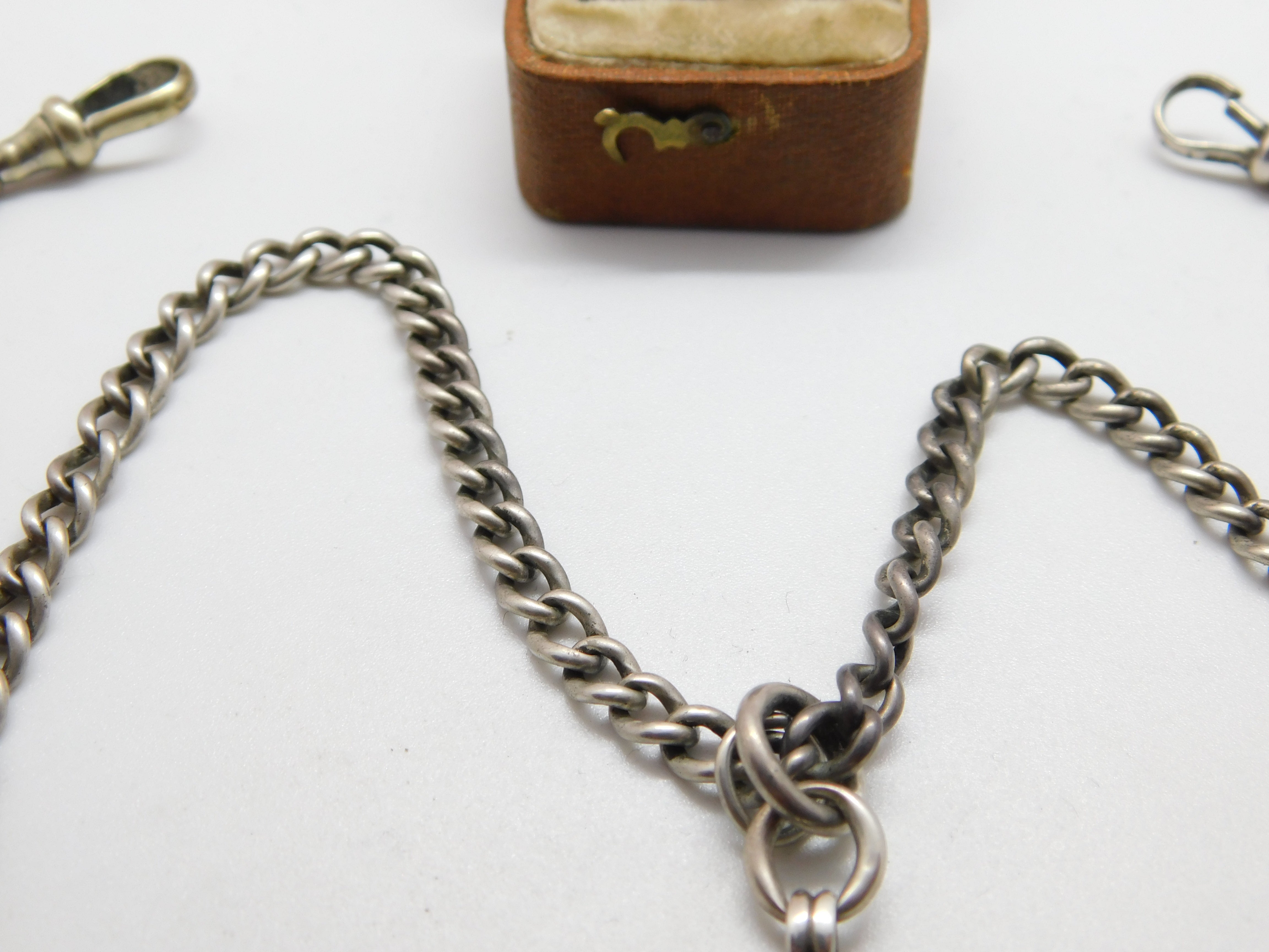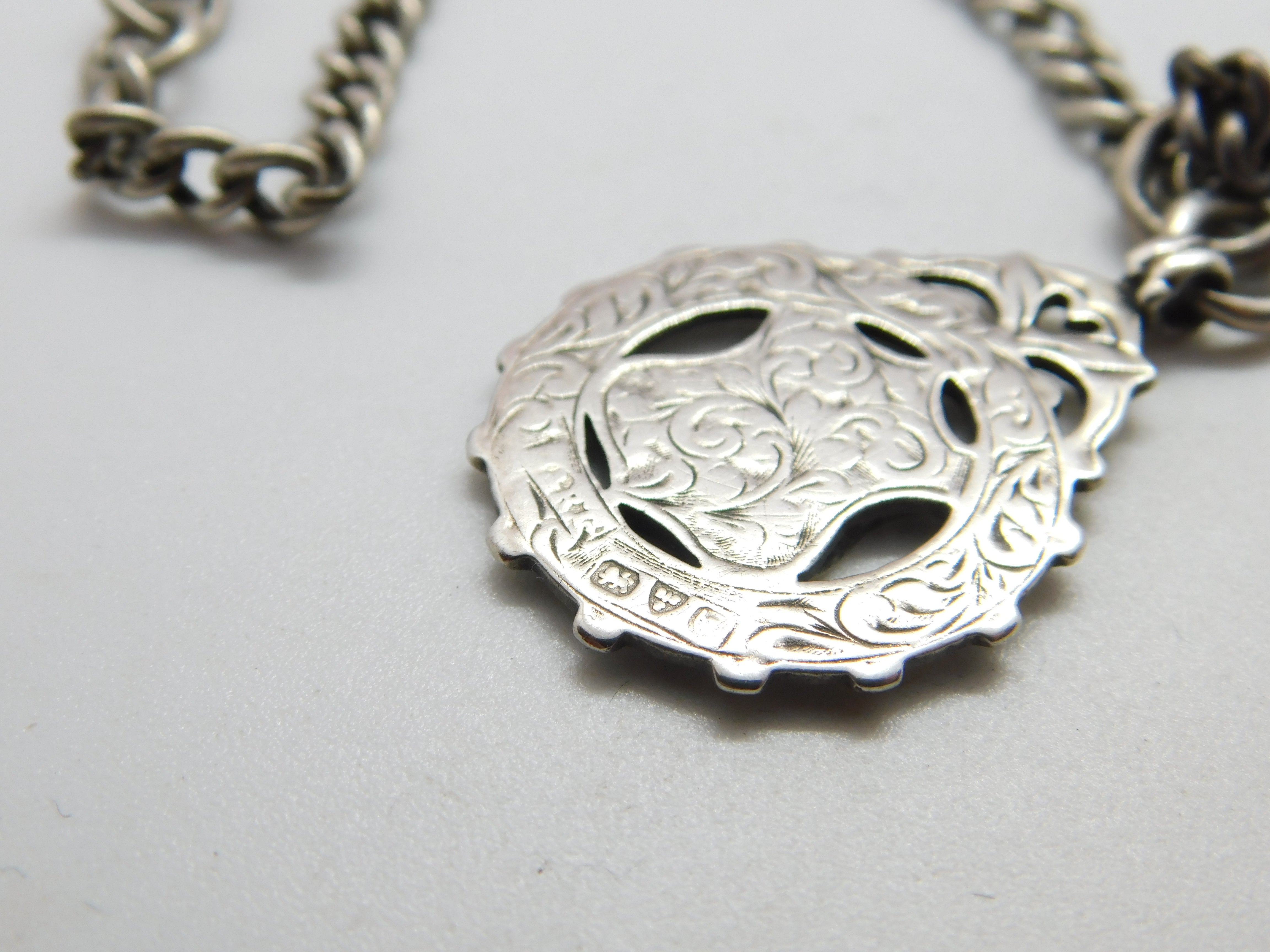 Victorian Sterling Silver Double Albert Watch Chain & Fob c1900 Antique