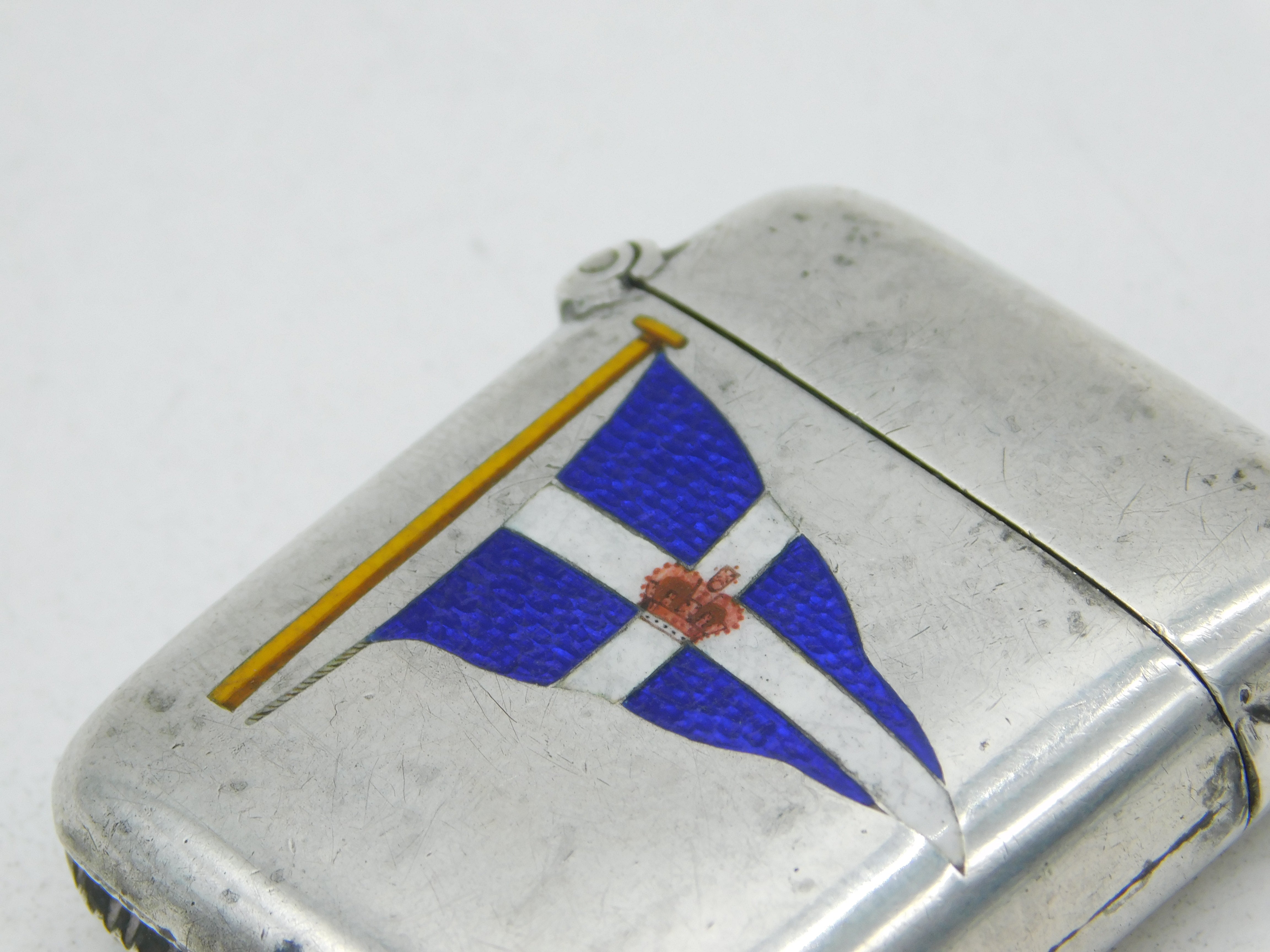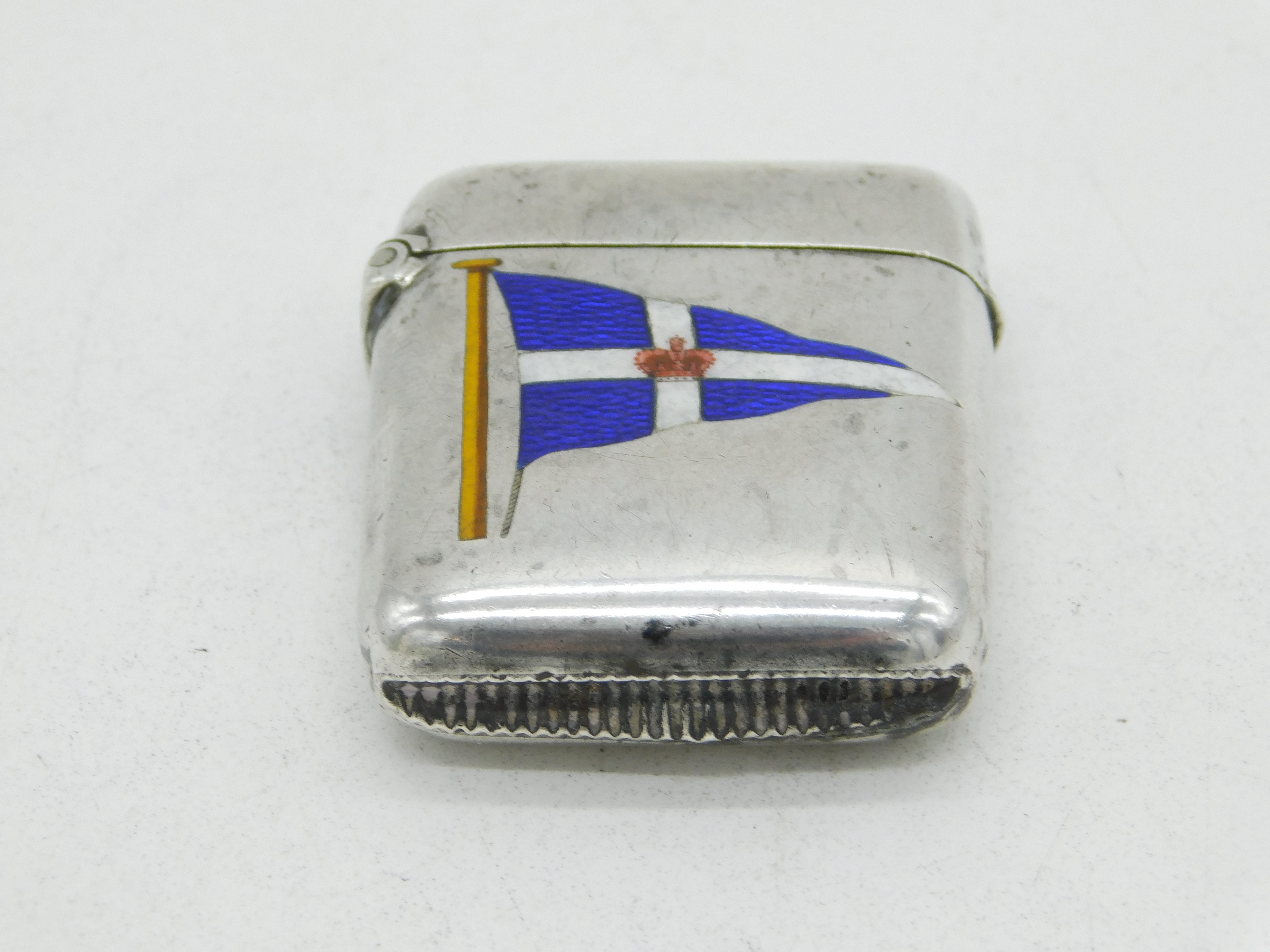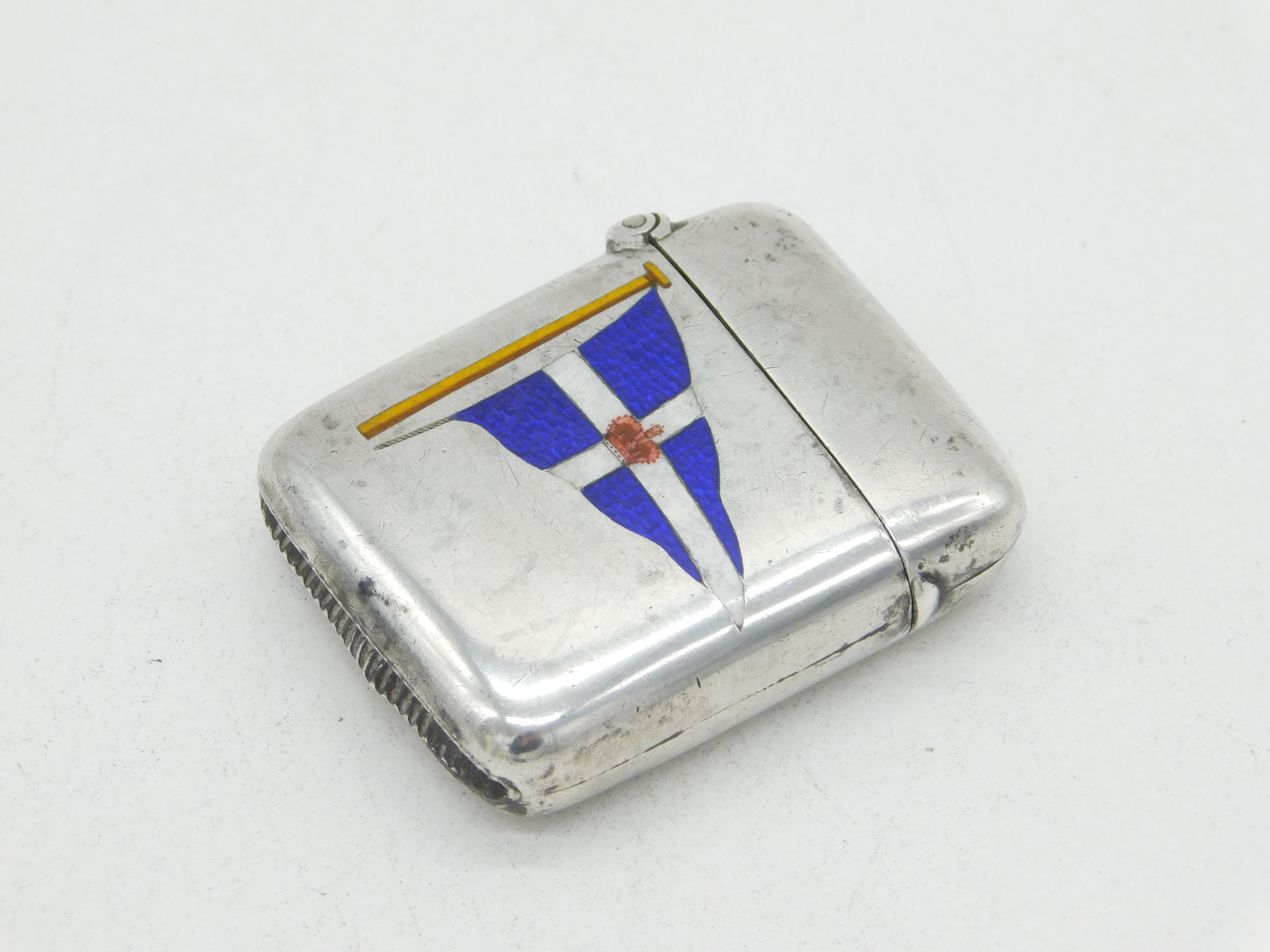 Victorian Sterling Silver & Enamel Royal Navy Flag Vesta Case Antique Birmingham