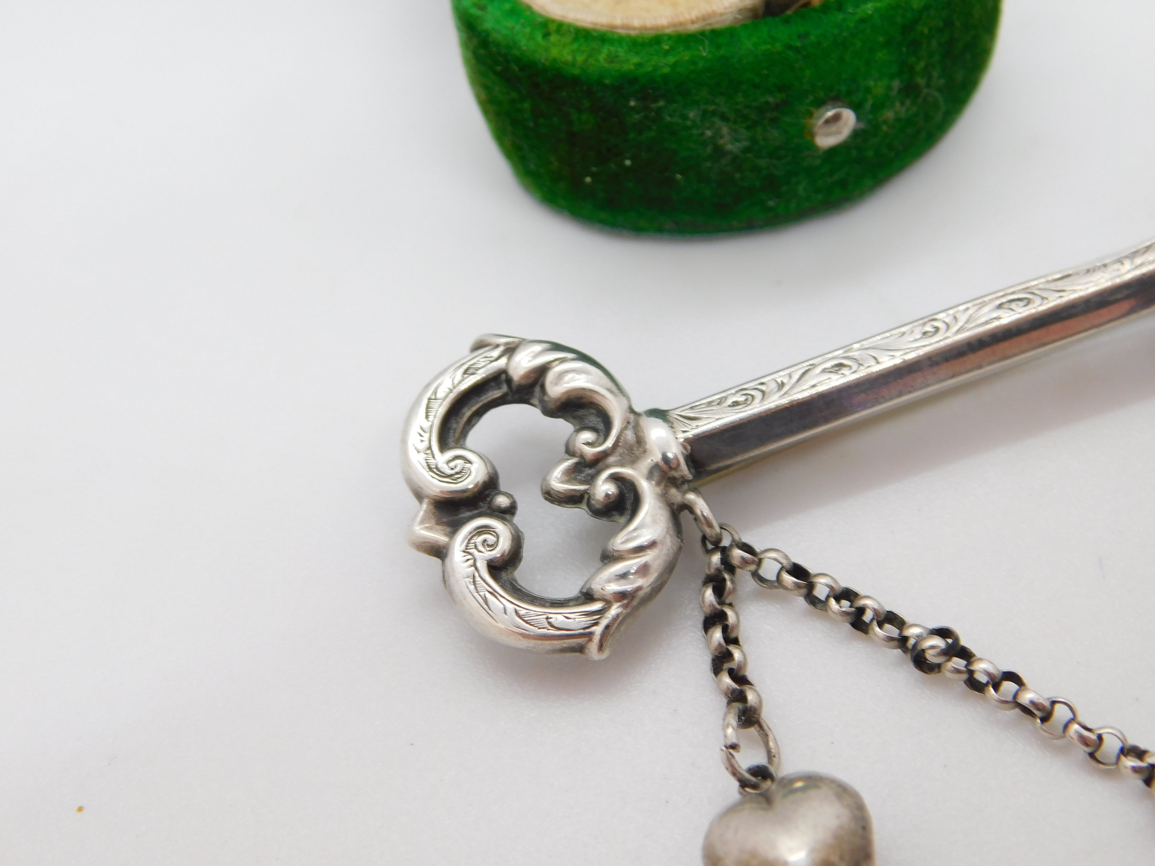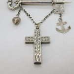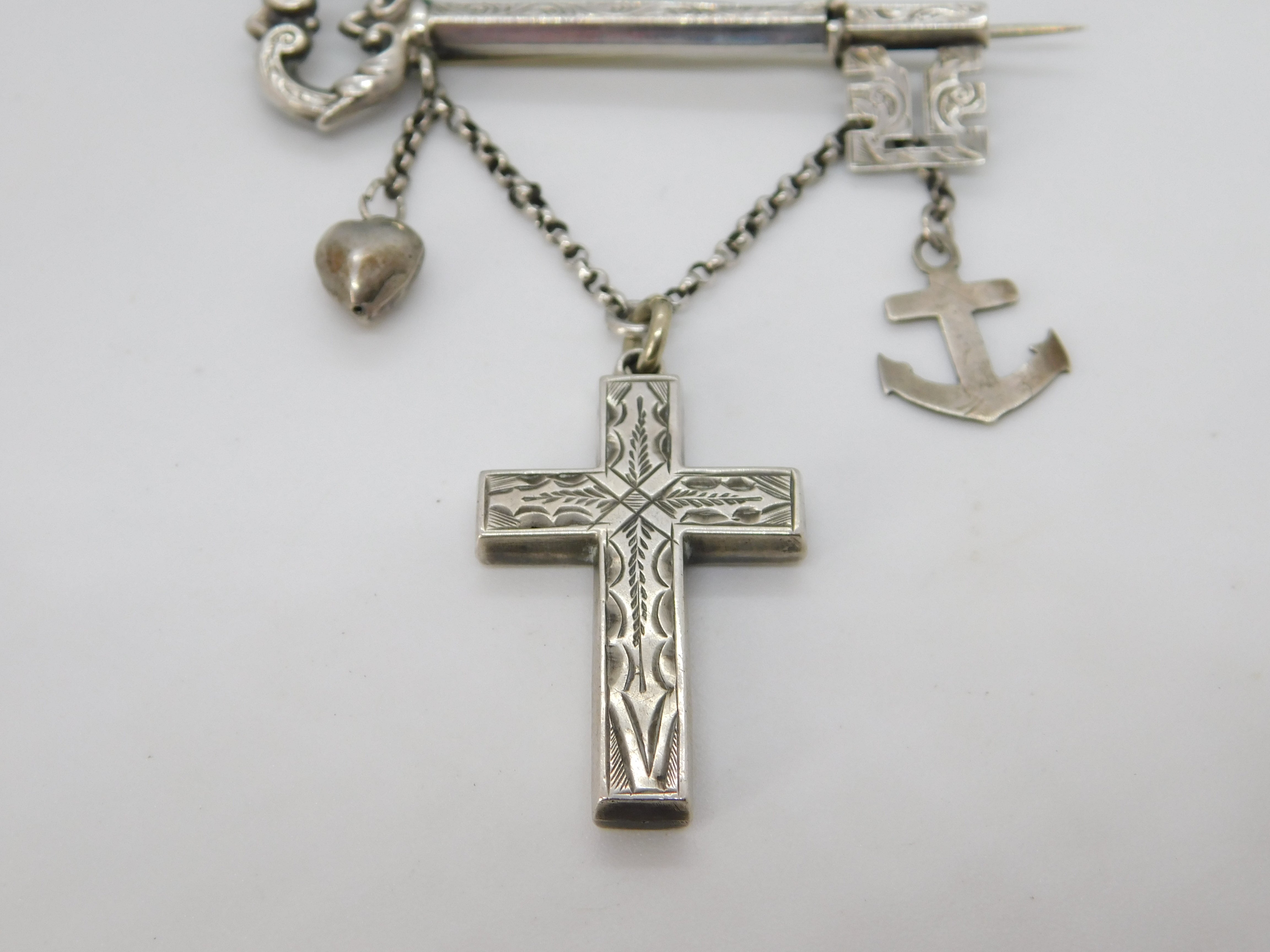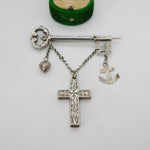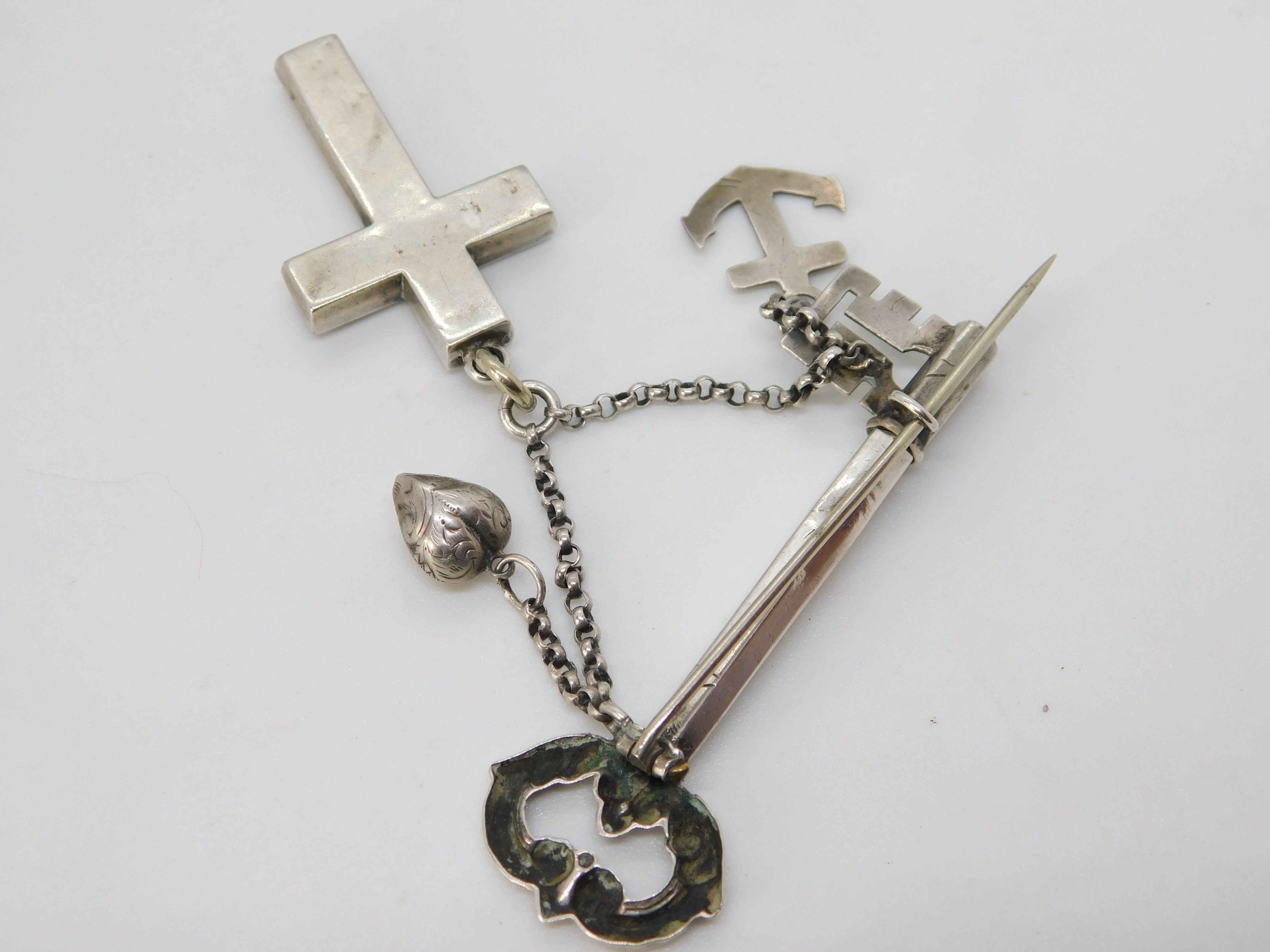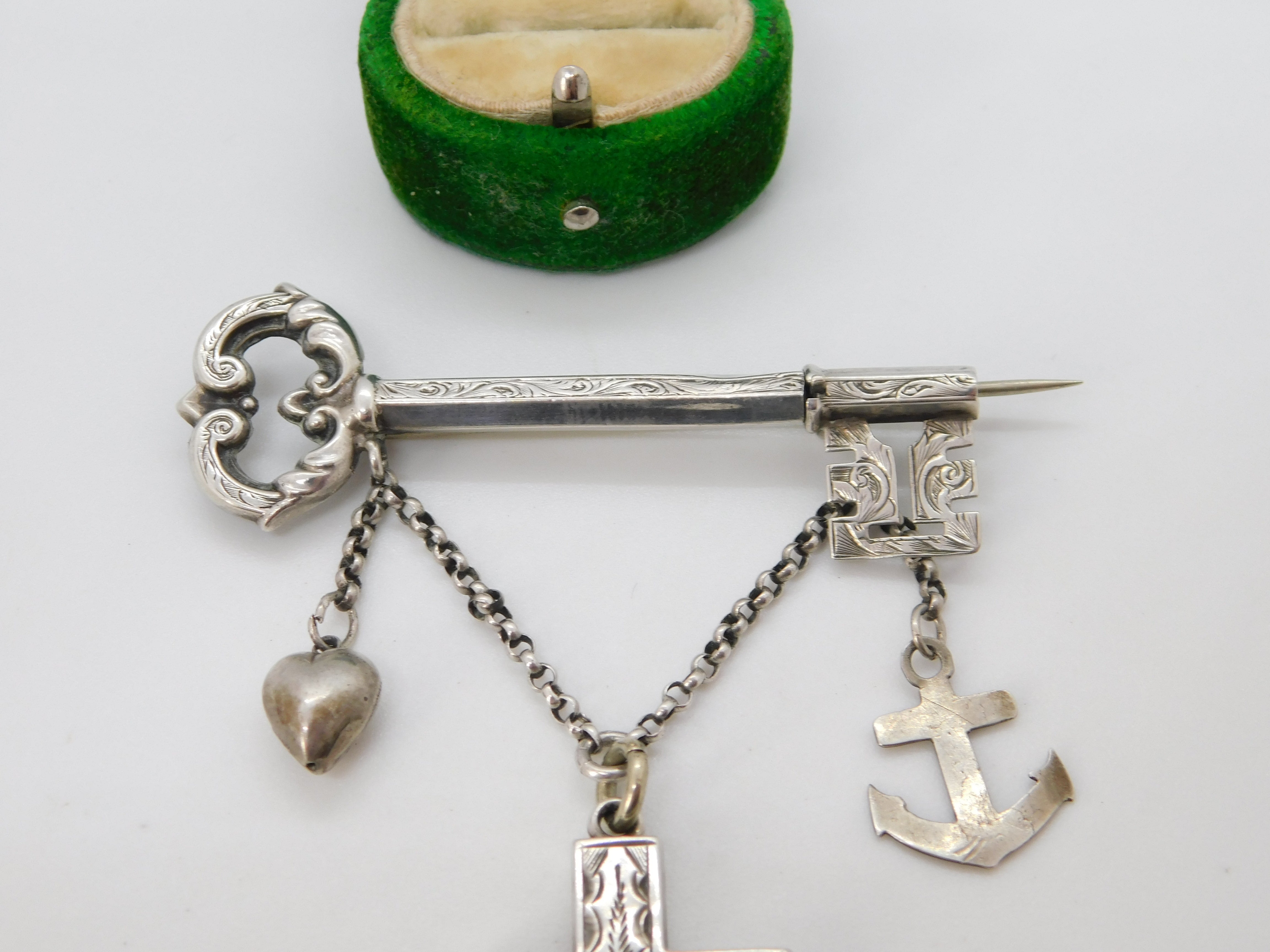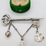 Victorian Sterling Silver Faith, Hope, Charity Key Sweetheart Brooch Antique