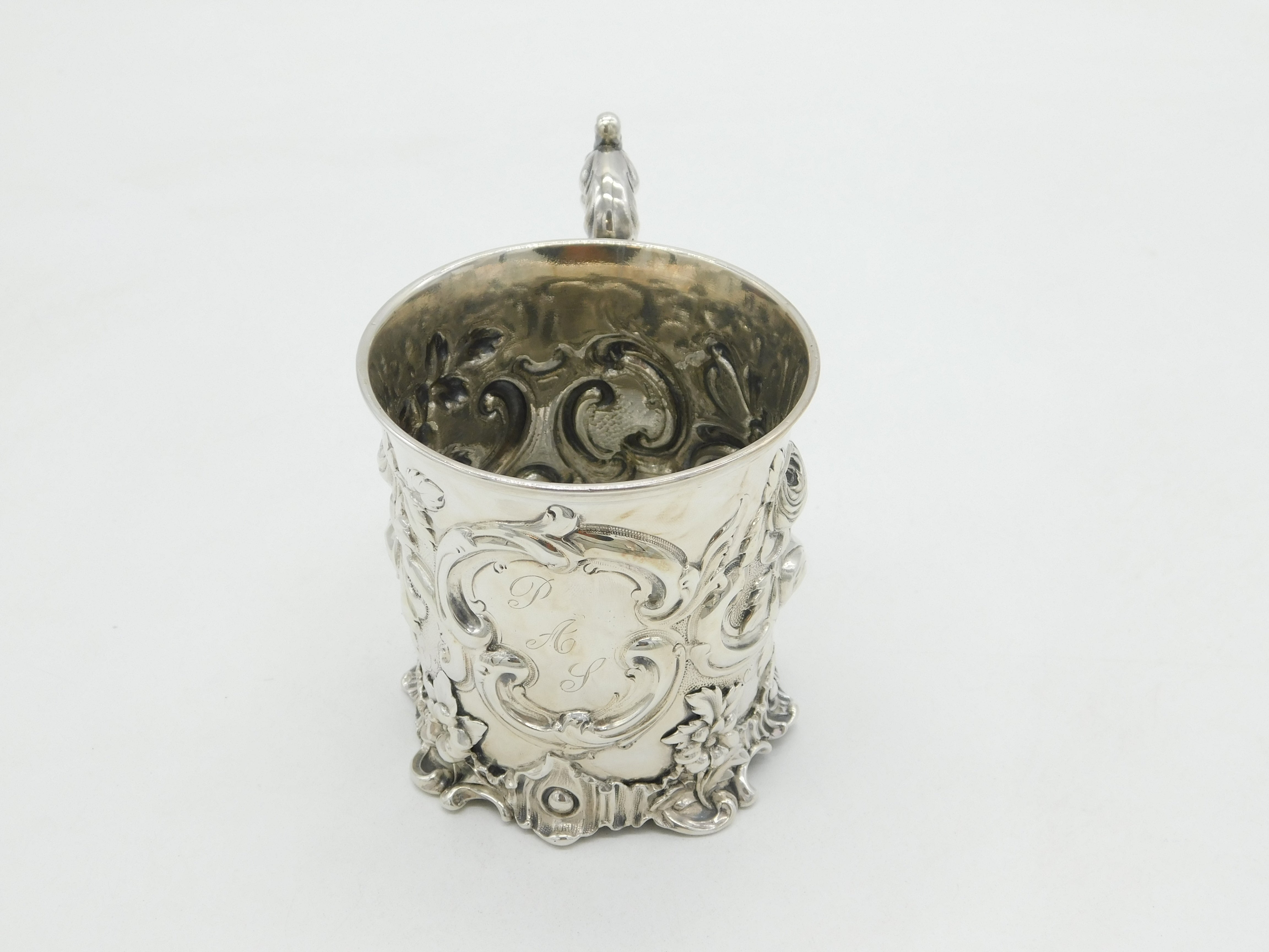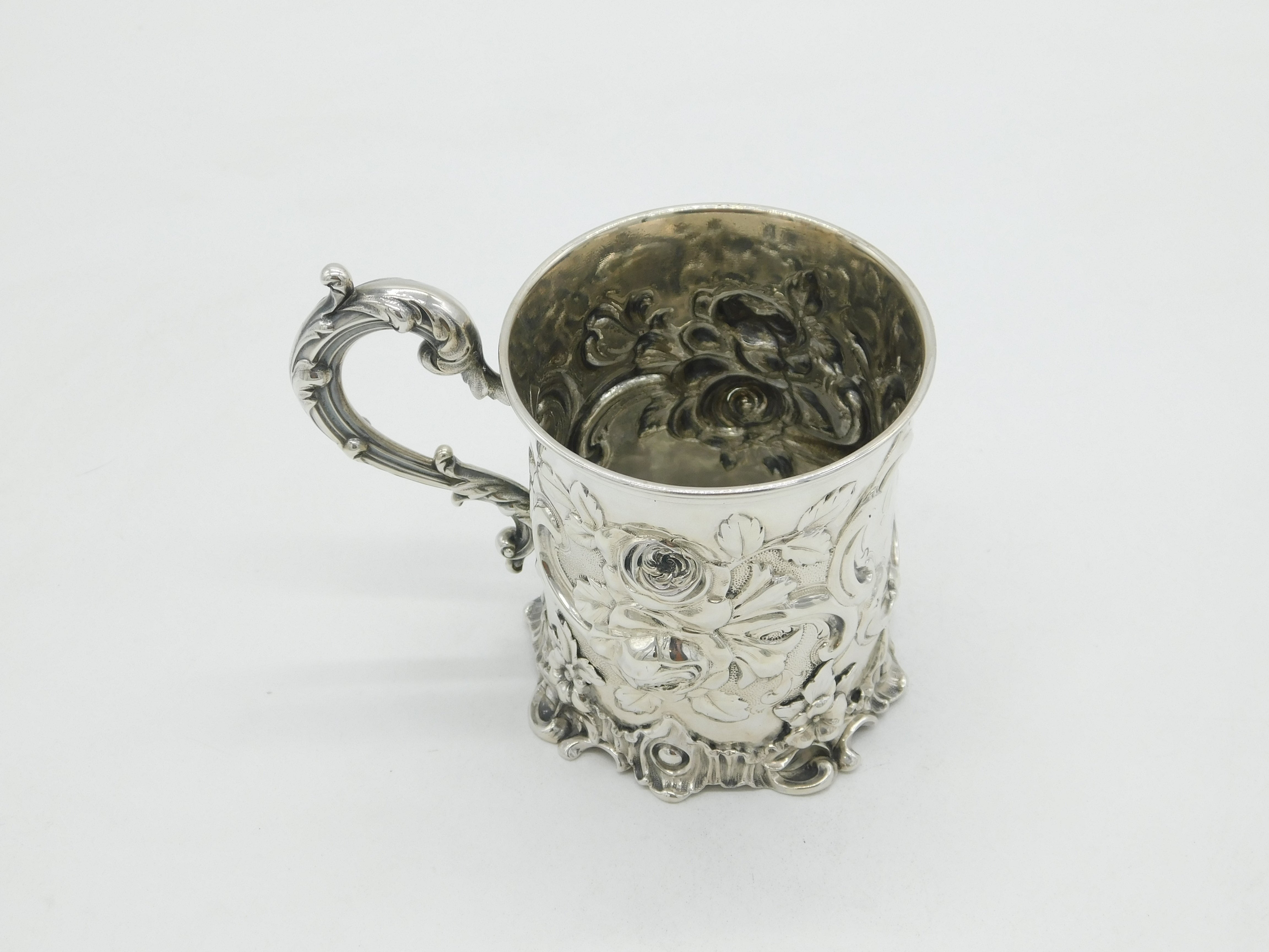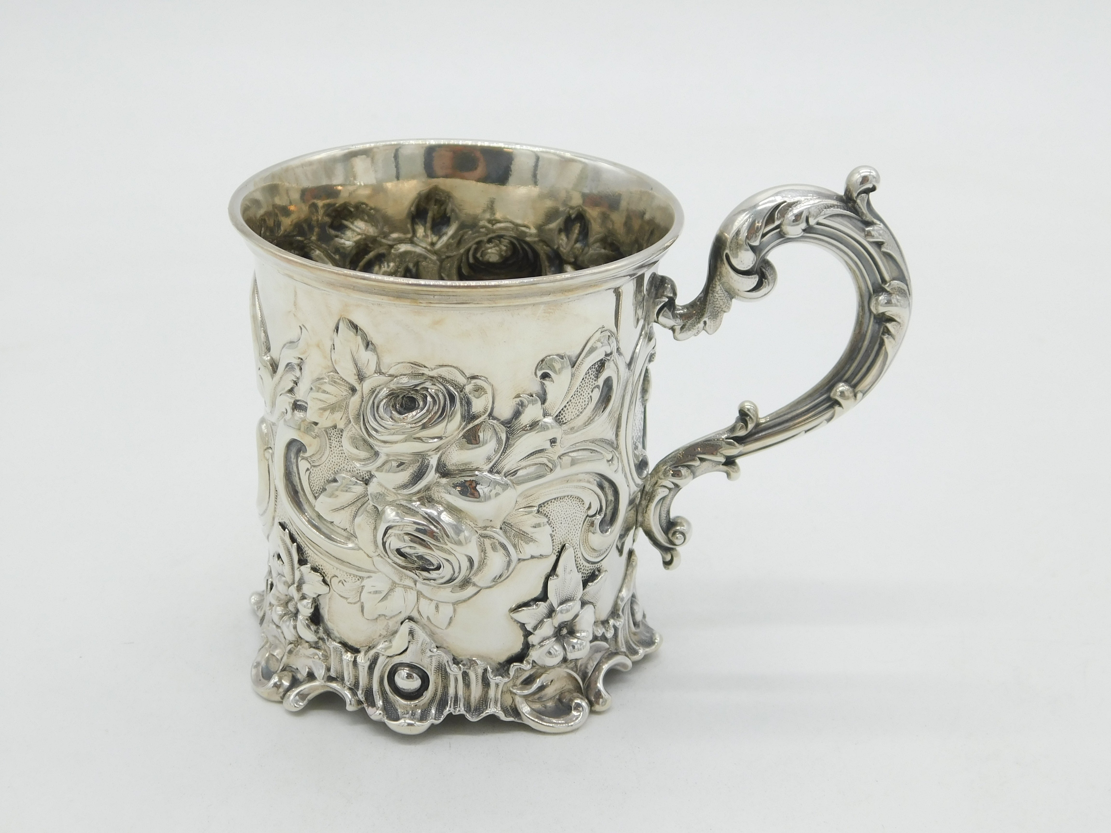 Victorian Sterling Silver Floral Decorated Christening Mug Antique 1844 London