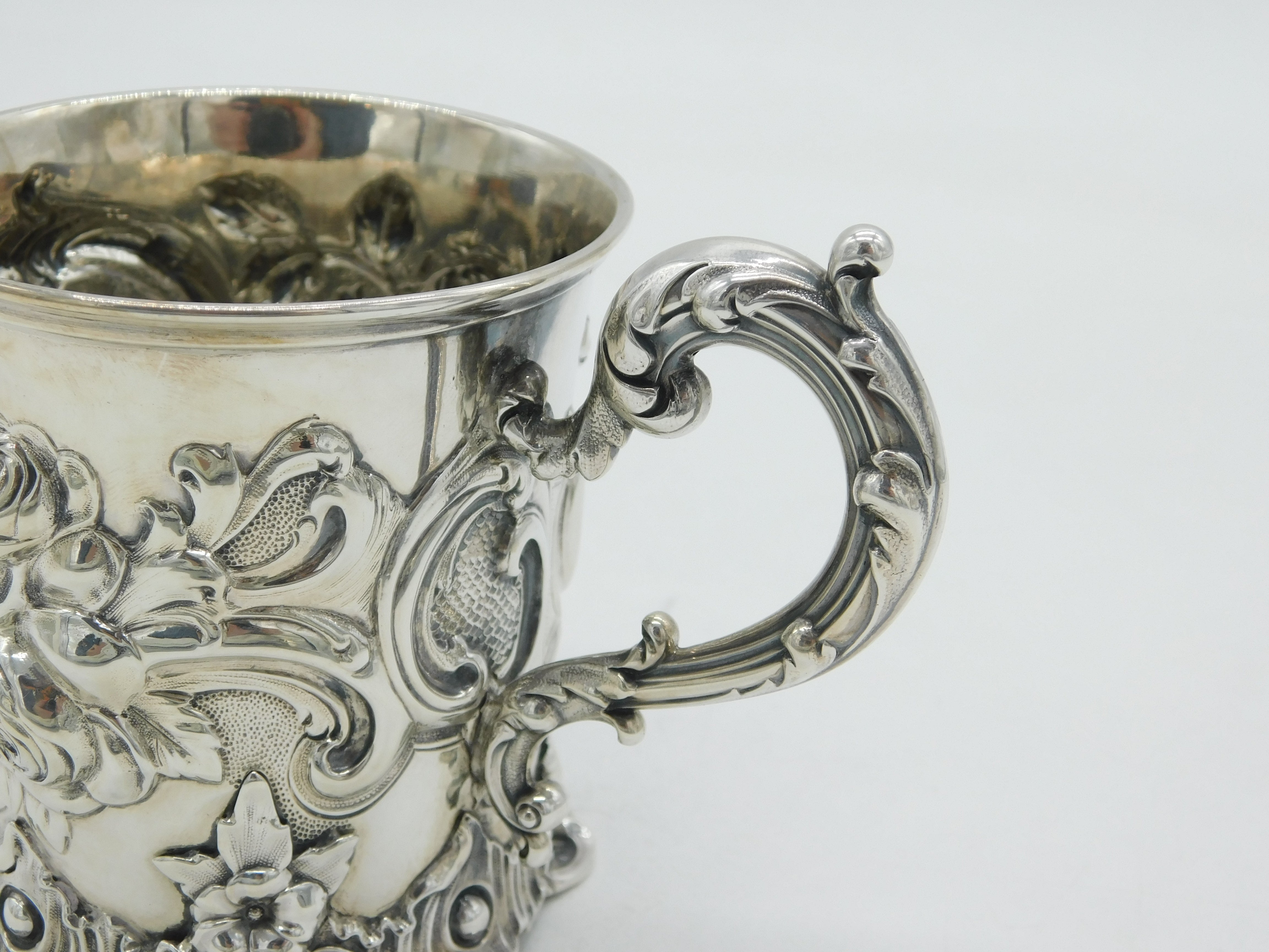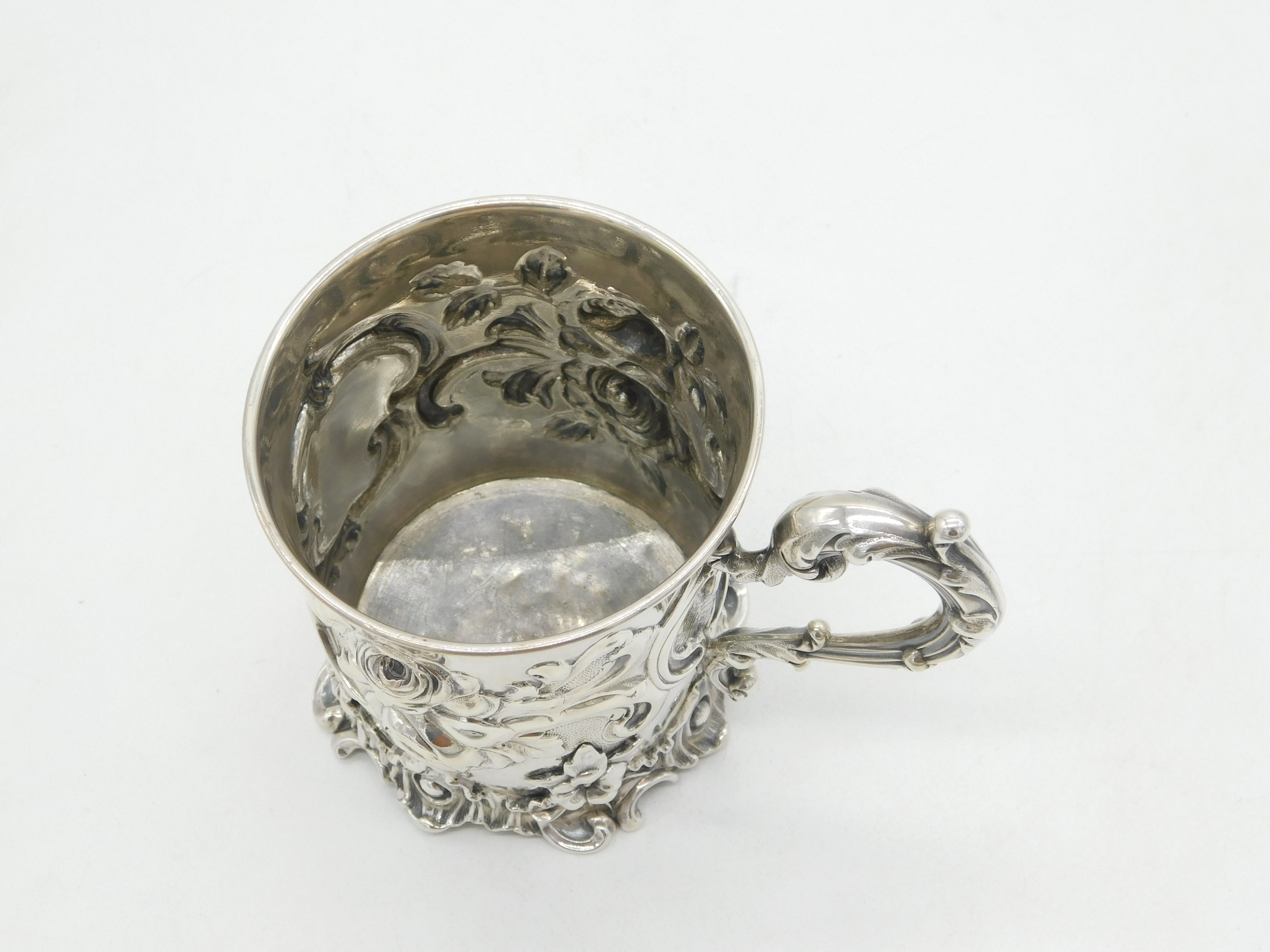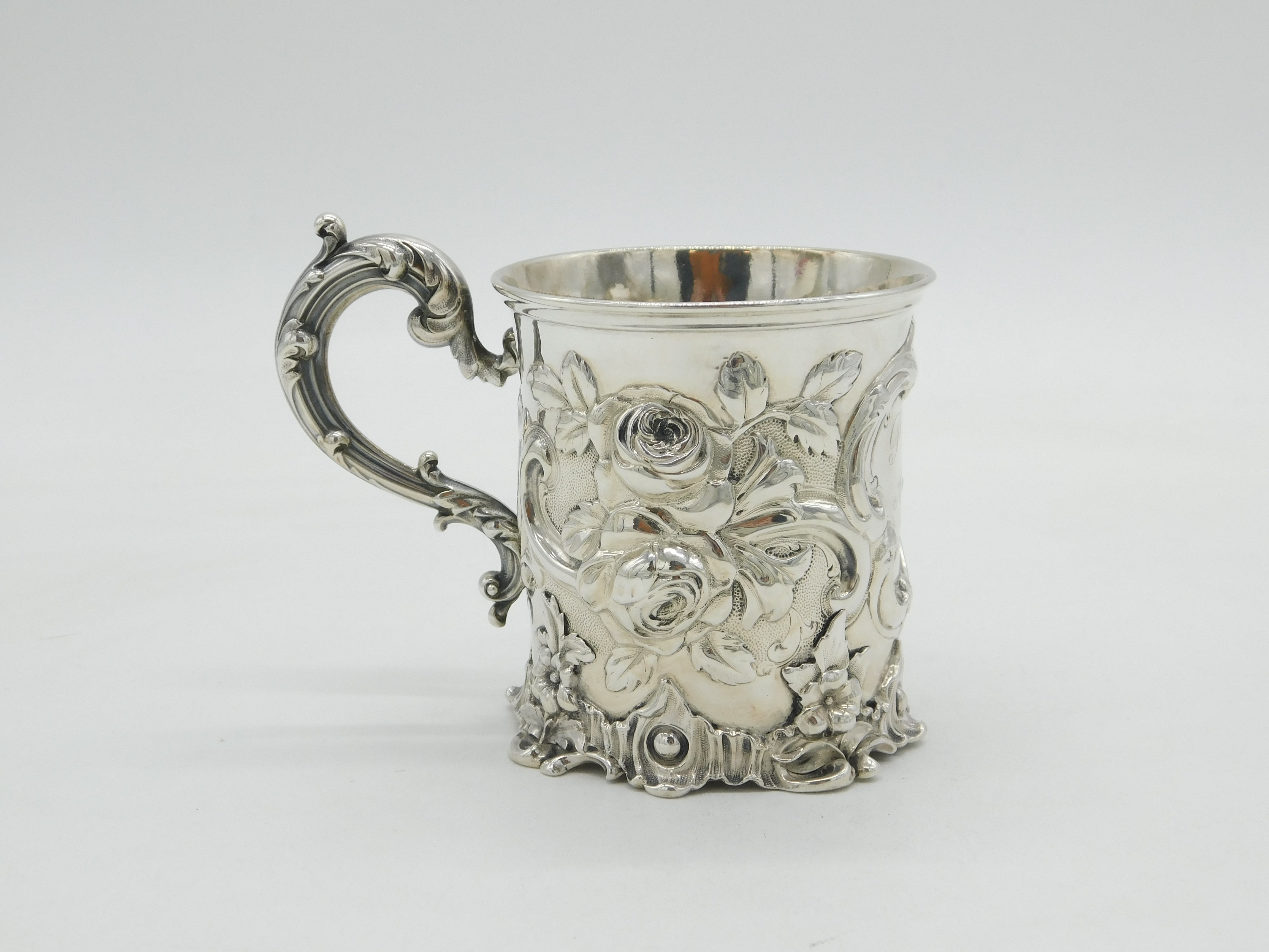 Victorian Sterling Silver Floral Decorated Christening Mug Antique 1844 London
