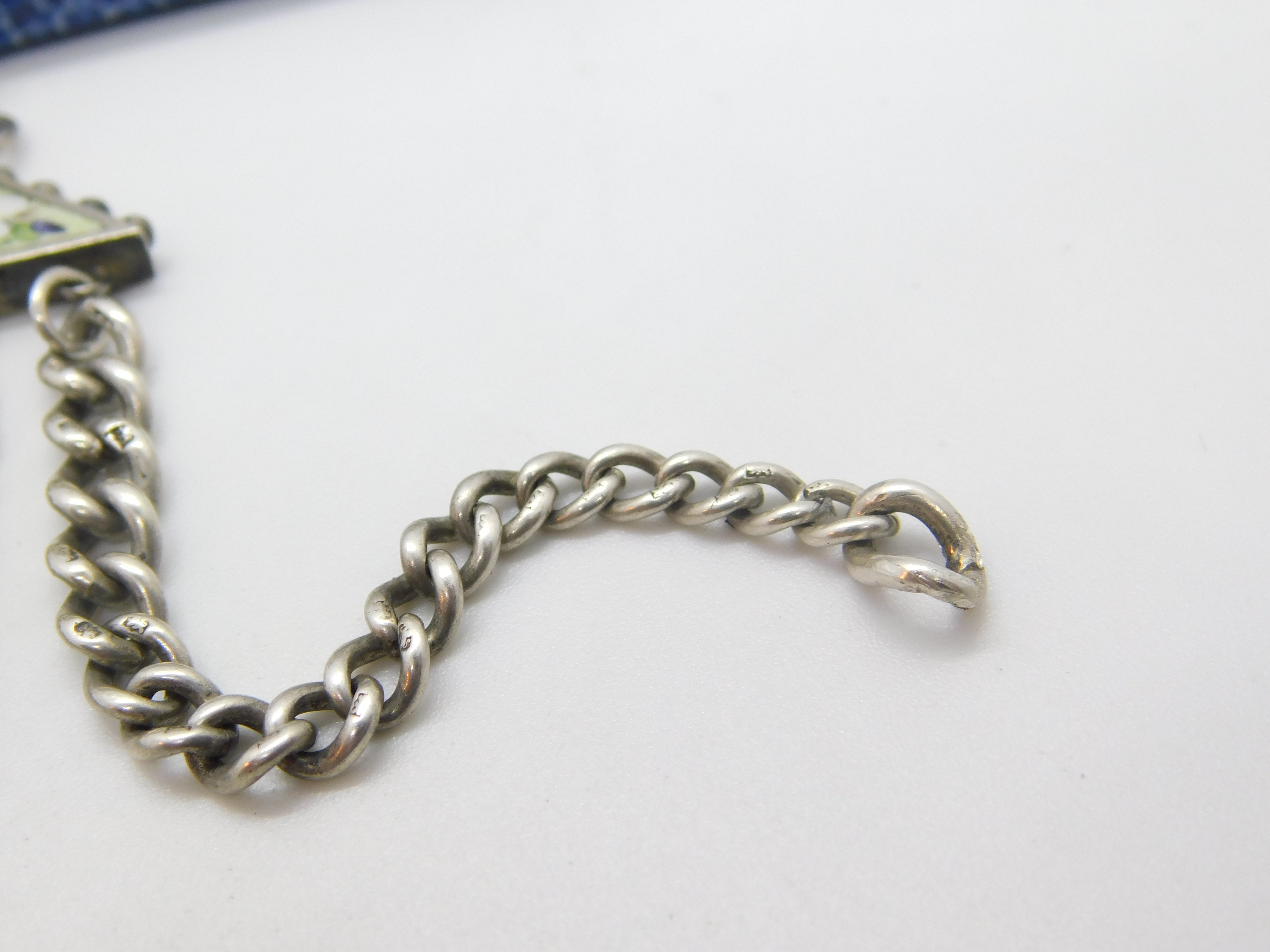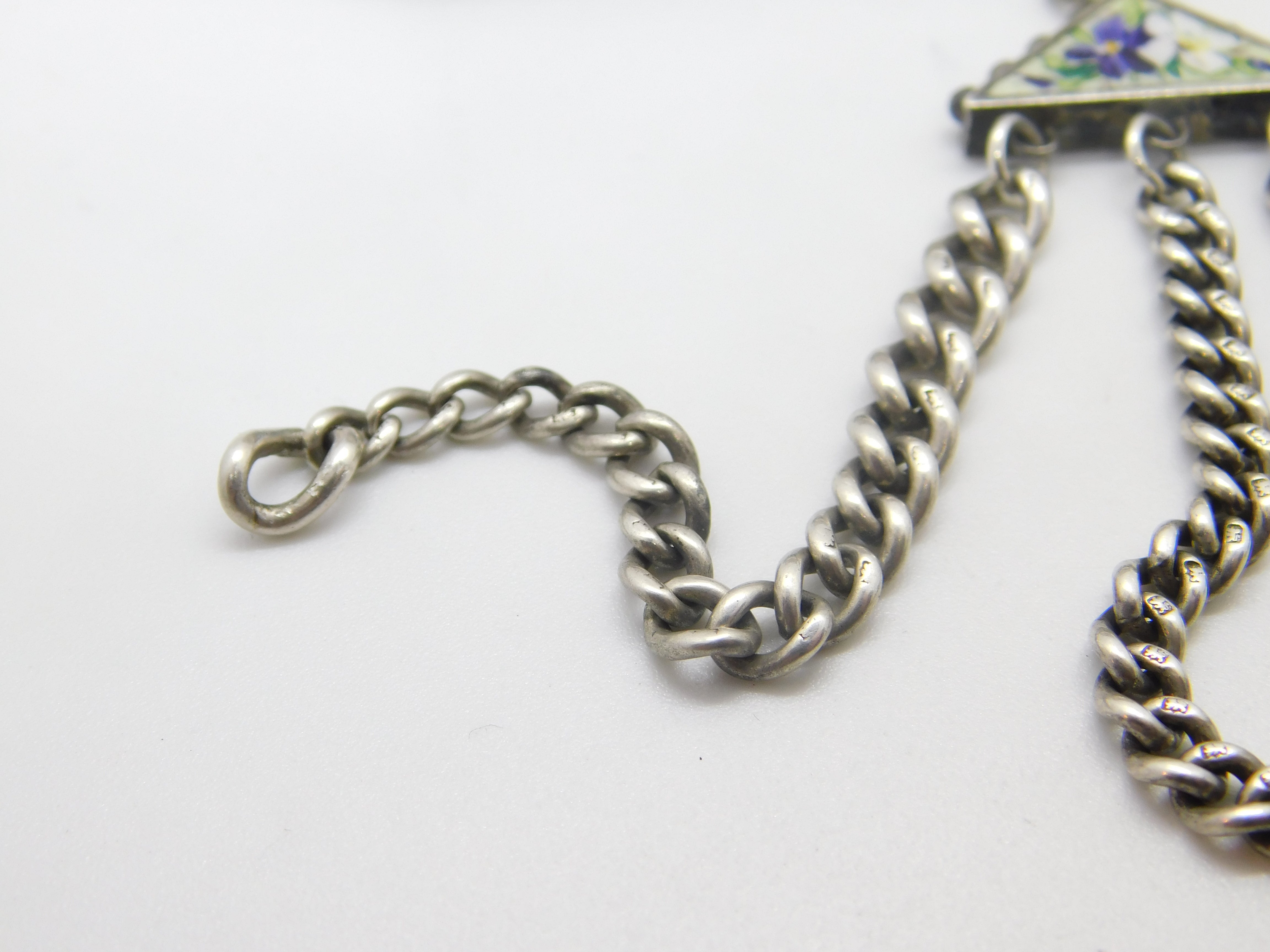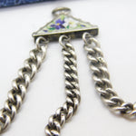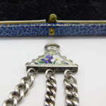 Victorian Sterling Silver & Floral Enamel Chatelaine Fob Antique c1880