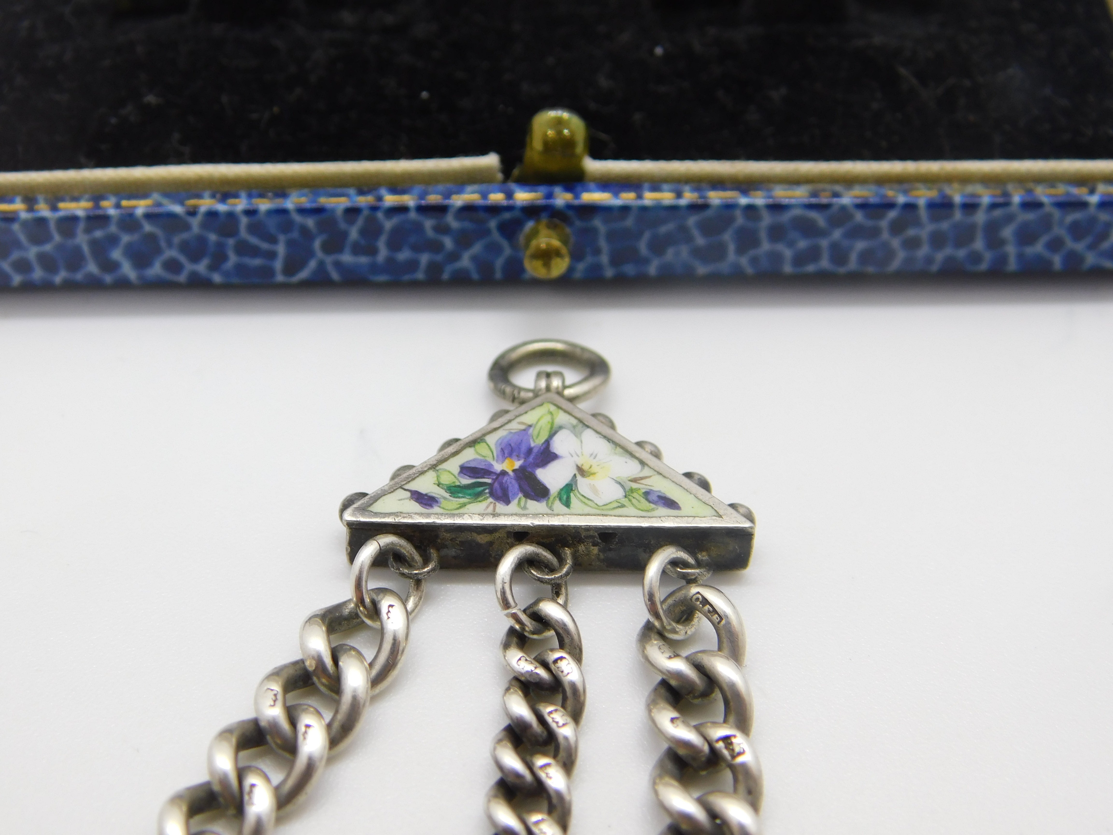 Details: A fantastic and wonderfully designed antique Victorian sterling silver and floral enamel chatelaine form three strand drop chain hallmarked to every link c1880. This is a wonderful item that would make a perfect gift or addition to any collection. The BOX pictured is for PRESENTATION ONLY and is NOT included in the listings but used to frame the pictures unless specifically stated otherwise.