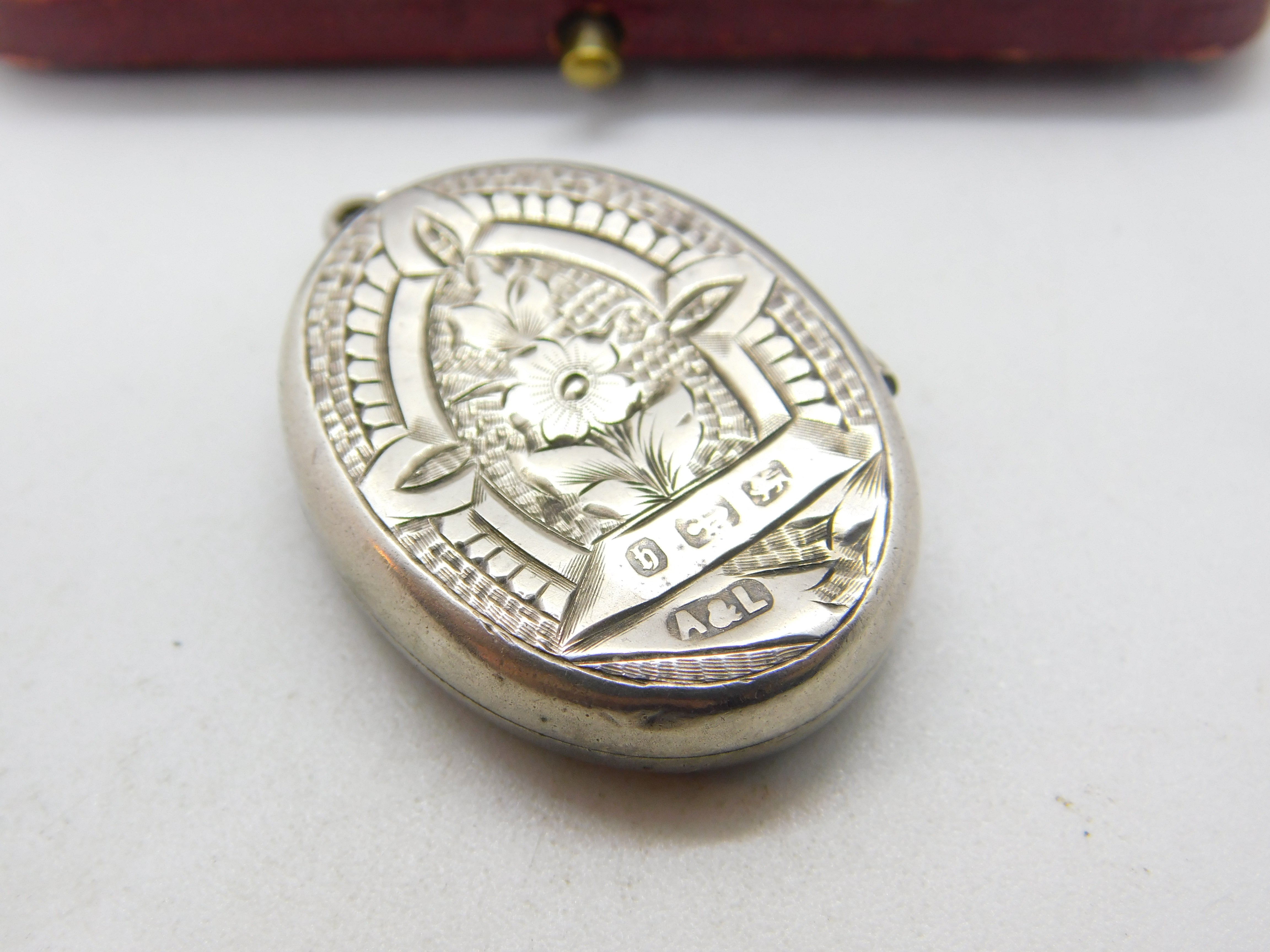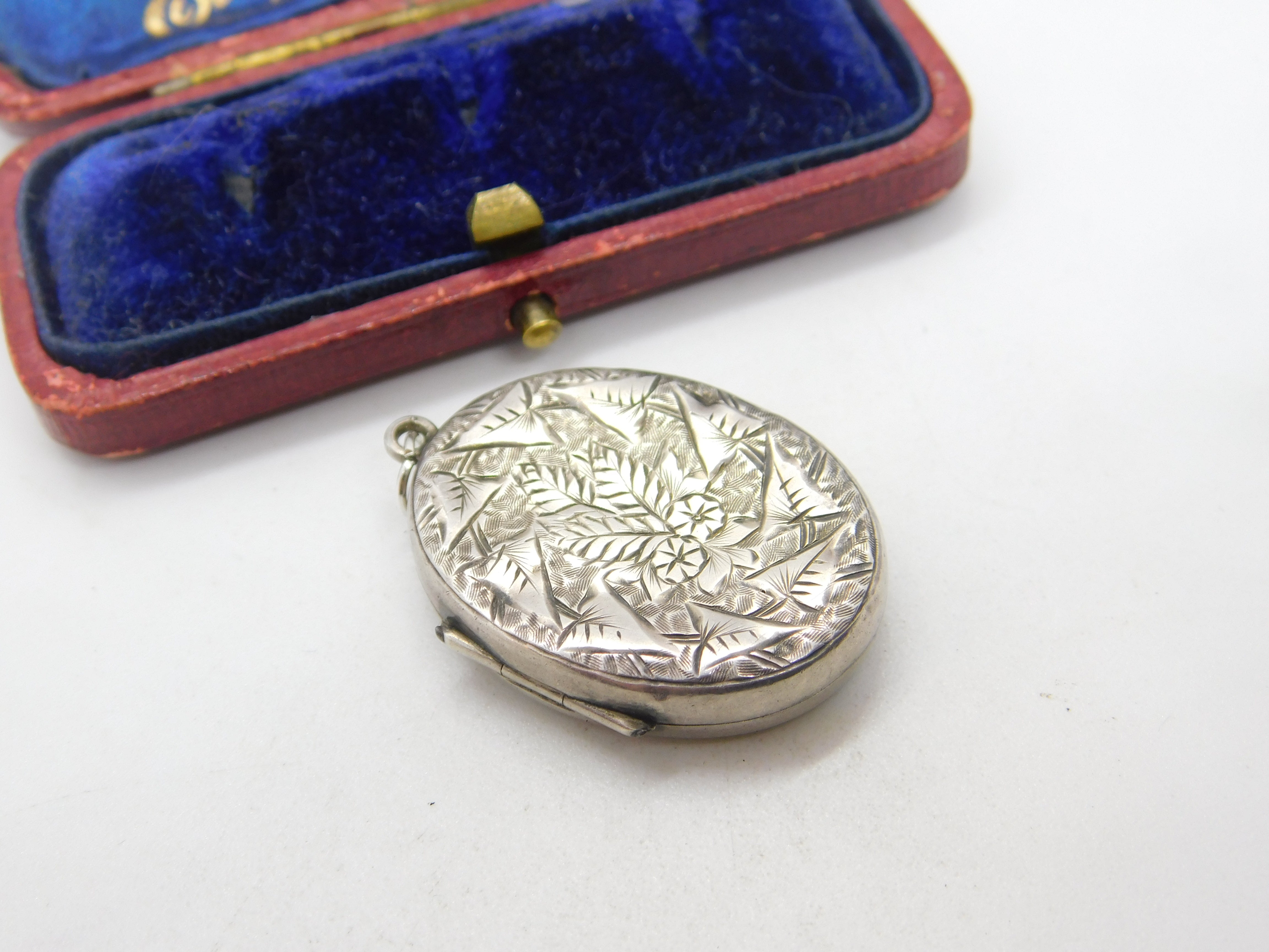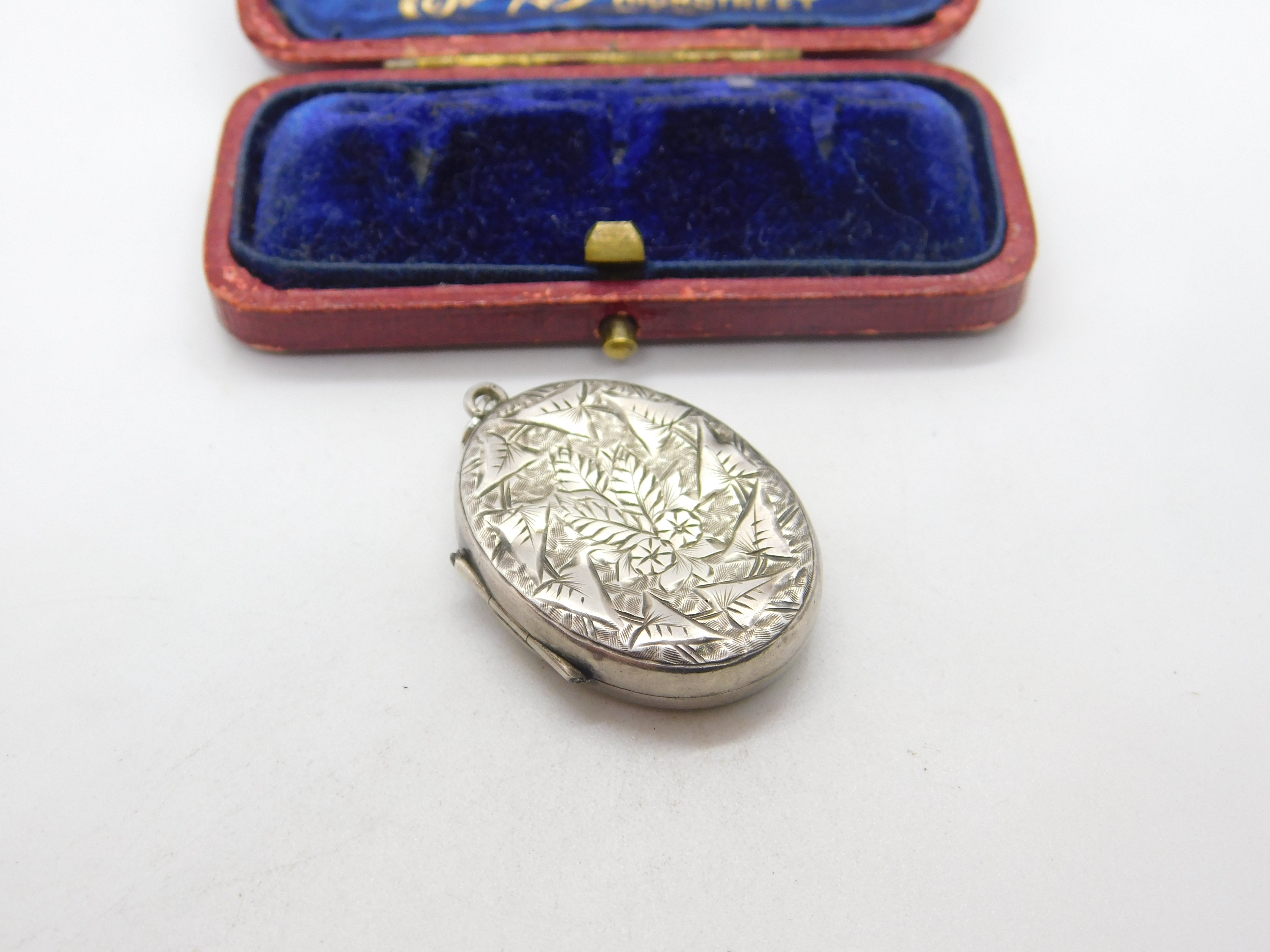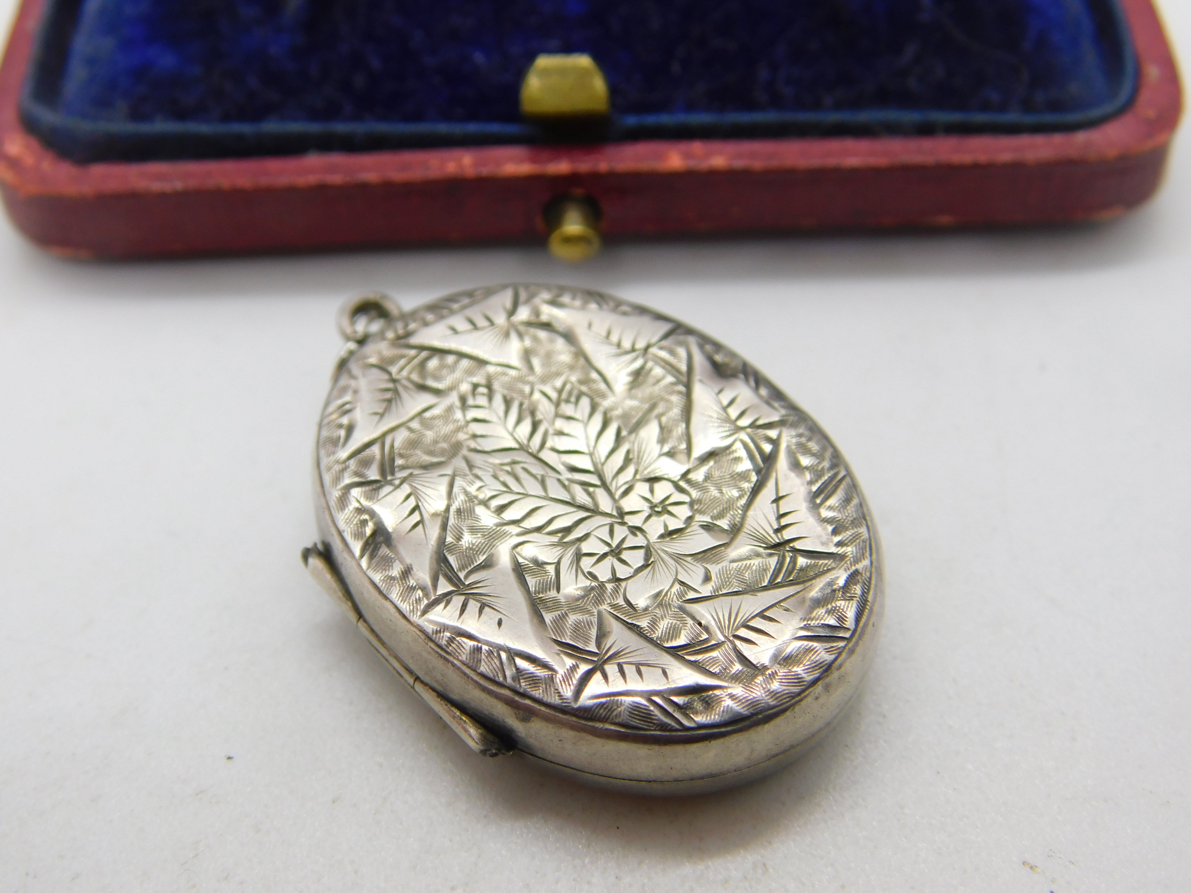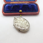 Victorian Sterling Silver Floral Fern Leaf Locket Pendant 1882 Birmingham