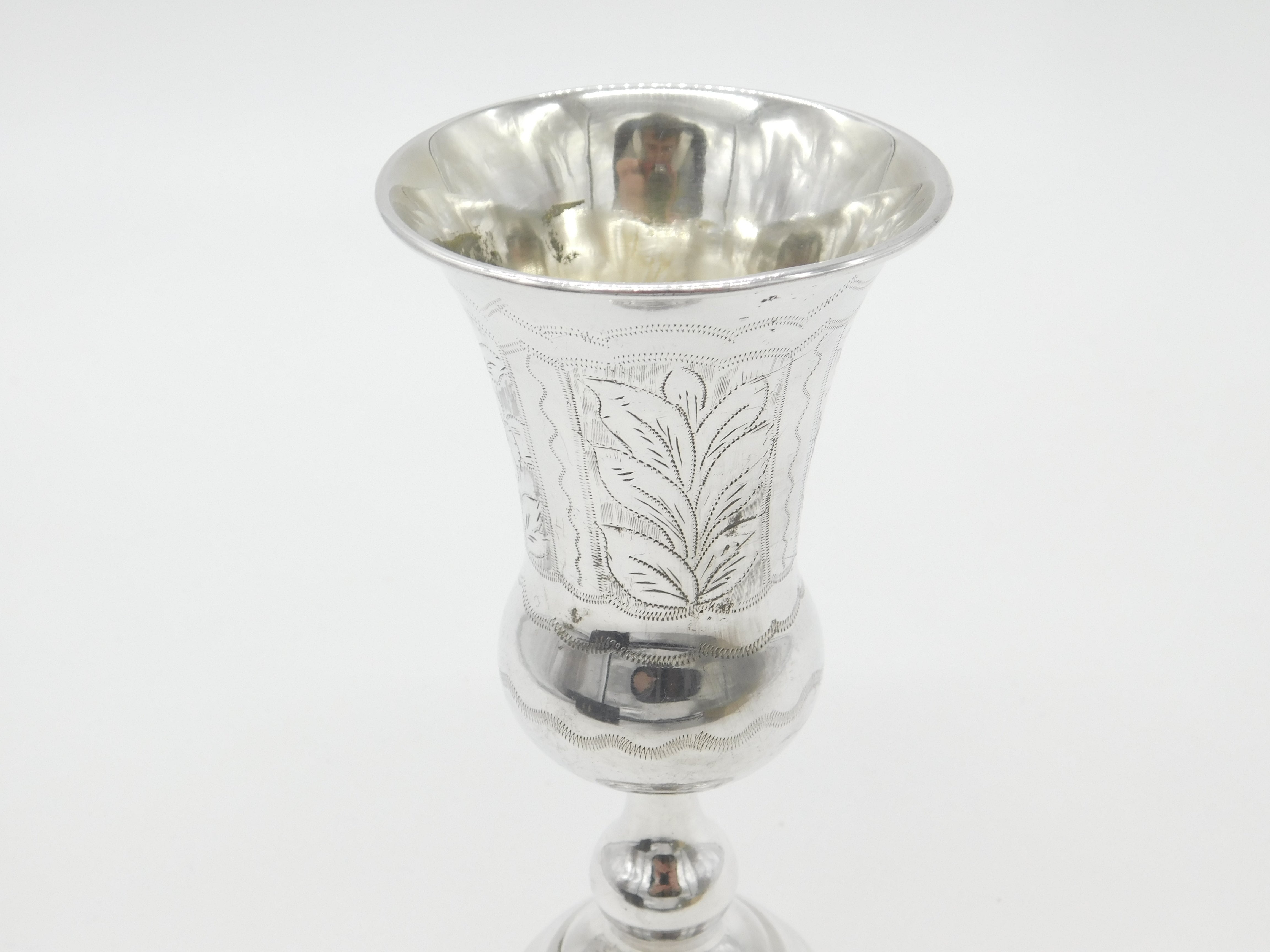 Details: A fantastic and wonderfully designed antique Victorian sterling silver chalice wine goblet or Kiddush cup with lovely floral motifs hallmarked London 1901 by Moses Salkind. This is a wonderful item that would make a perfect gift or addition to any collection. The BOX pictured is for PRESENTATION ONLY and is NOT included in the listings but used to frame the pictures unless specifically stated otherwise.
