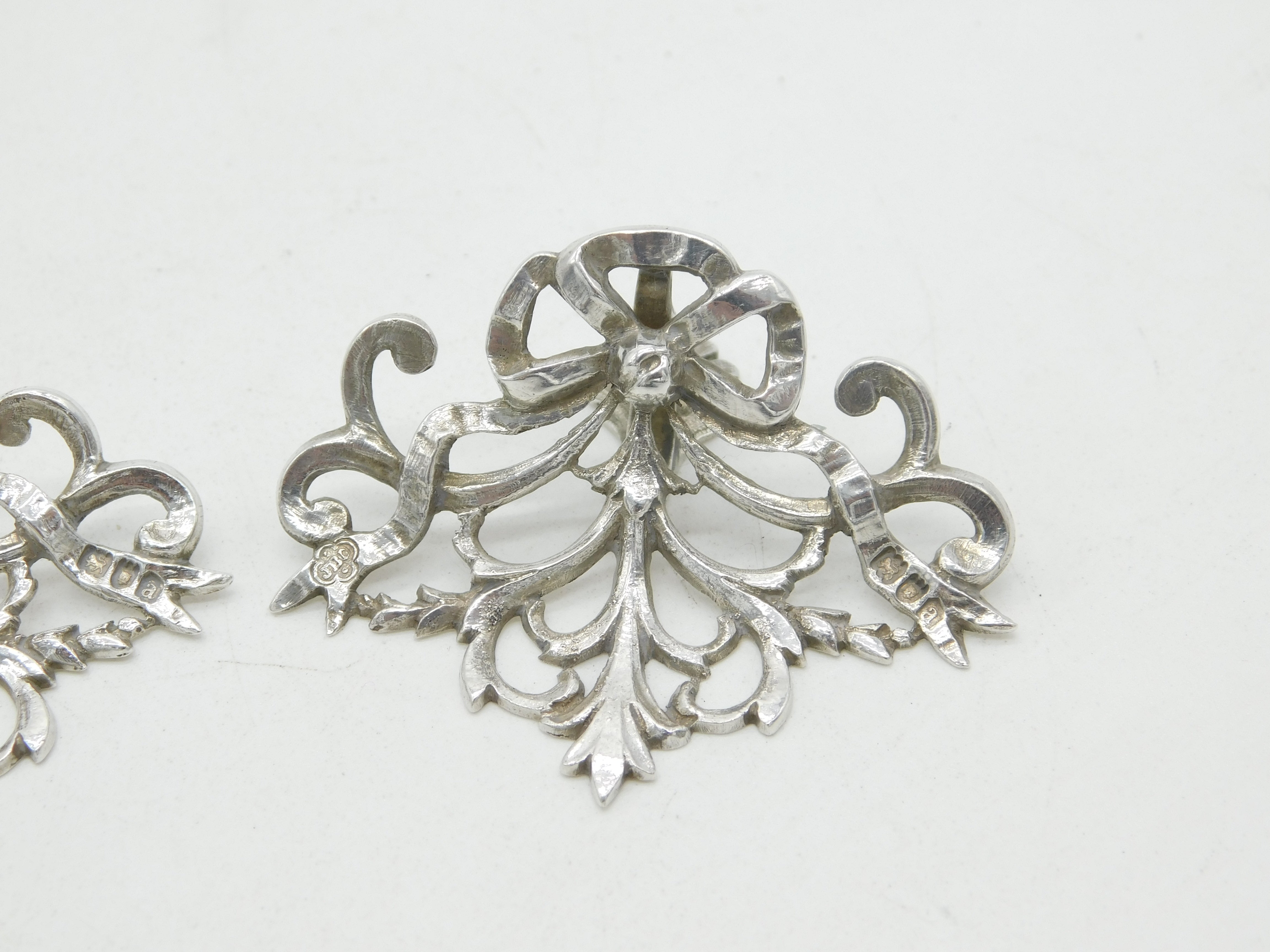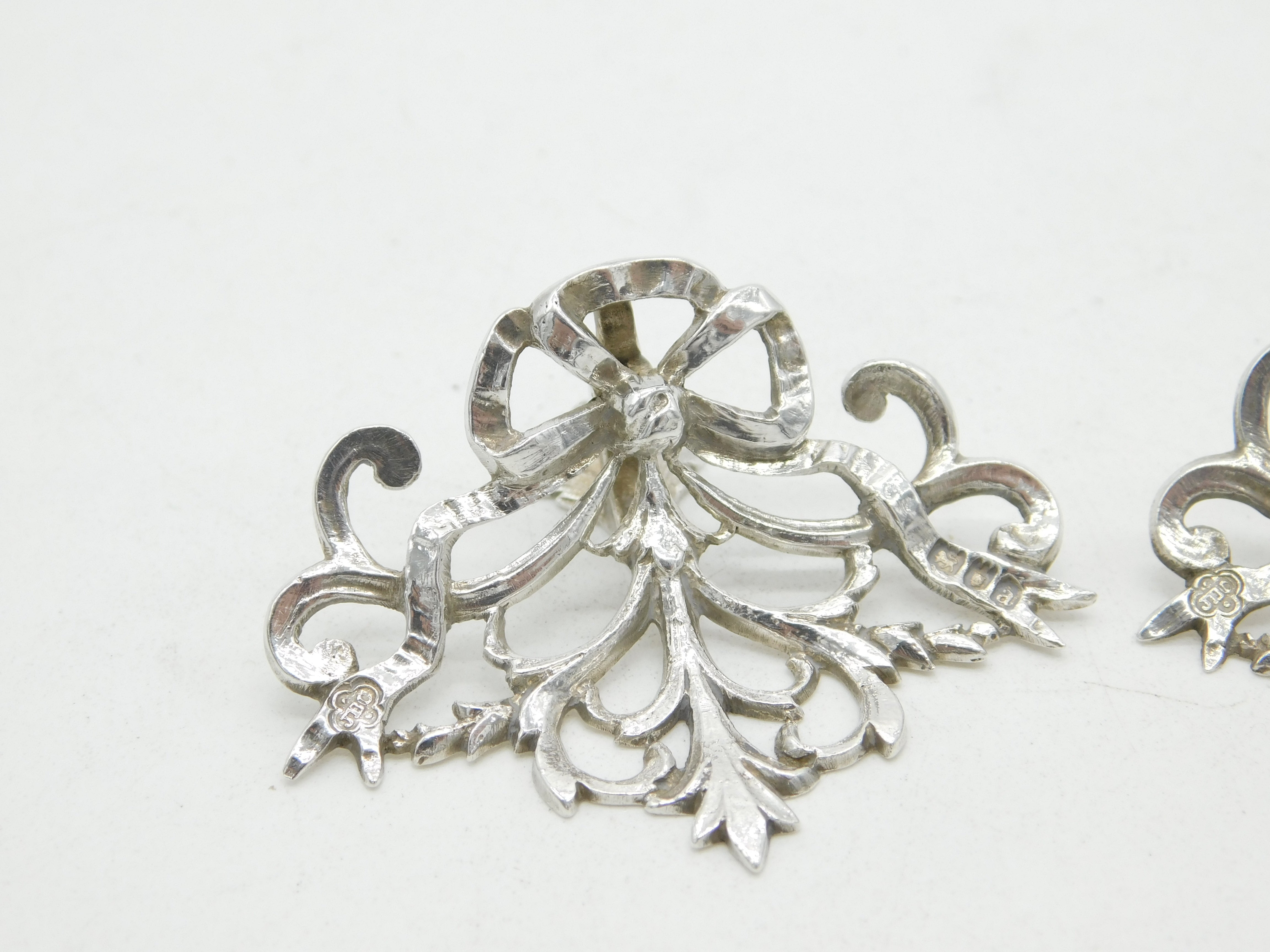 Details: A fantastic and wonderfully designed antique Victorian pair of sterling silver art nouveau floral & ribbon pattern menu holders or place settings hallmarked London 1896 by Carrington & Co. This is a wonderful item that would make a perfect gift or addition to any collection. The BOX pictured is for PRESENTATION ONLY and is NOT included in the listings but used to frame the pictures unless specifically stated otherwise.