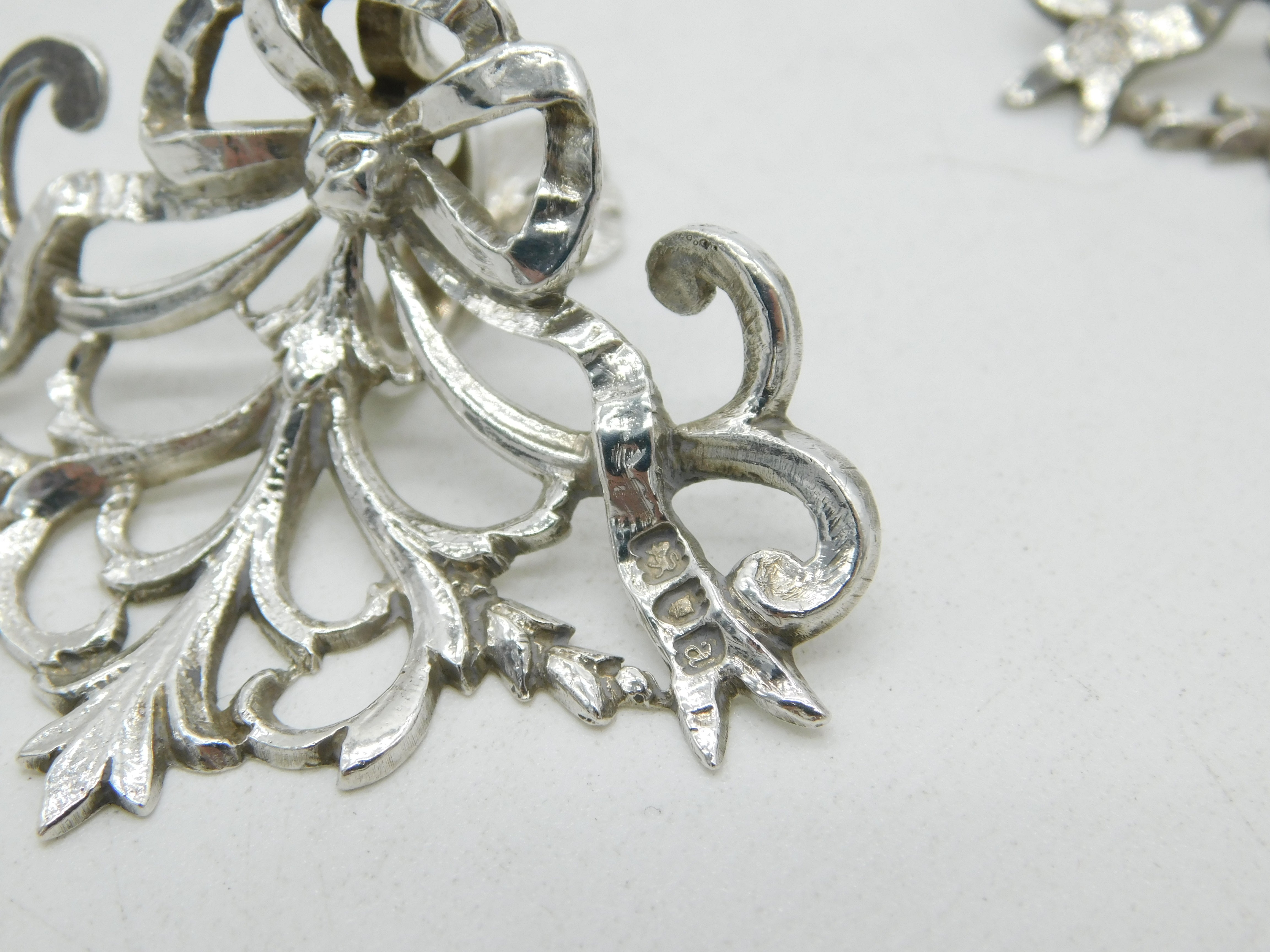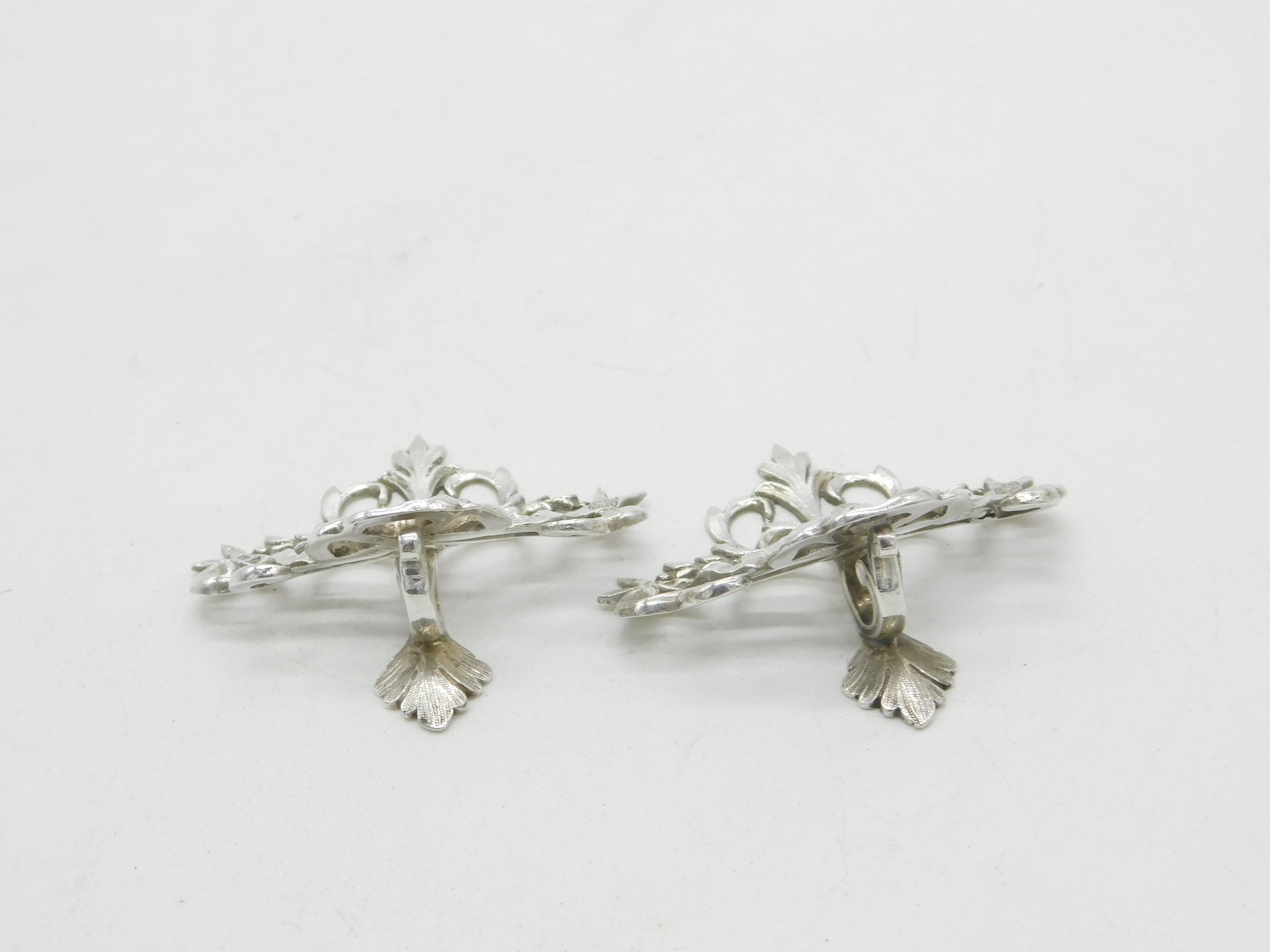 Victorian Sterling Silver Floral Nouveau Menu Holders Pair Antique 1896 London