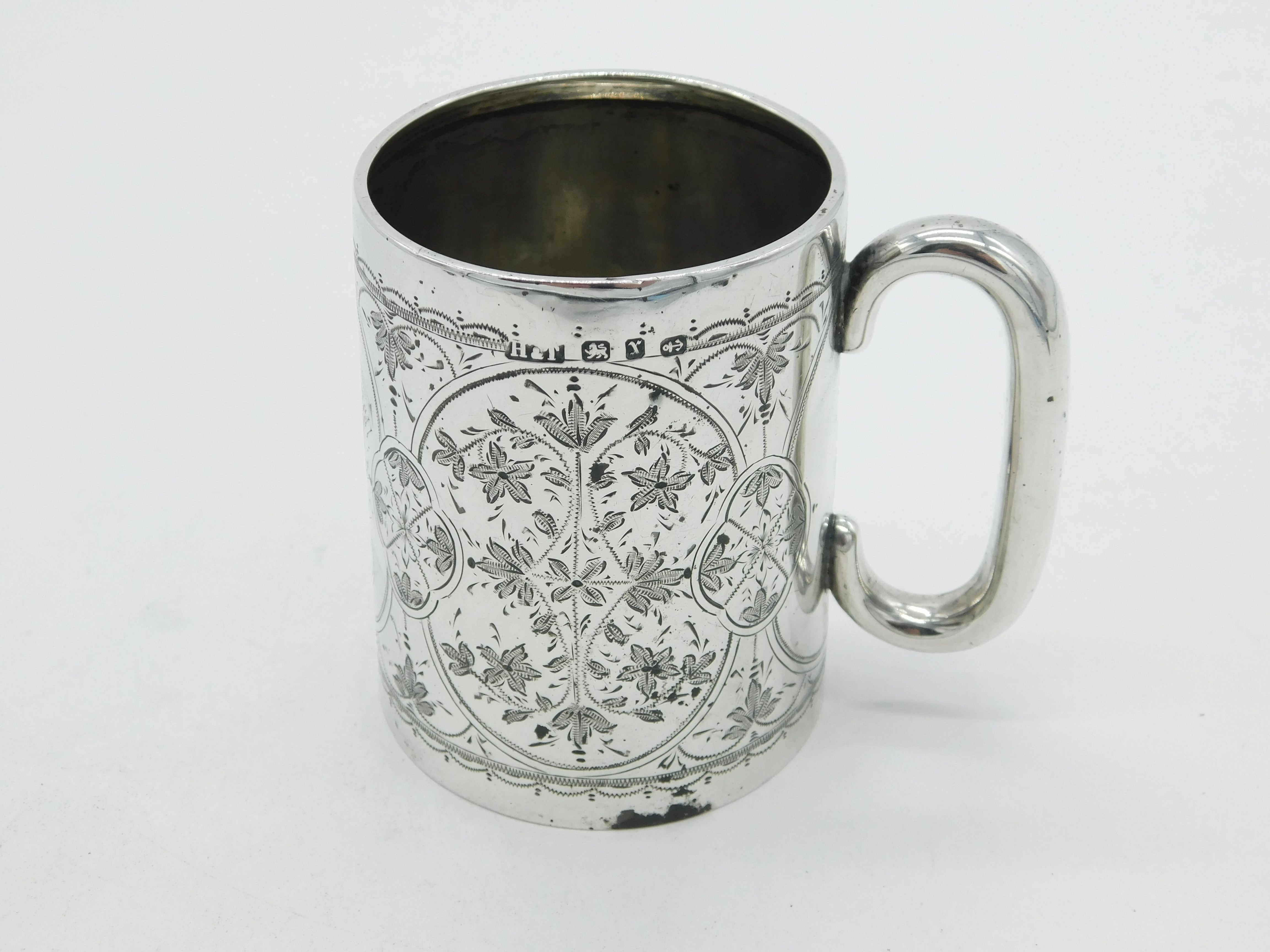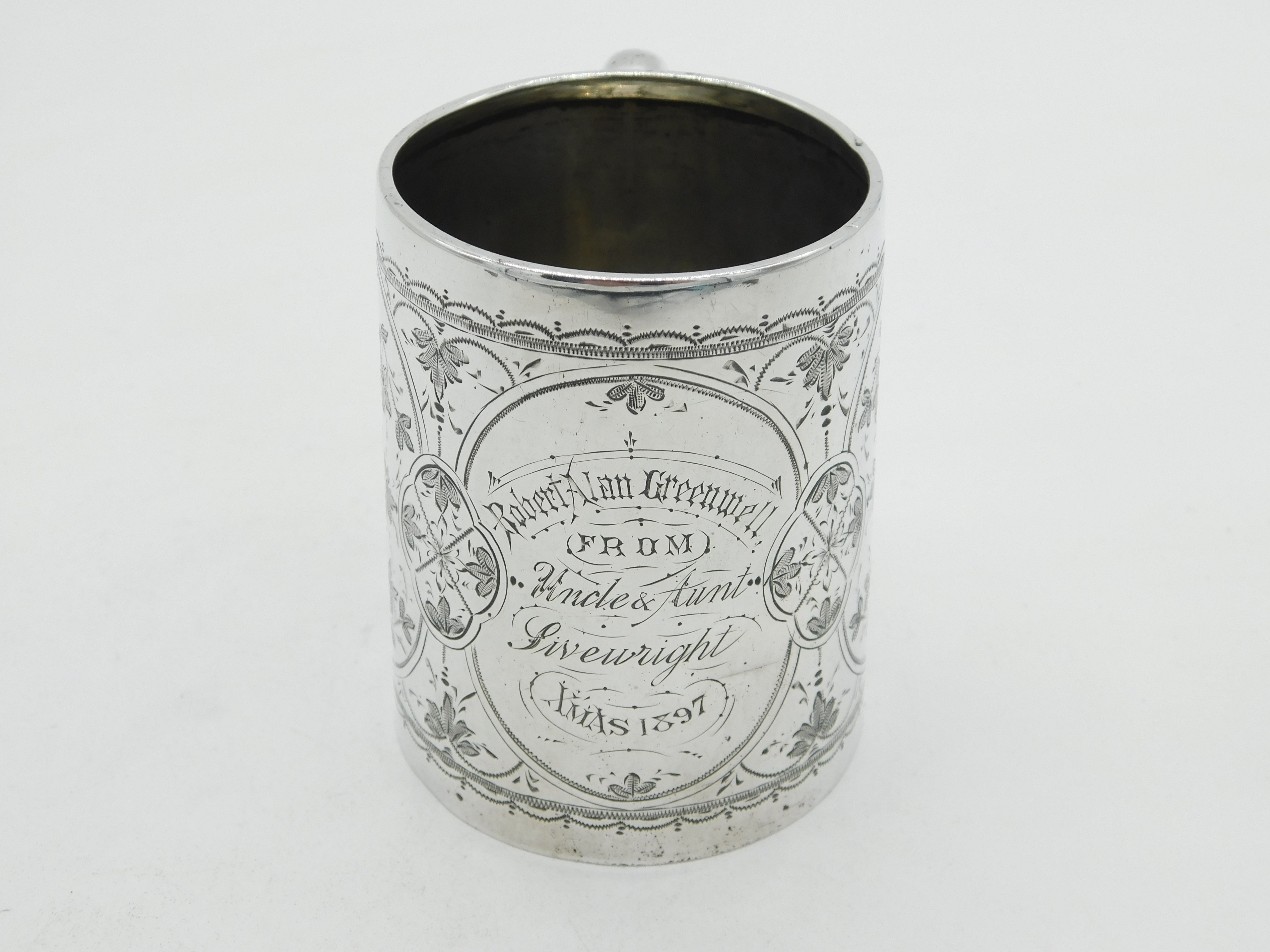 Victorian Sterling Silver Floral Pattern Christening Mug 1897 Birmingham Antique