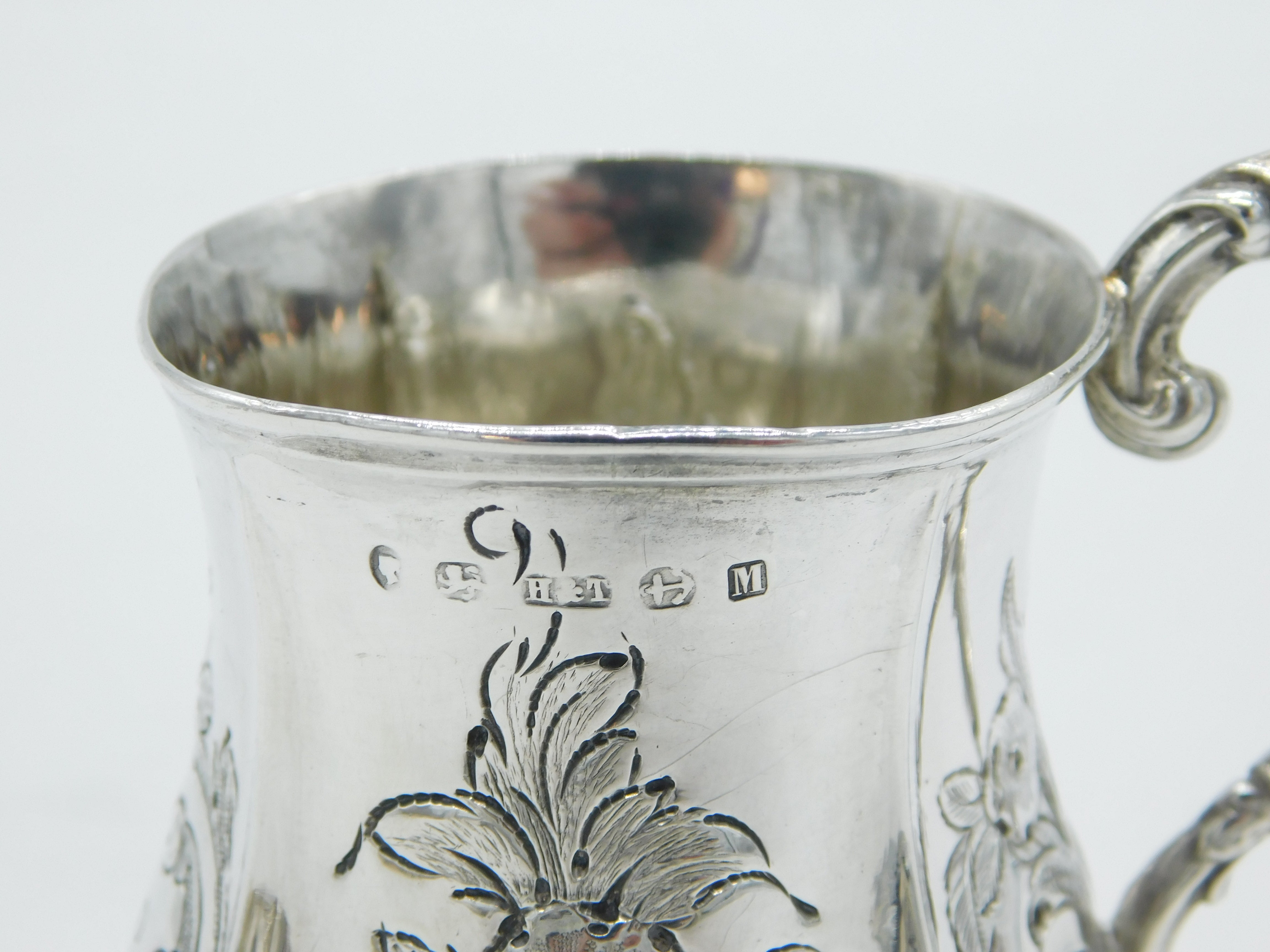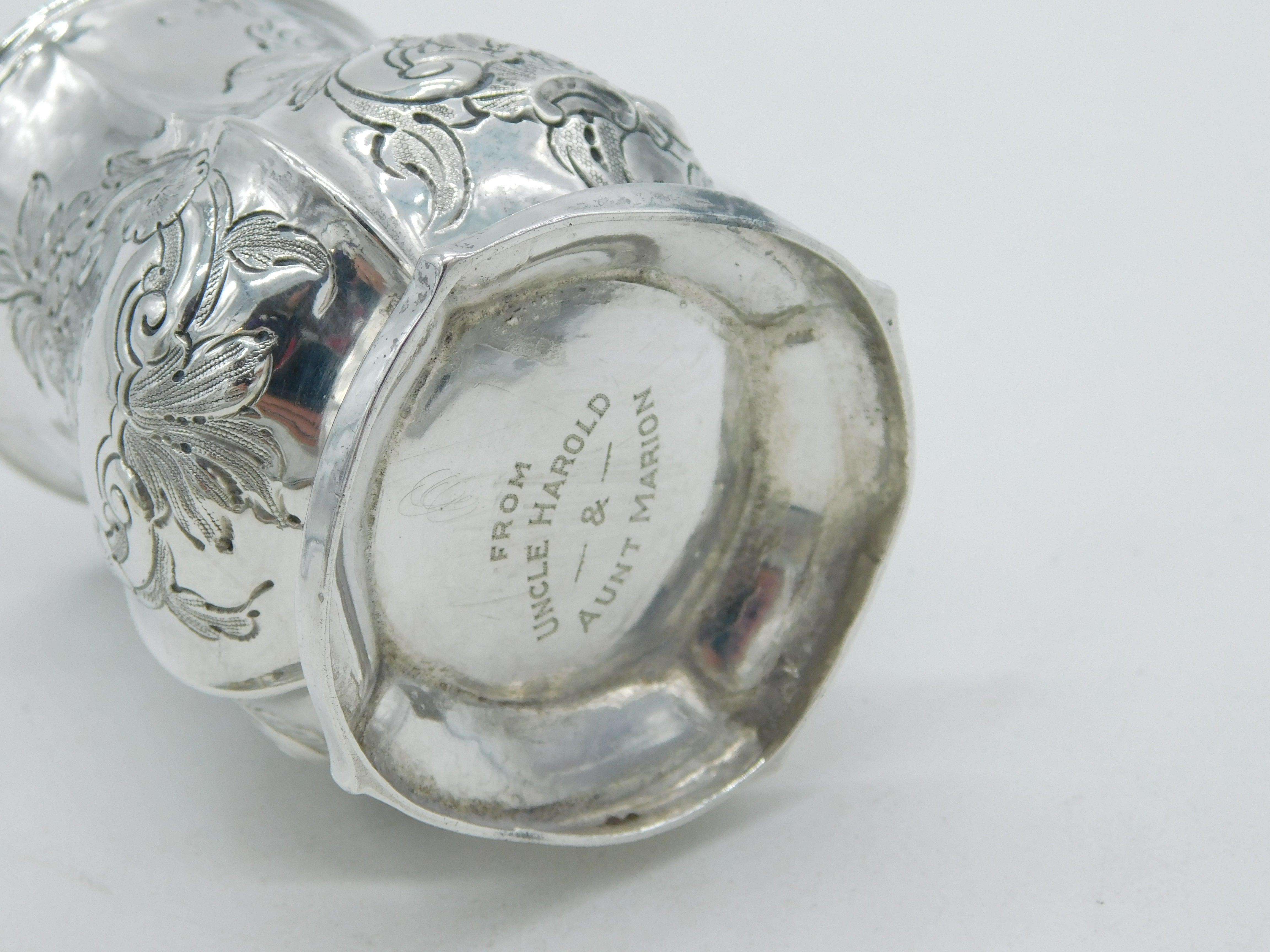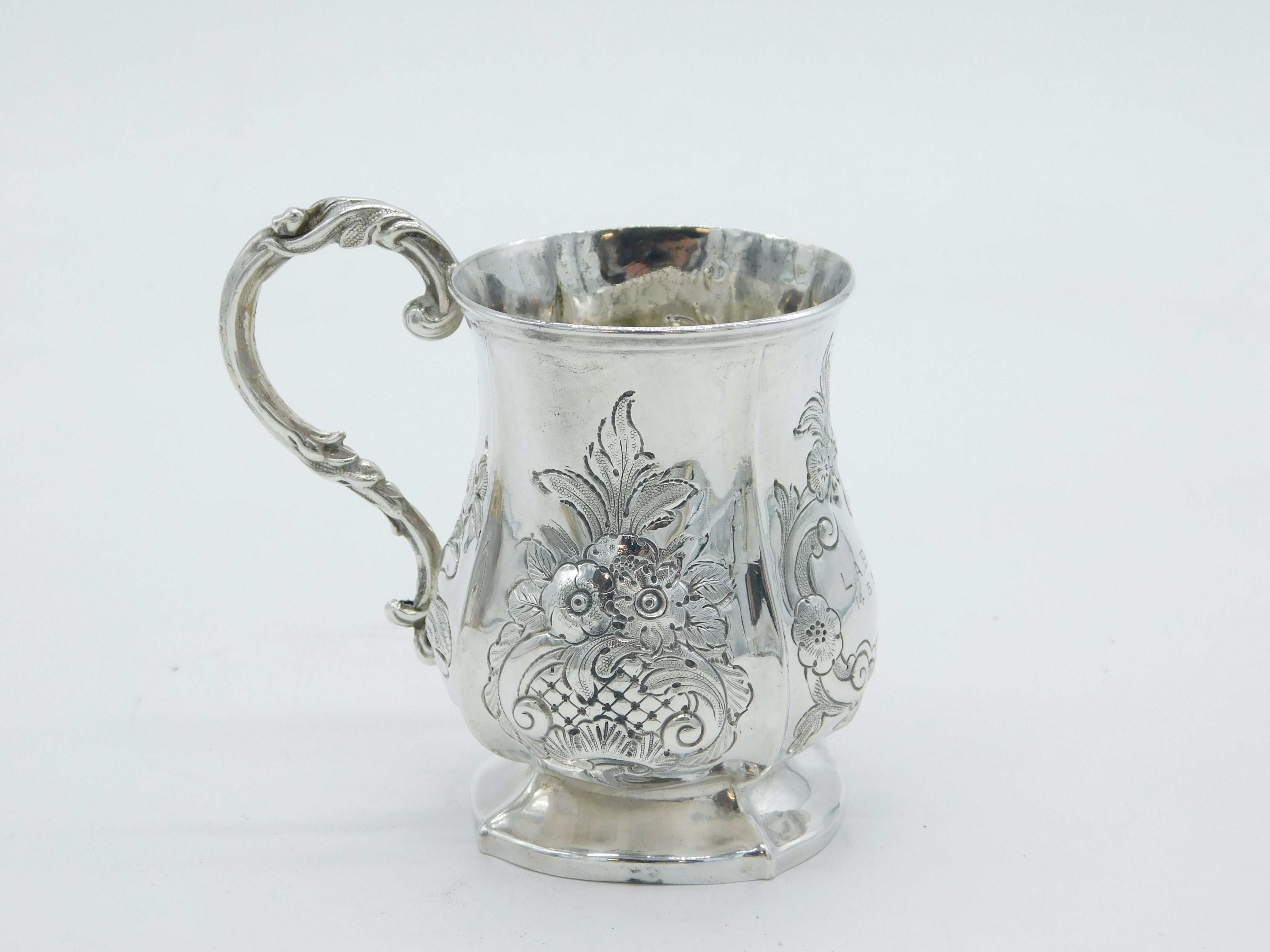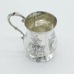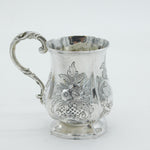 Victorian Sterling Silver Floral Pattern Christening Mug Antique 1861 Birmingham